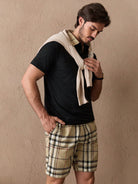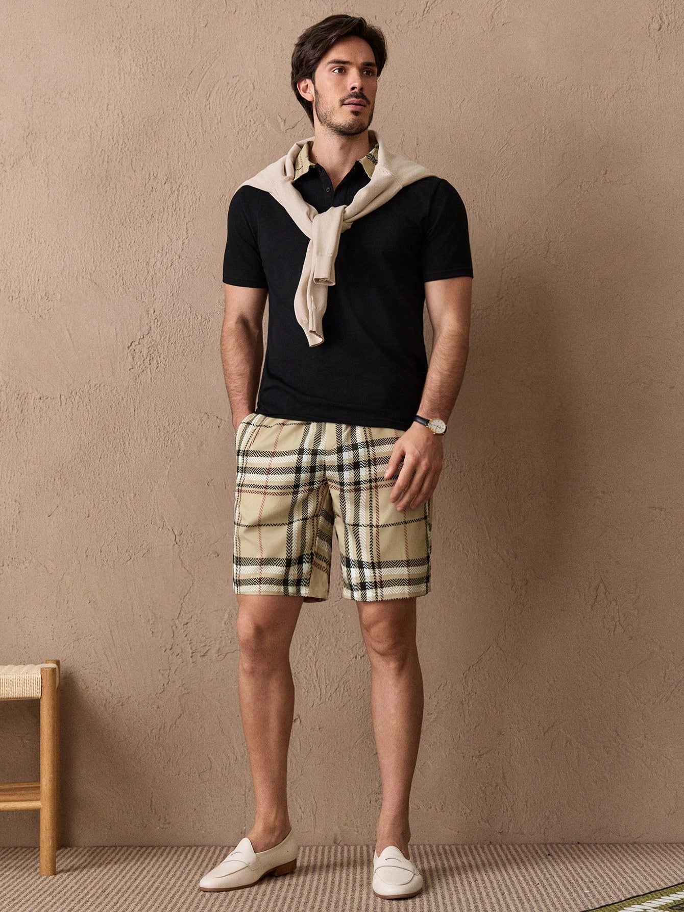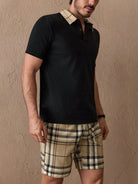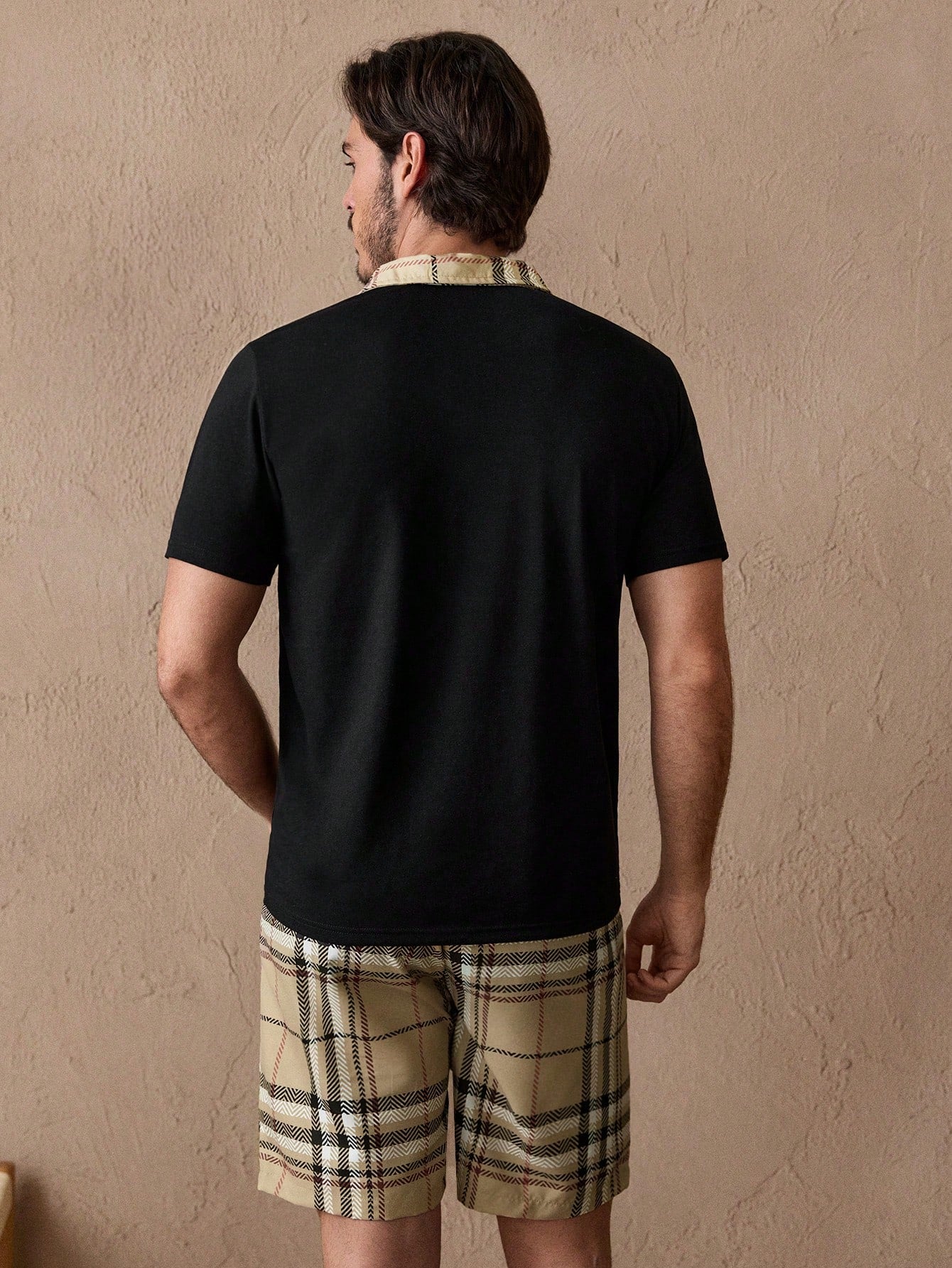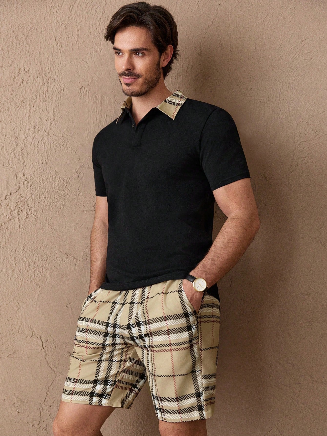 طقم قميص بولو رجالي من هيملاند بنقشة مربعات مرقعة وشورت منسوج