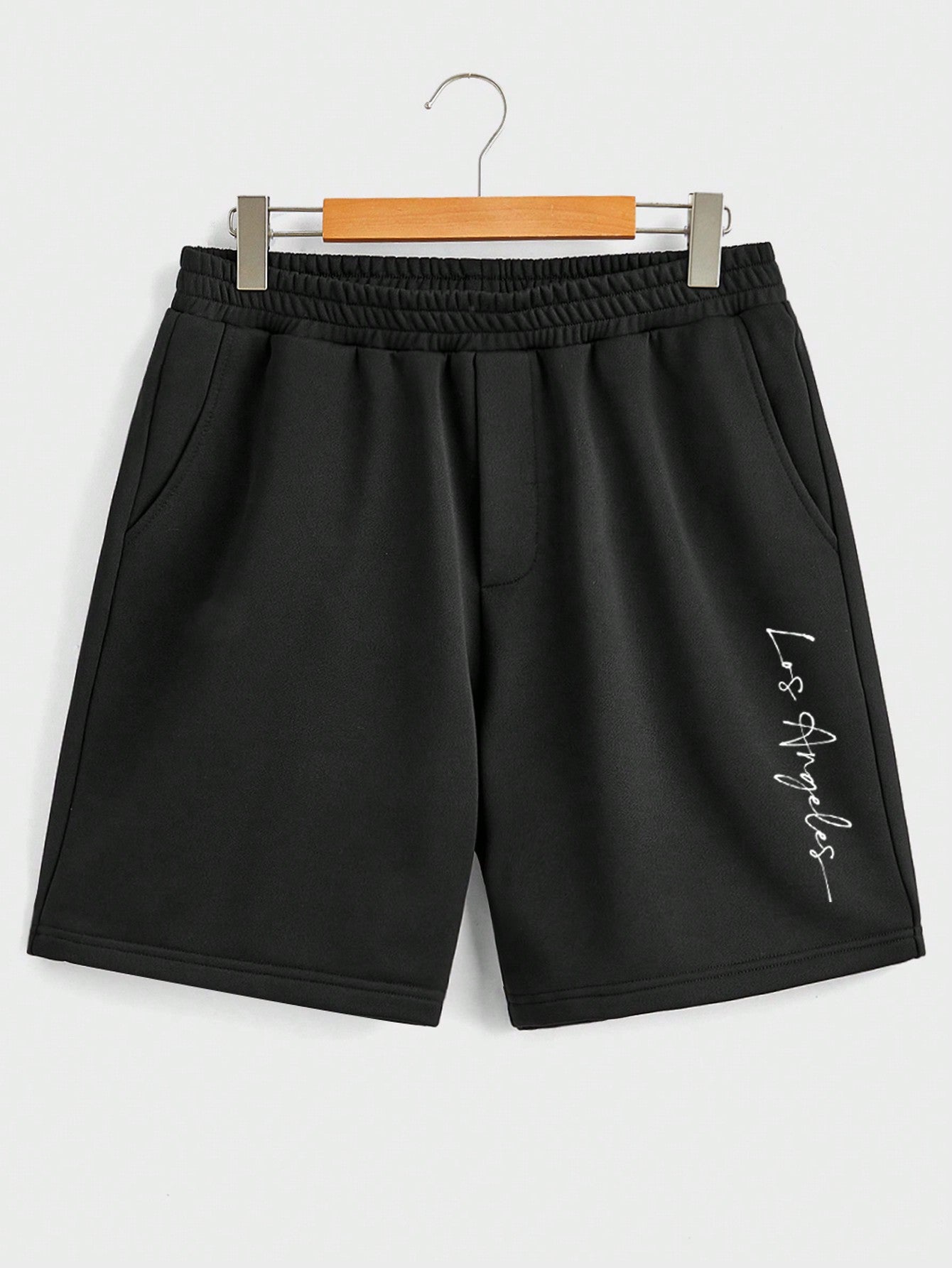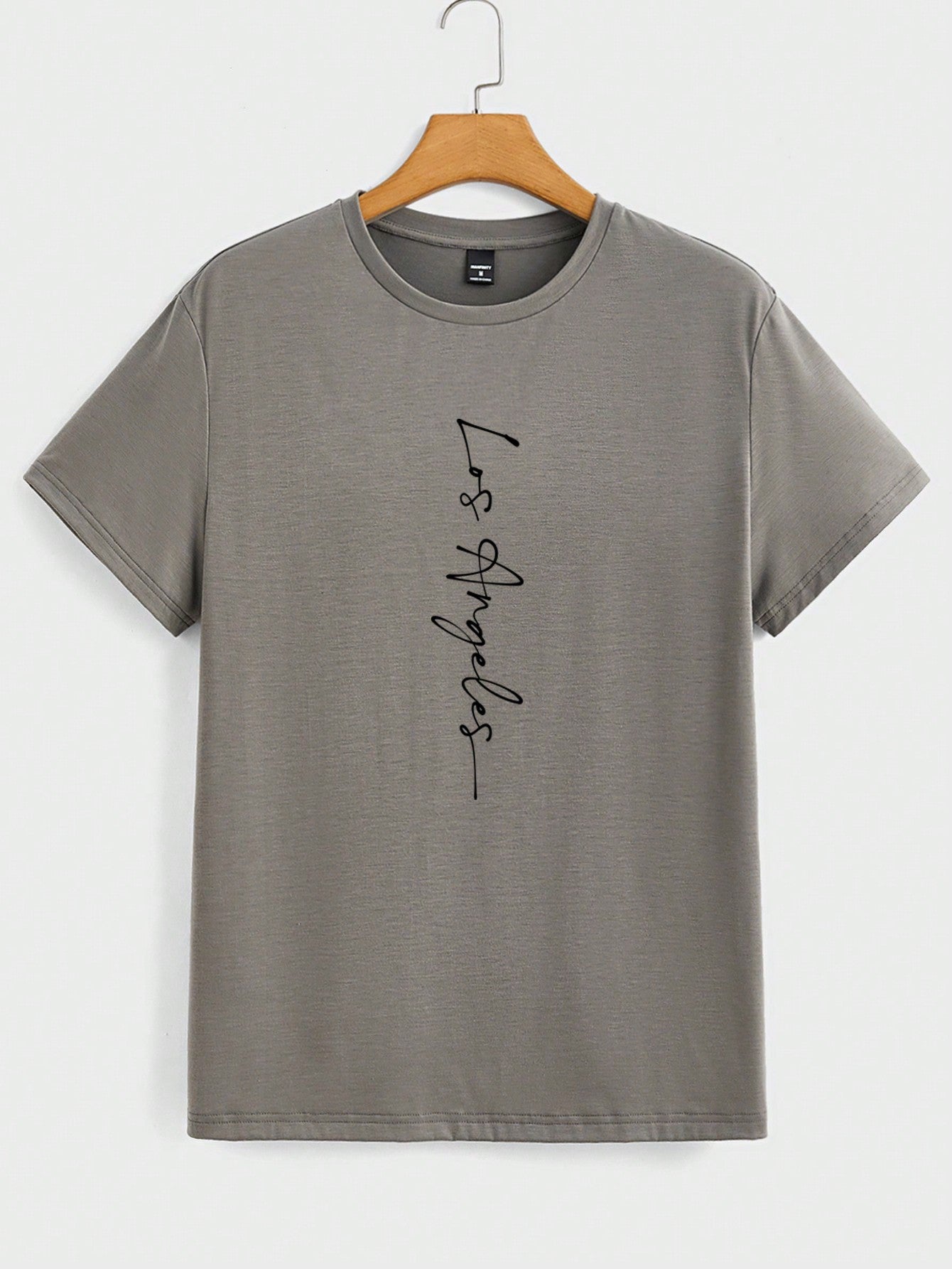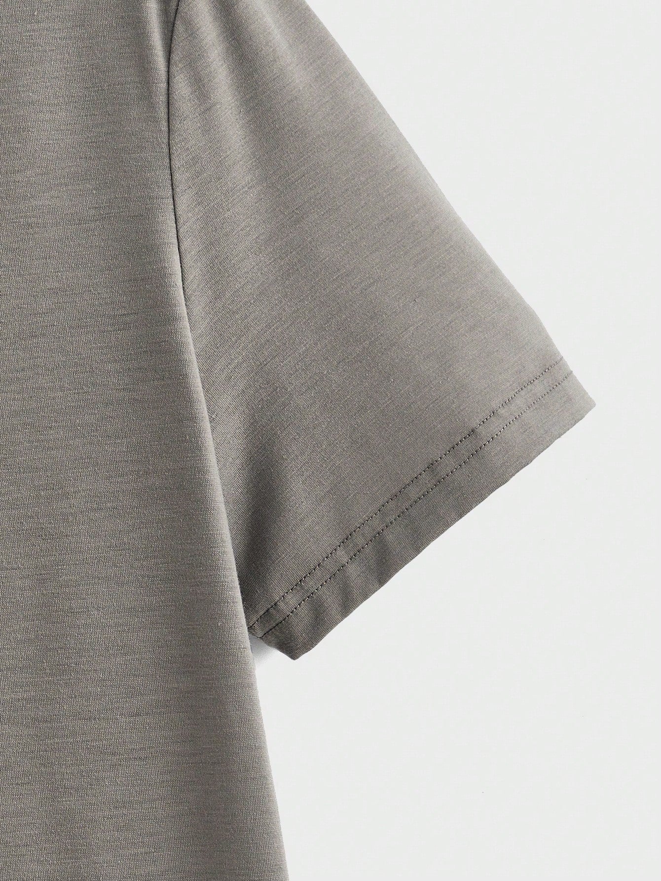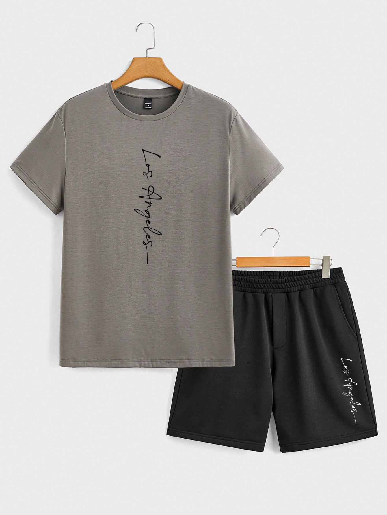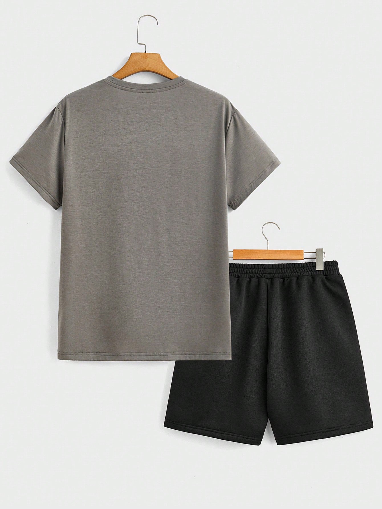 Manfinity Homme 2pcs Men's Grey Top Black Bottom Short Sleeve Shorts Outfit Set