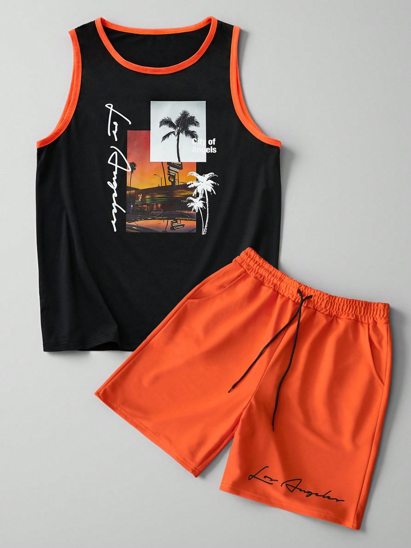 طقم رجالي من قطعتين من مانفينيتي آر إس آر تي، بتصميم كاجوال بنقشة مناظر طبيعية، لون برتقالي.