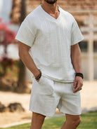 men Manfinity RSRT Men's Solid V-Neck Short Sleeve Casual T-Shirt And Shorts Set