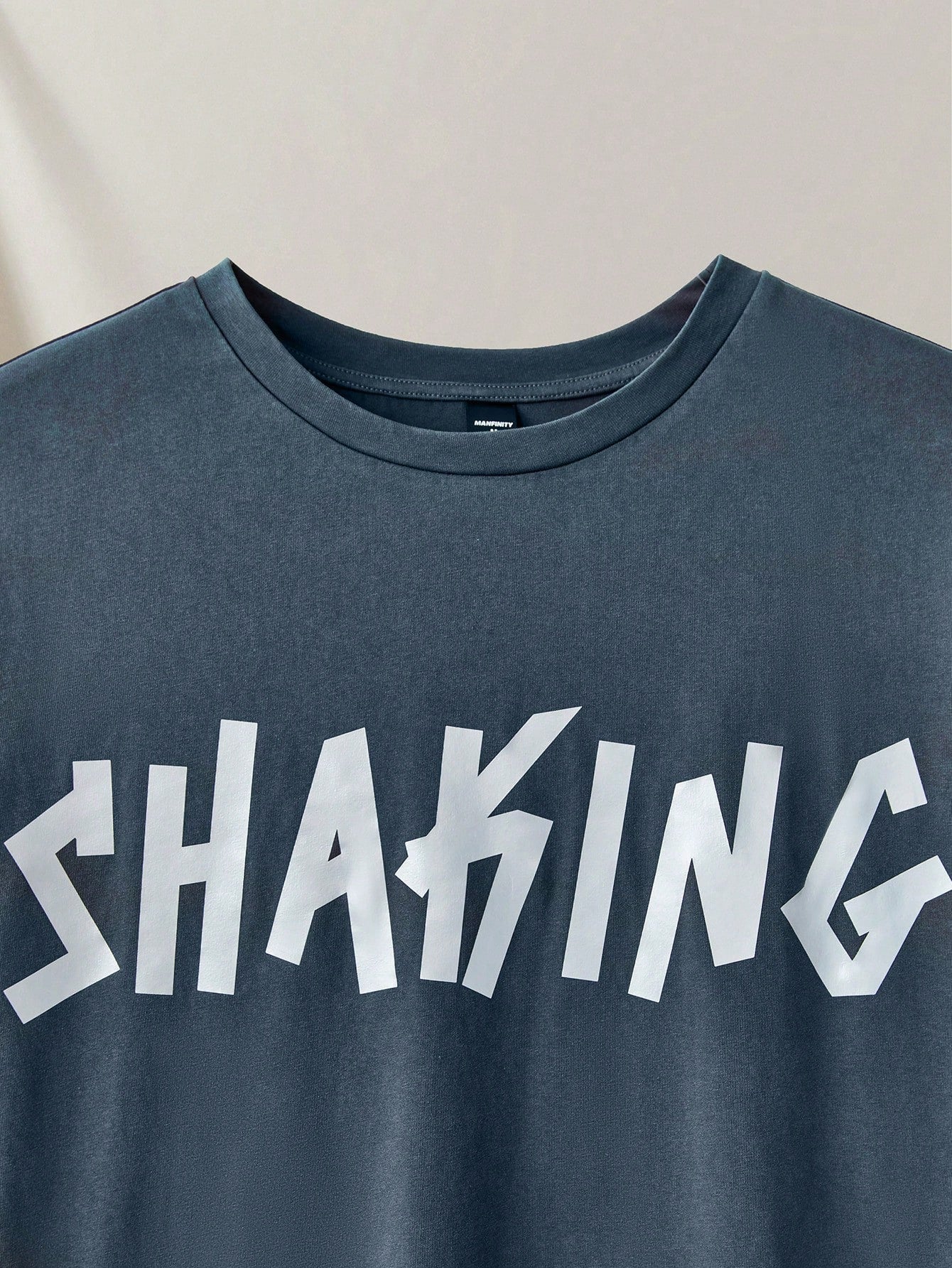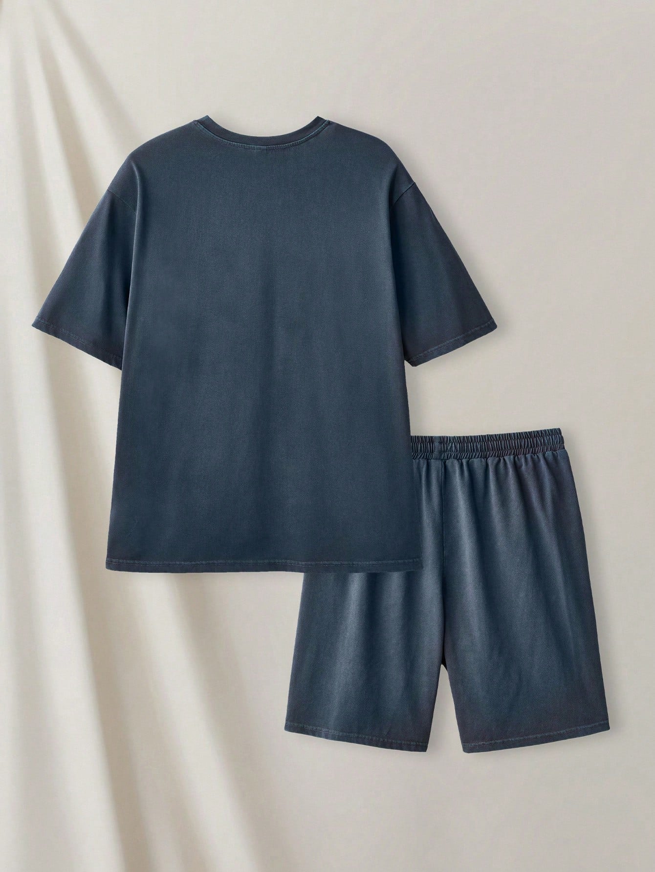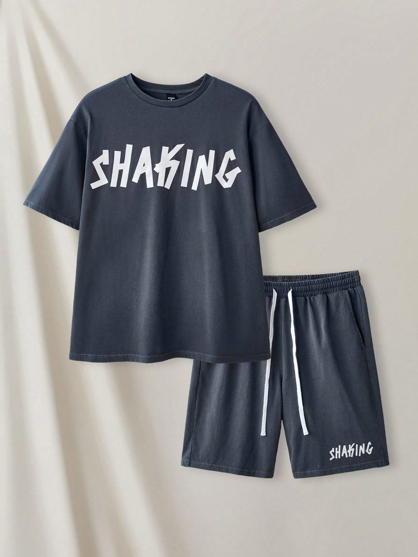 Manfinity VCAY Men's Casual Letter Printed Short Sleeve T-Shirt And Shorts Set
