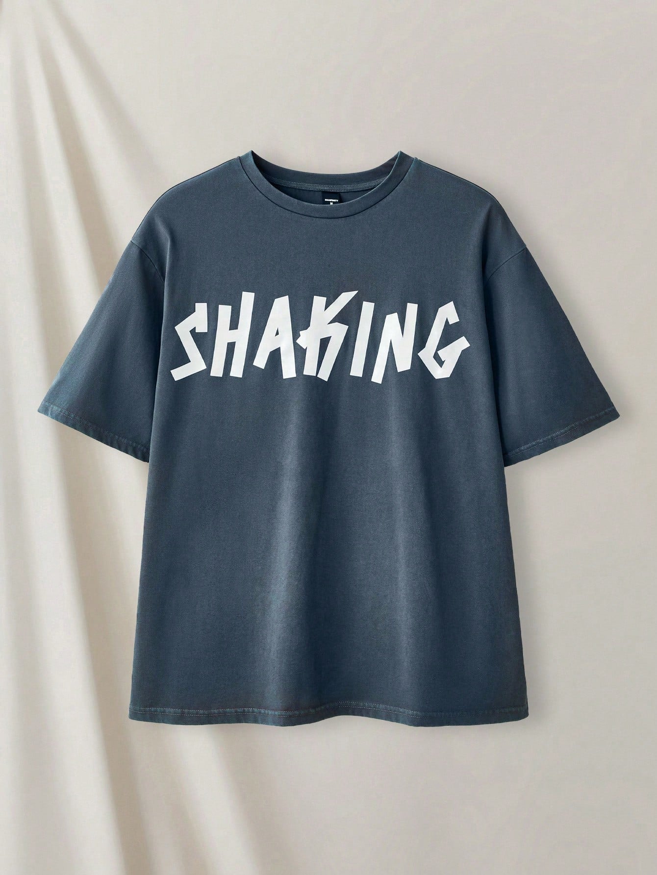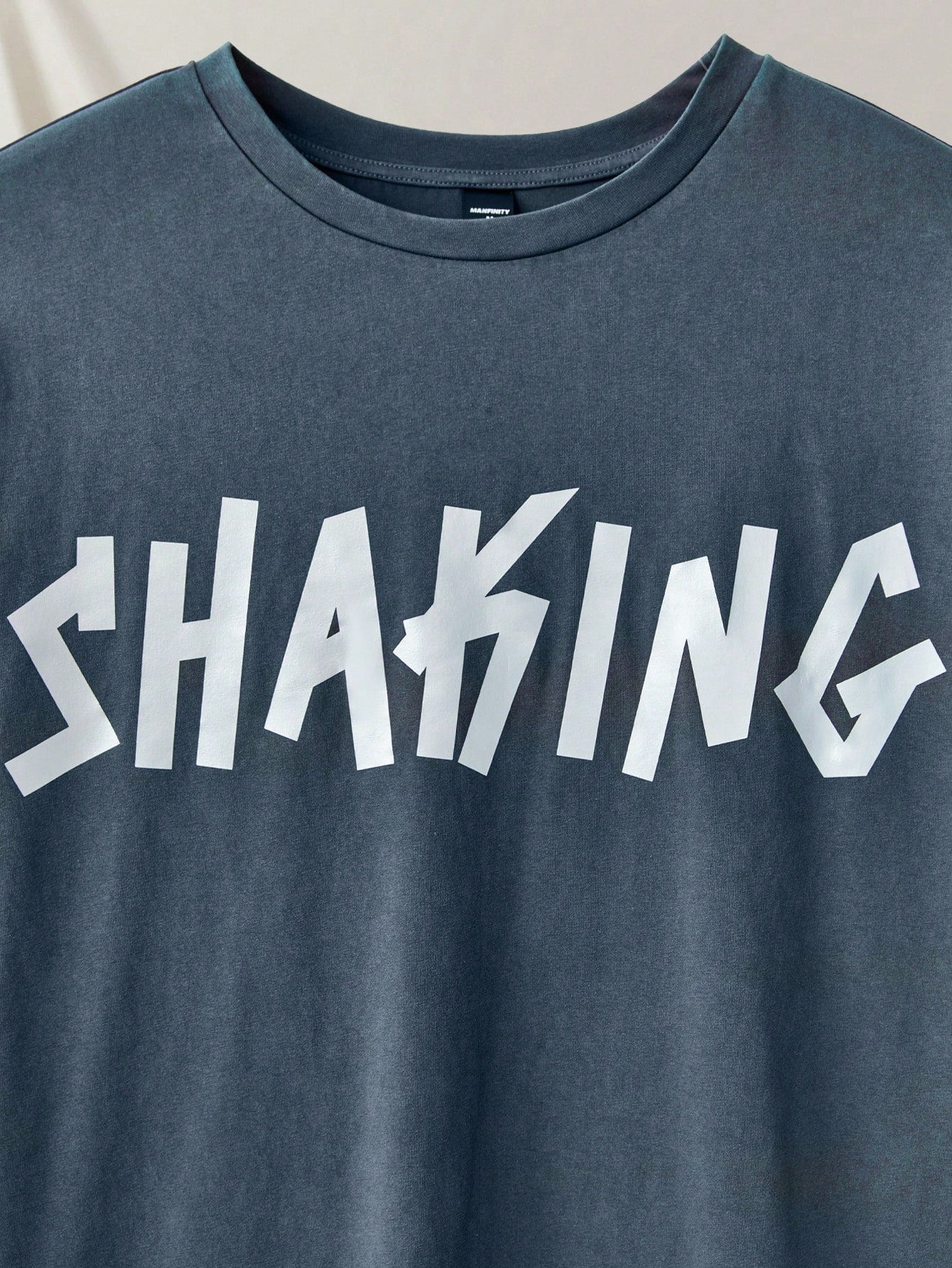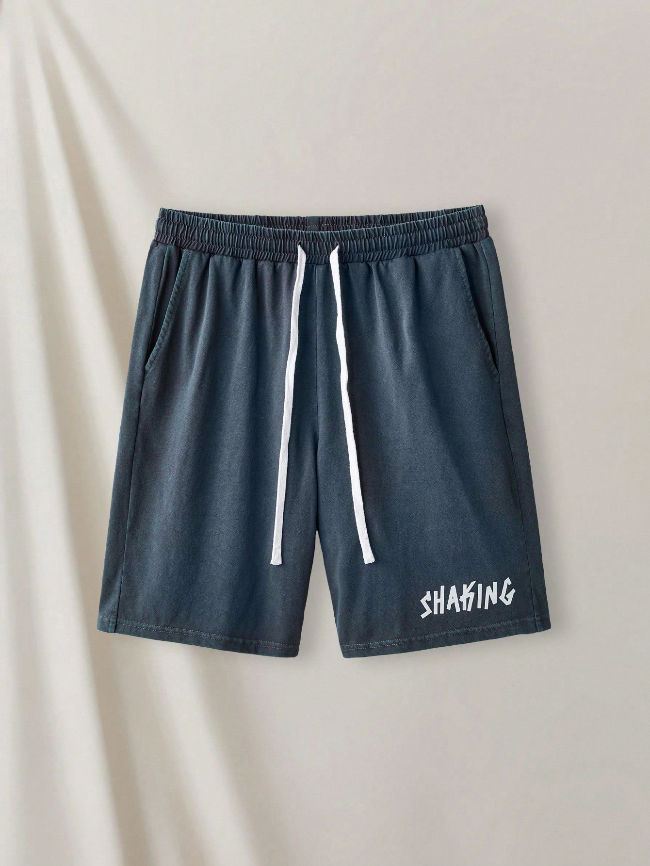 Manfinity VCAY Men's Casual Letter Printed Short Sleeve T-Shirt And Shorts Set