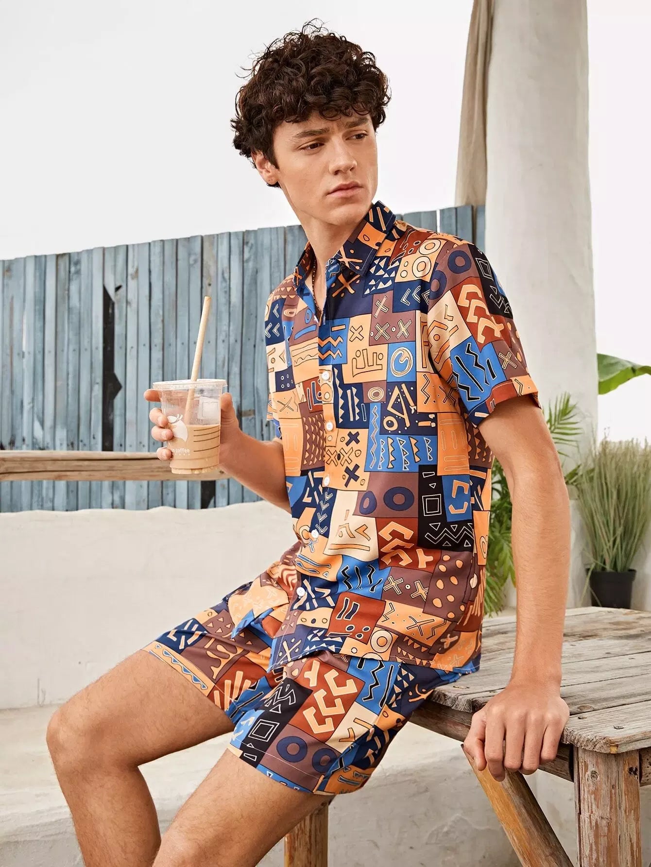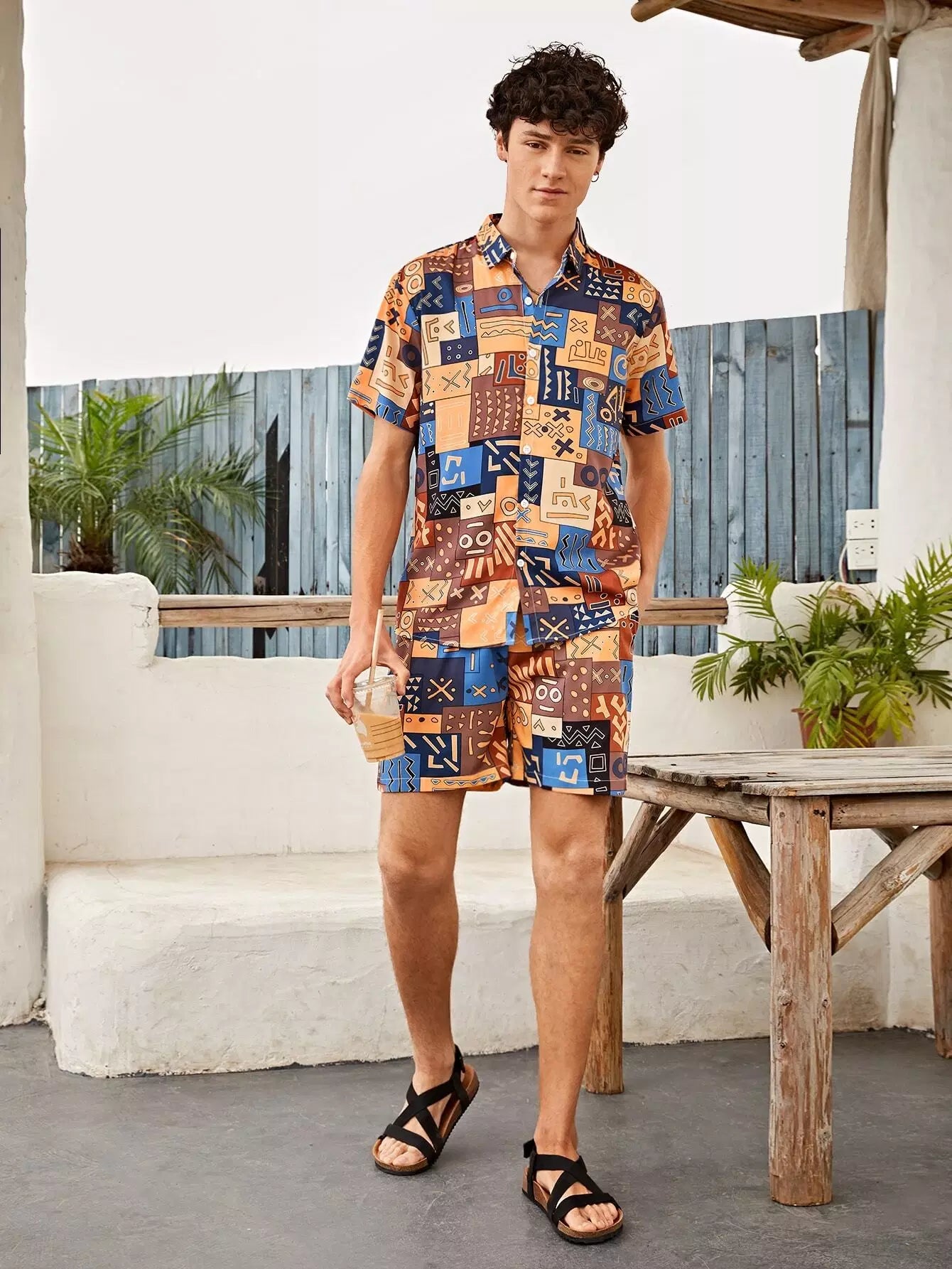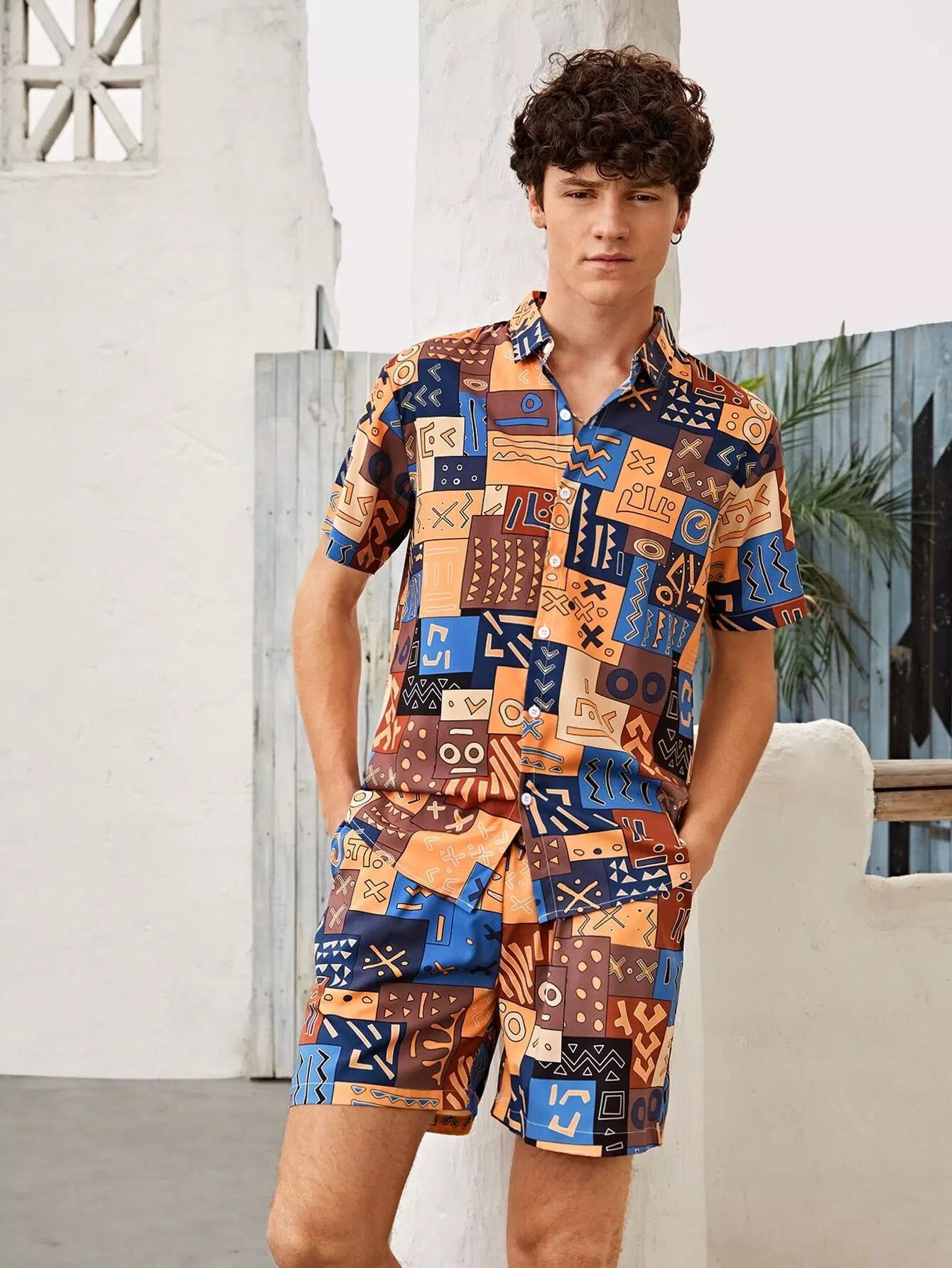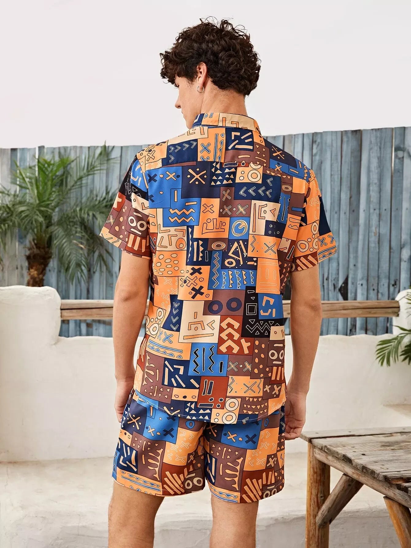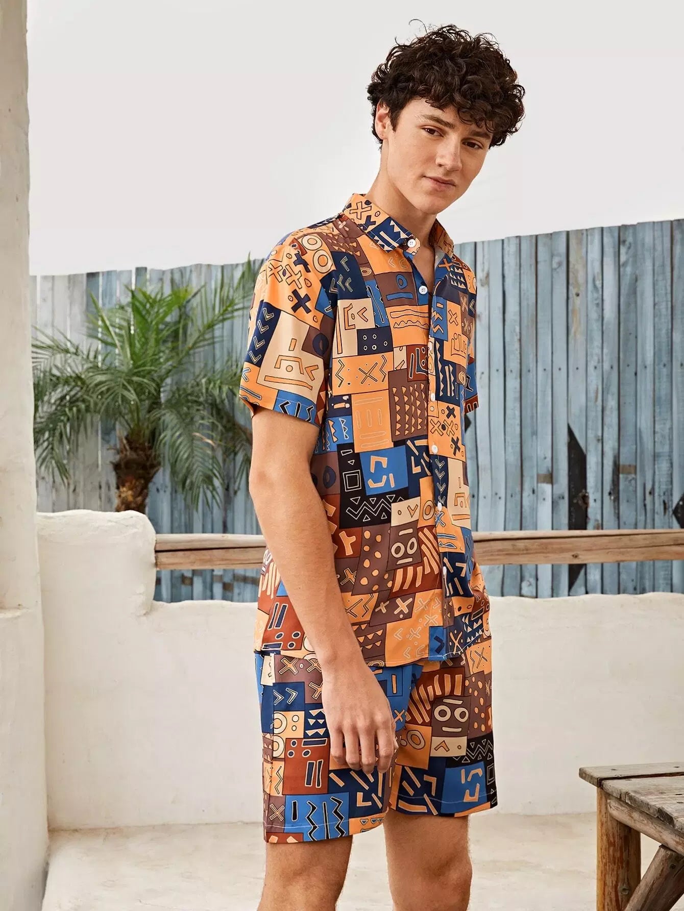 طقم رجالي من القميص والشورت بطبعات كاملة