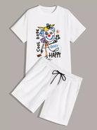 تي شيرت وشورت رجالي برسومات كرتونية وشعارات