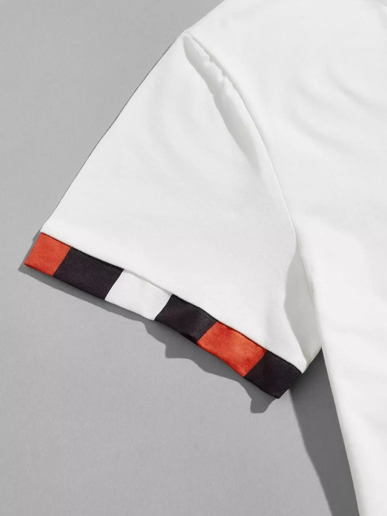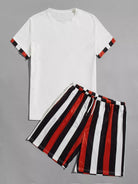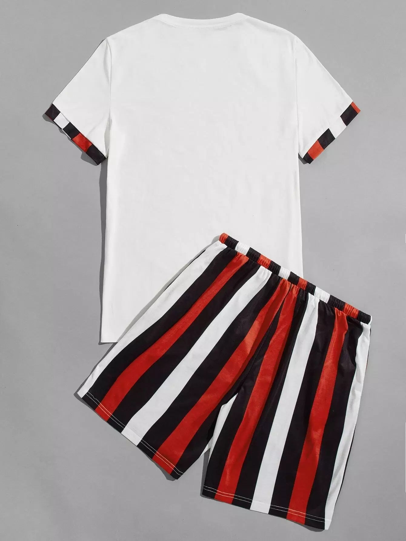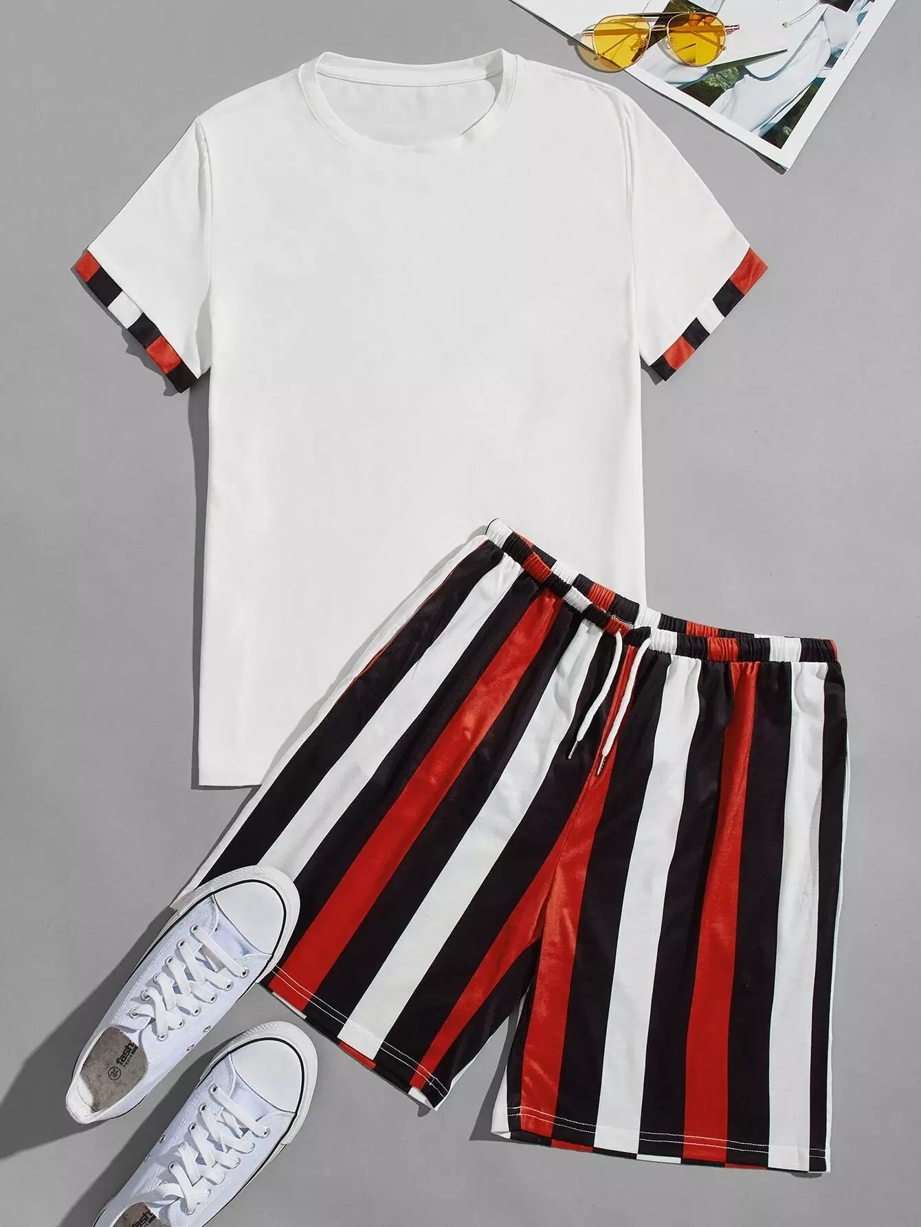 تي شيرت رجالي بقصّة متباينة الألوان مع شورت مخطط
