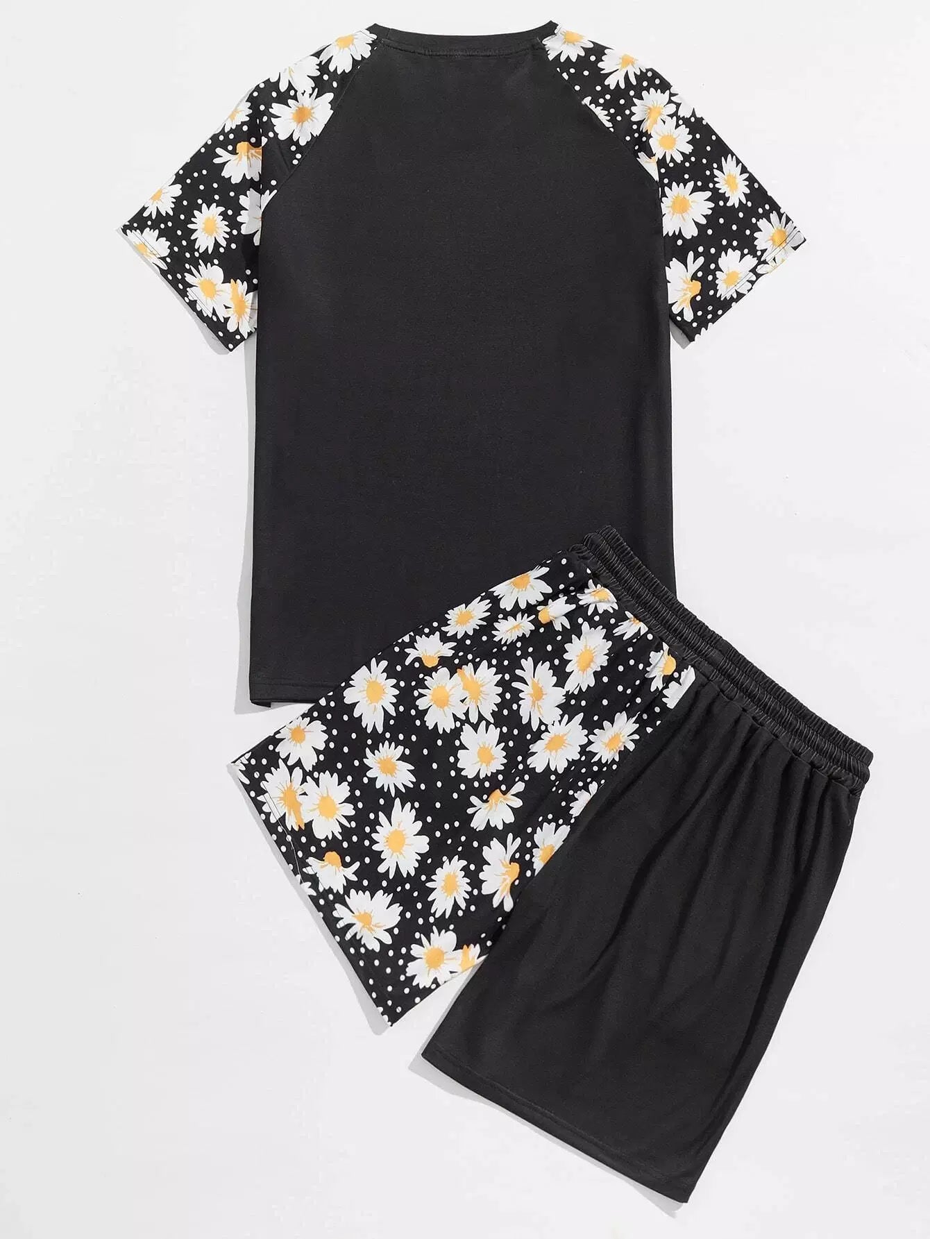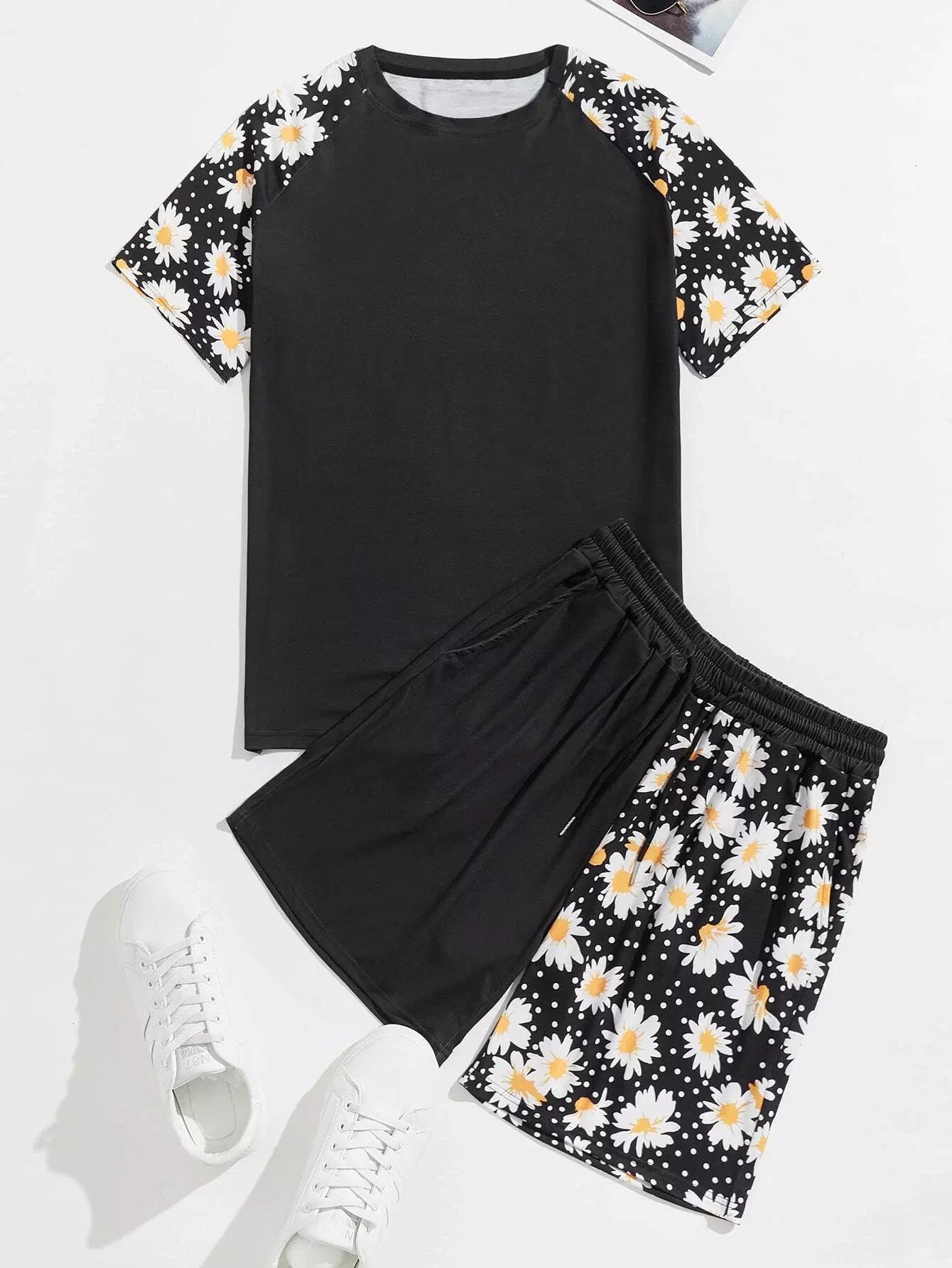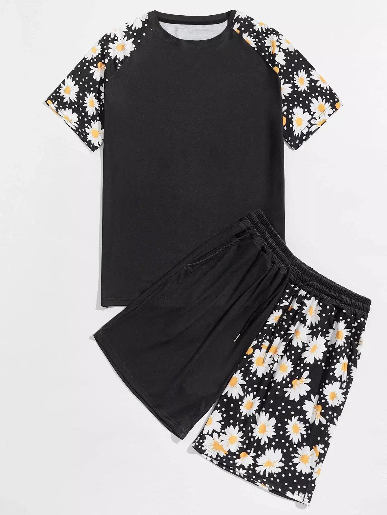 تي شيرت بطبعة ديزي للرجال وشورت بخصر مربوط