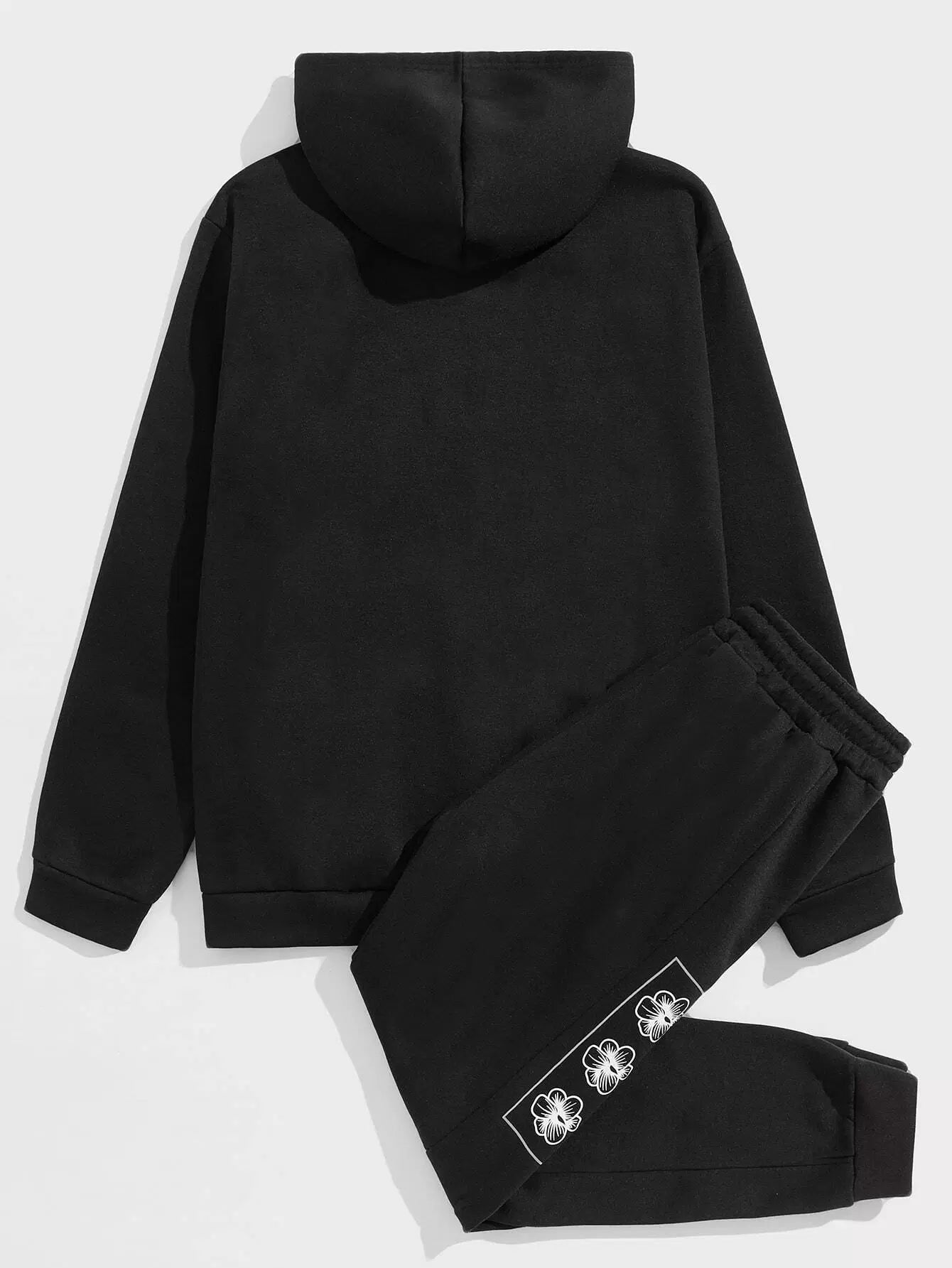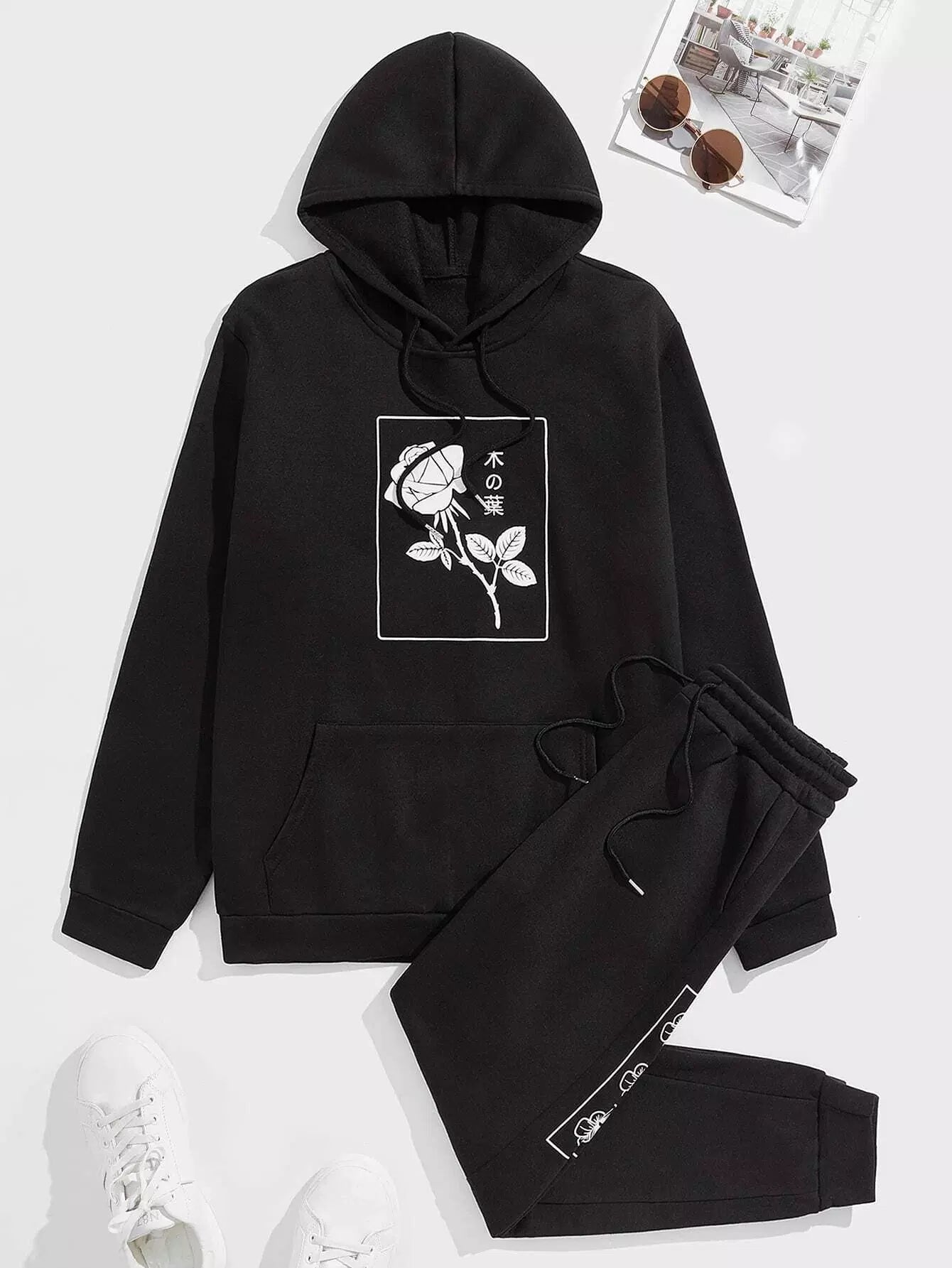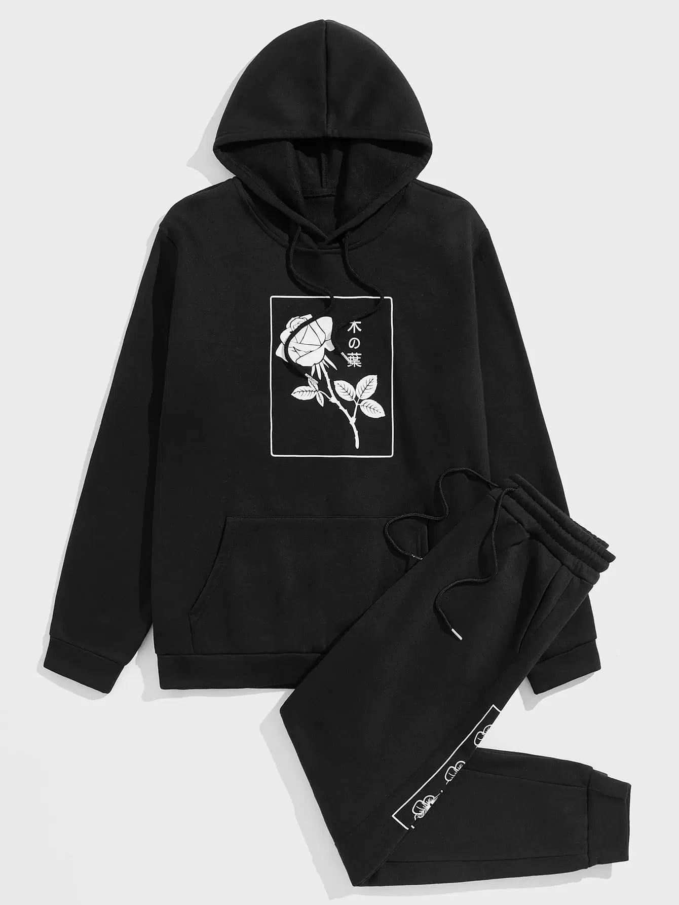 هودي وسراويل رياضية بقلنسوة وبنطلون رياضي رجالي بنقوش زهور وحروف