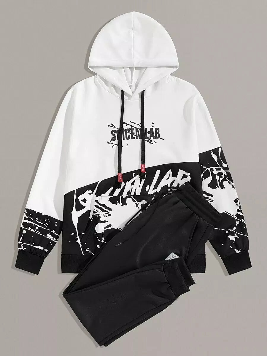 بدلة رياضية رجالية برسوم جرافيك للرجال بأربطة ضيقة