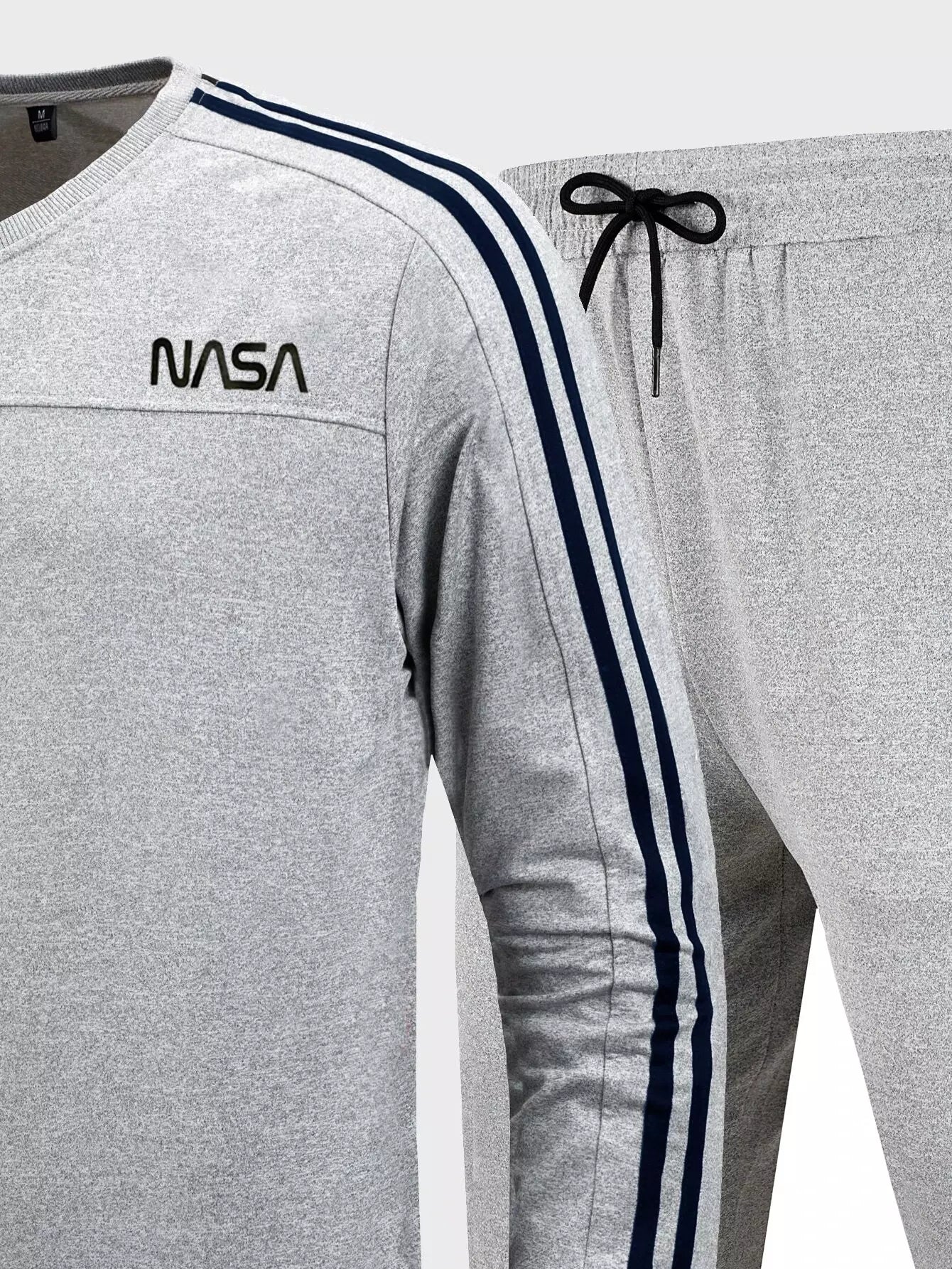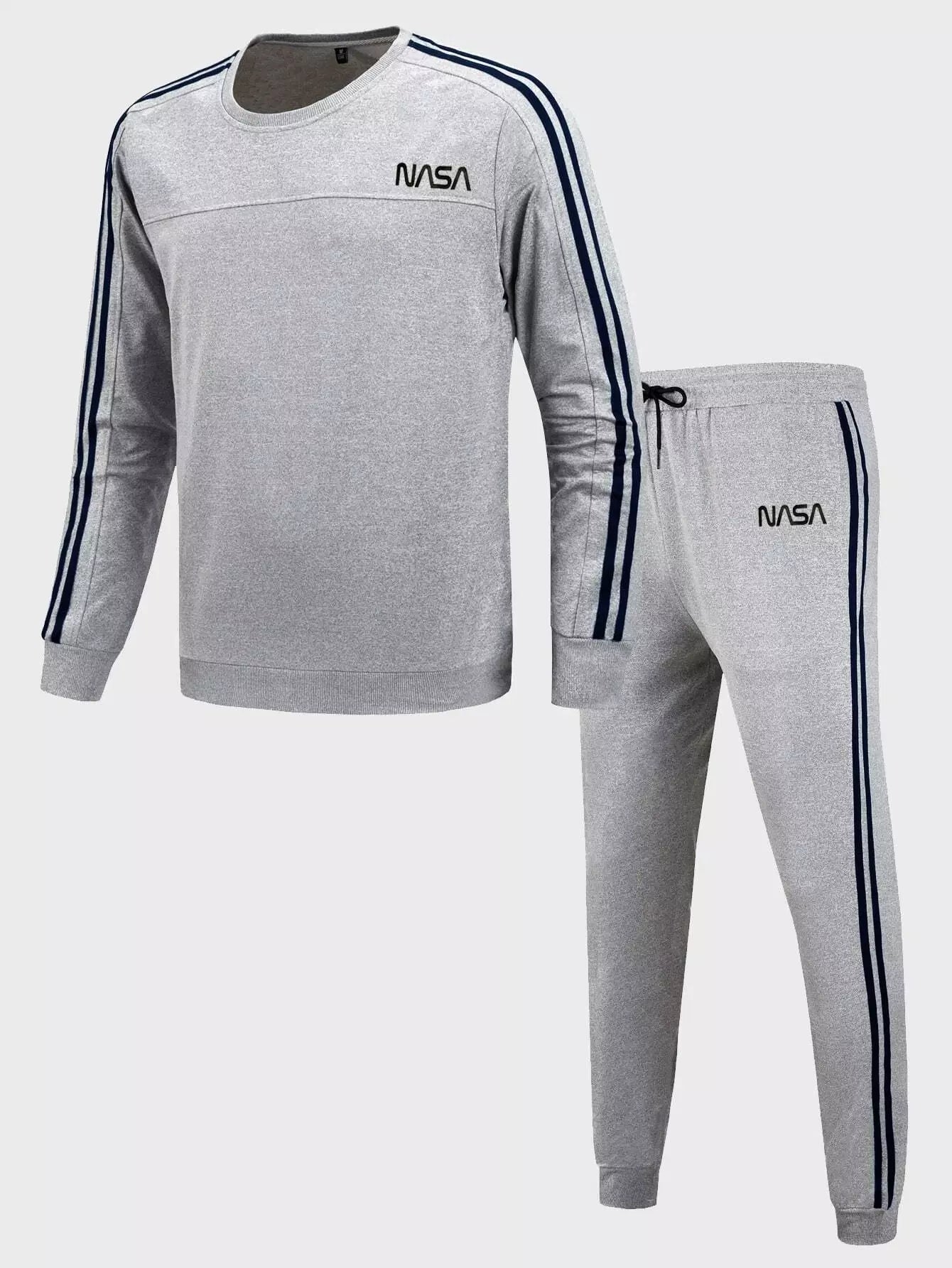 سويت شيرت وبنطال رياضي مخطط جانبي برسومات للرجال