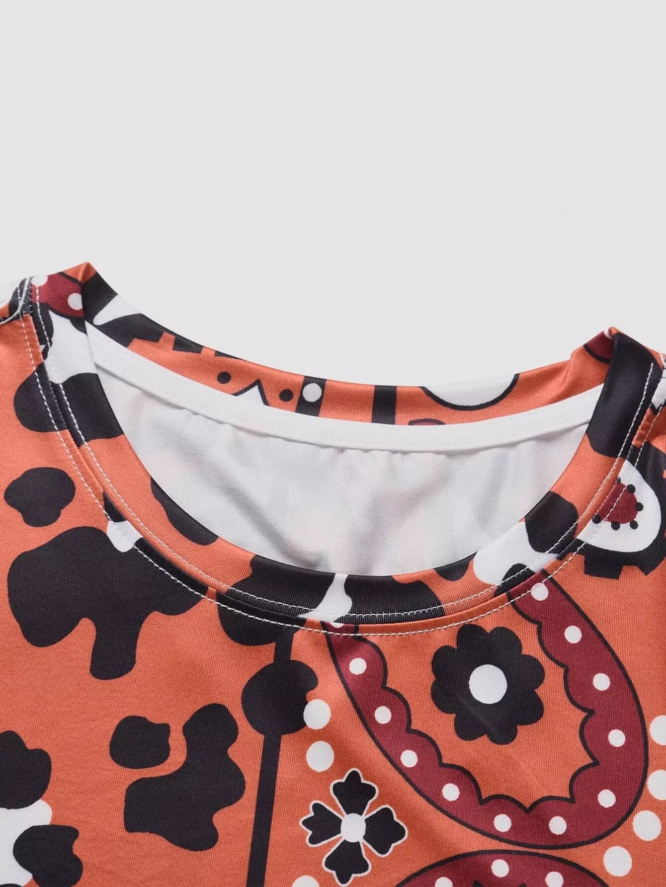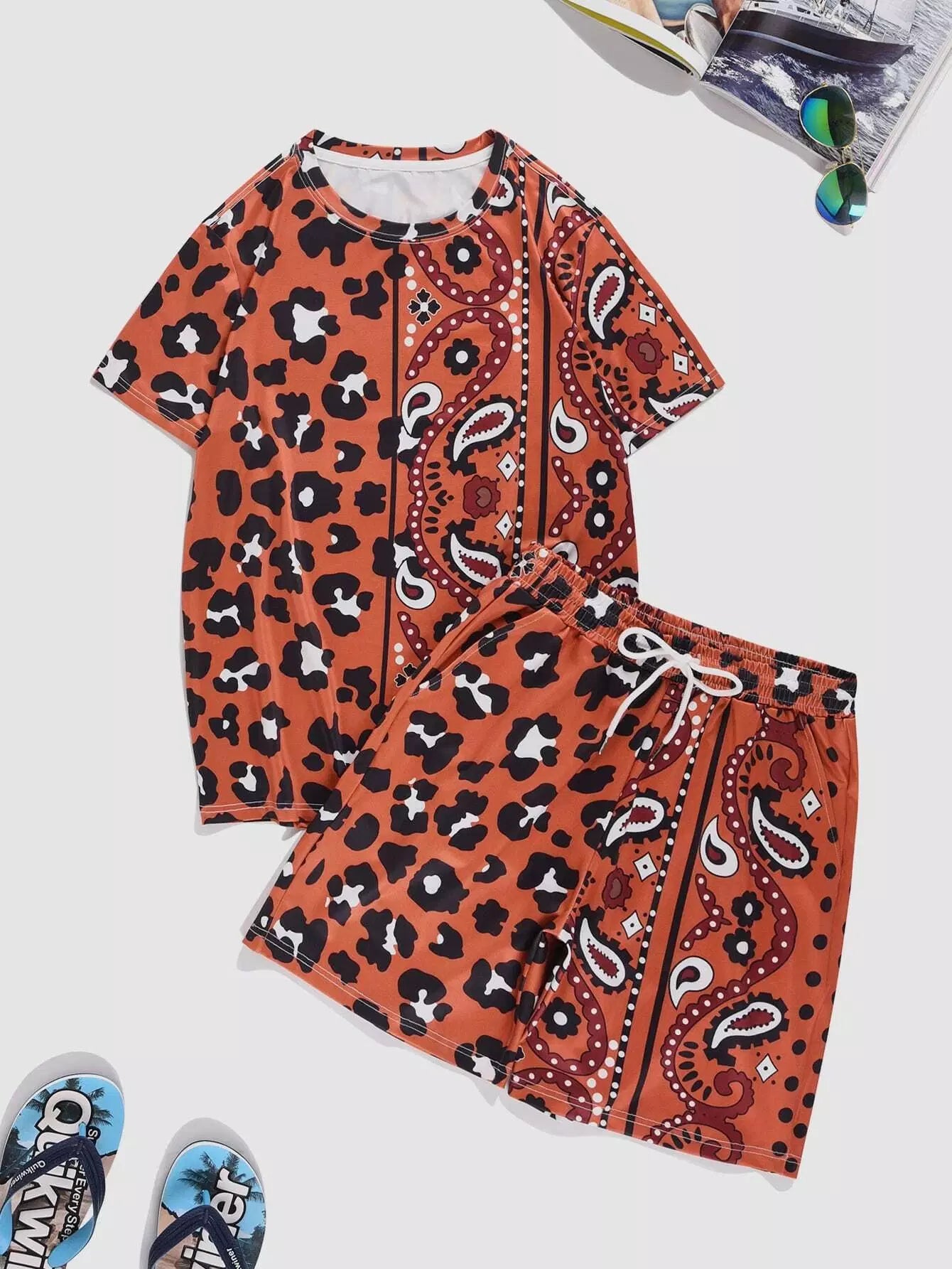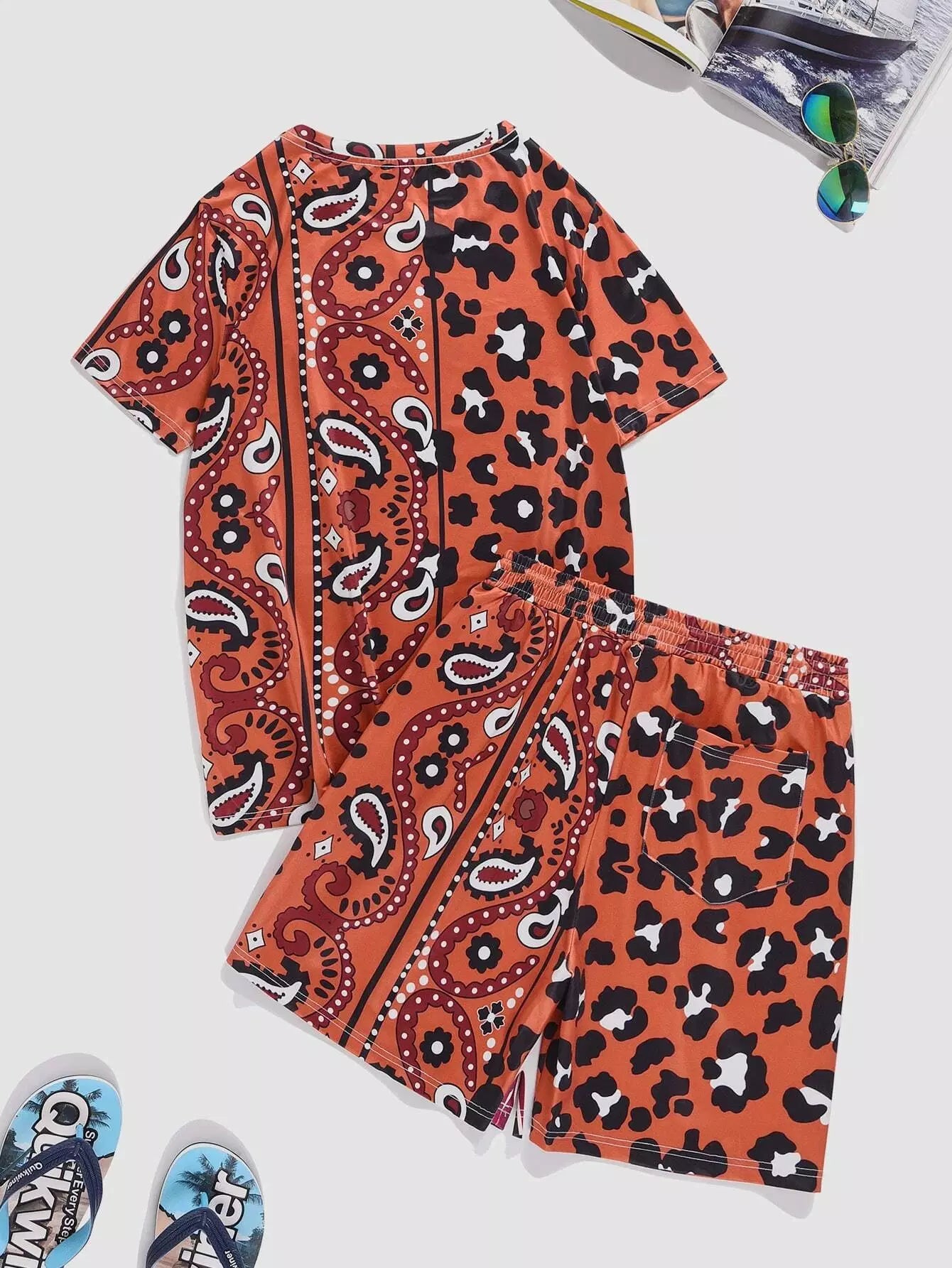 طقم رجالي من بلوزة بطبعة بيزلي وشورت برباط خصر