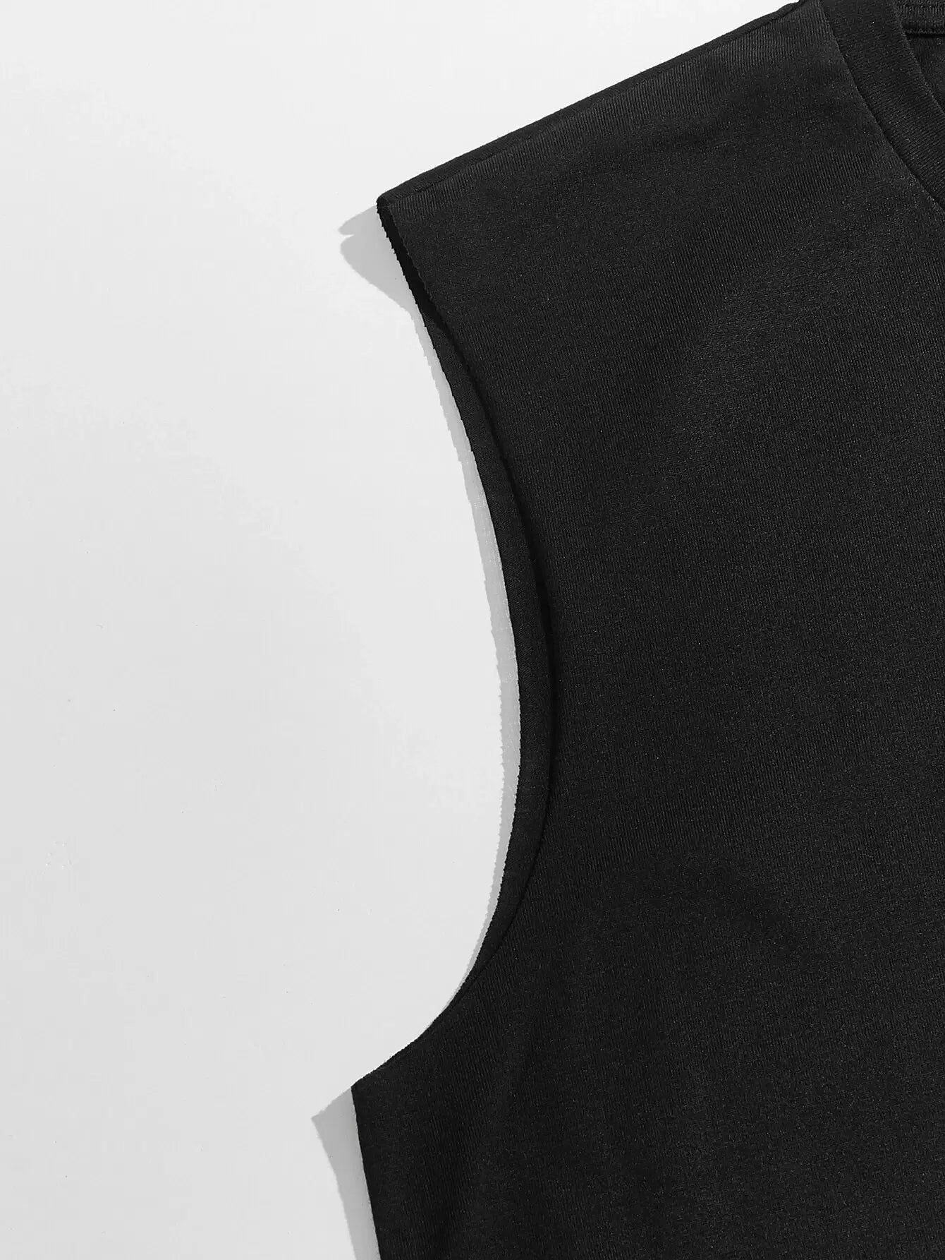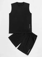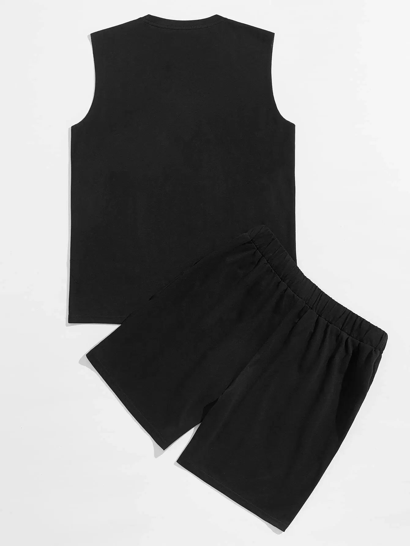 تي شيرت بدون أكمام بشعار شعار رجالي مع شورت رياضي