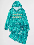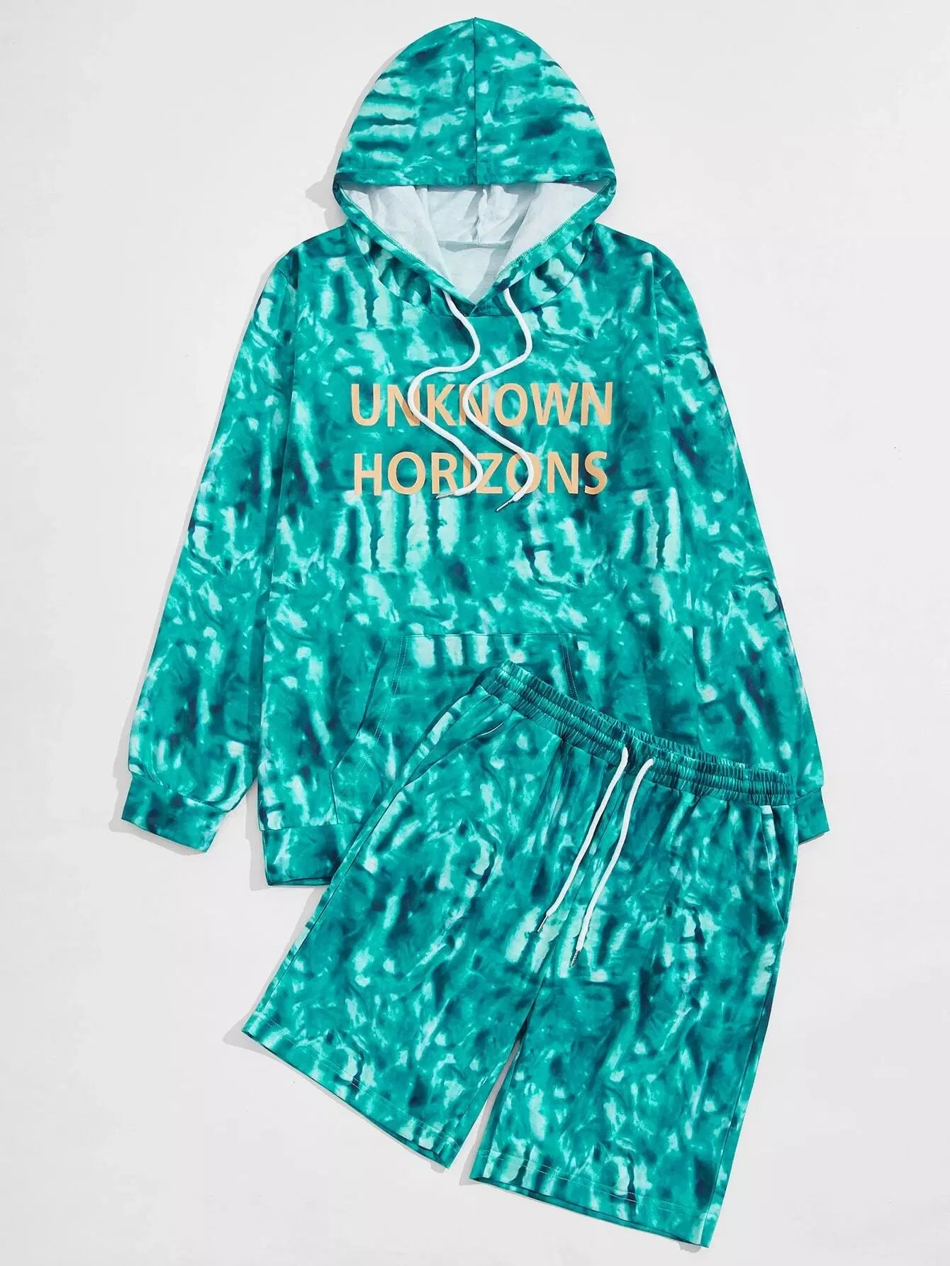 هودي وشورت برباط سحب للرجال مع رسومات بأحرف صبغية