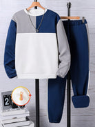 men SHEIN Explorewe 2 Pcs/Set Teen Boy Fashionable Versatile Street Casual Round Neck Long Sleeve Sweatshirt And Pants