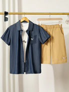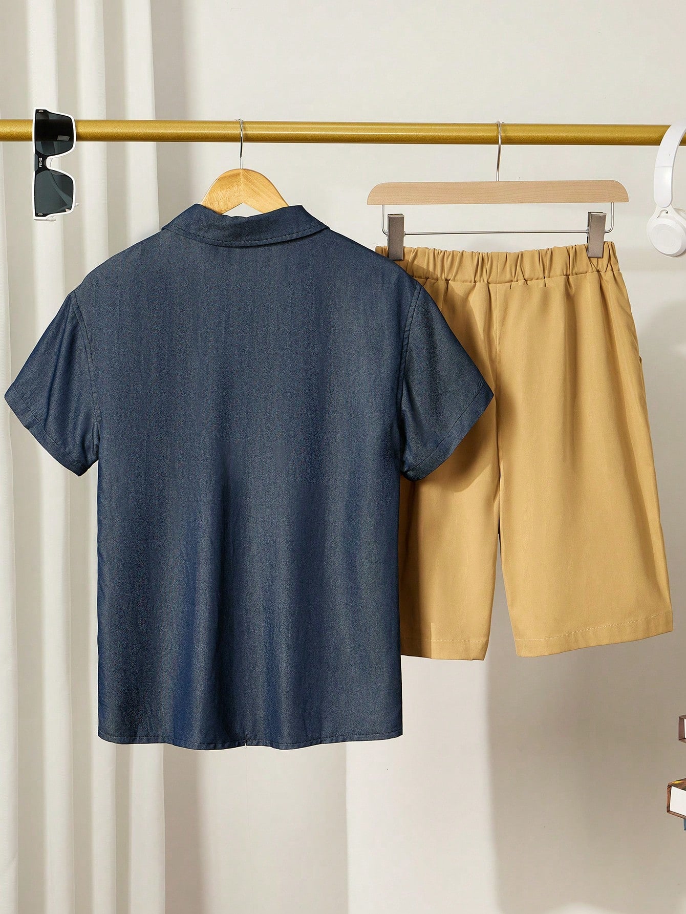 men Teenage Boys' Casual Short Sleeve Shirt And Shorts Set