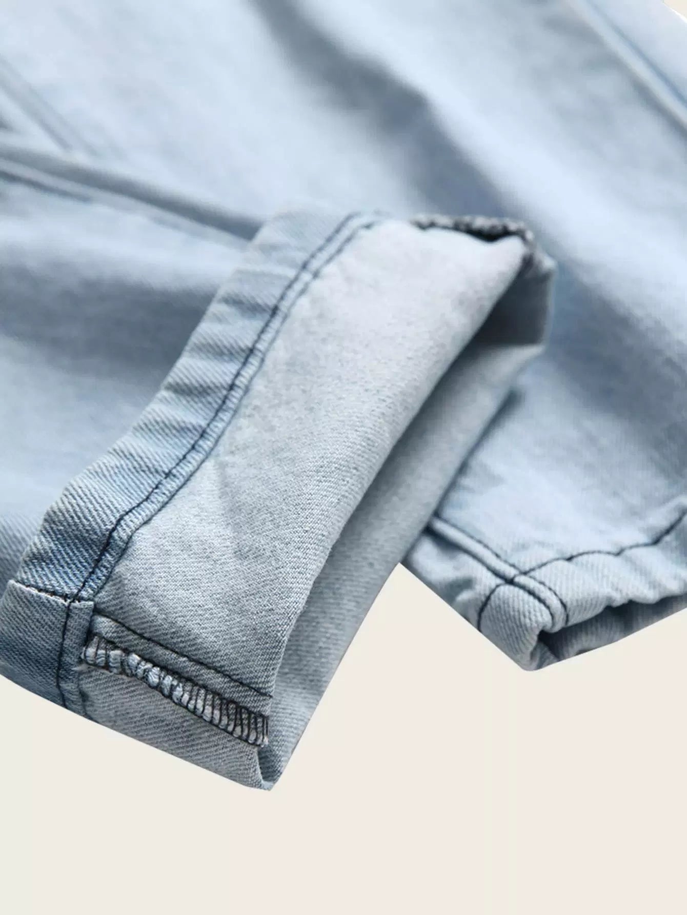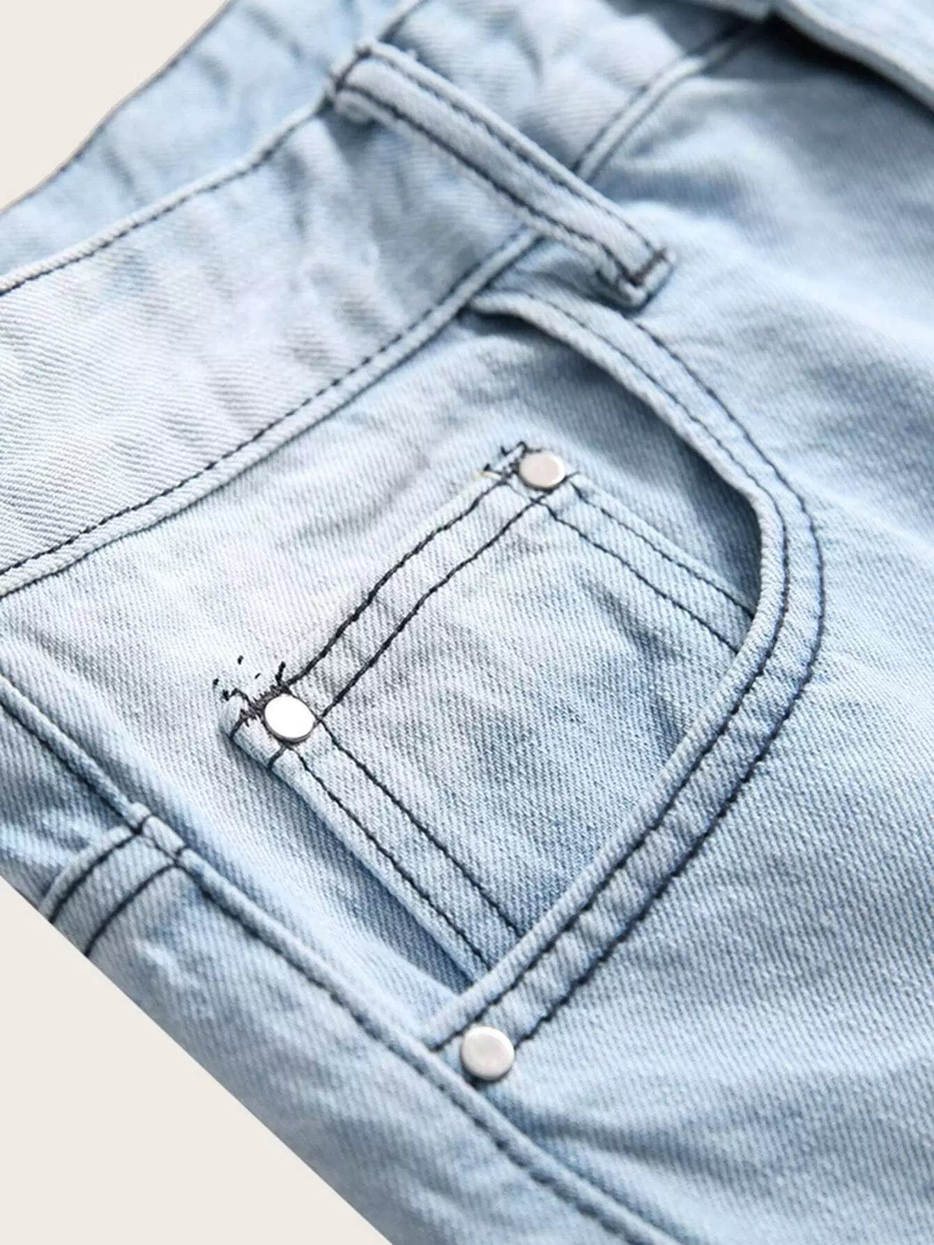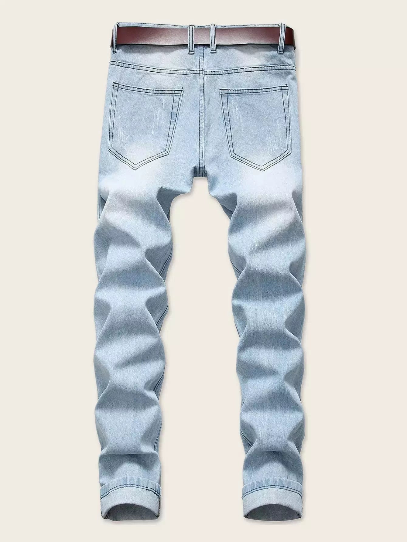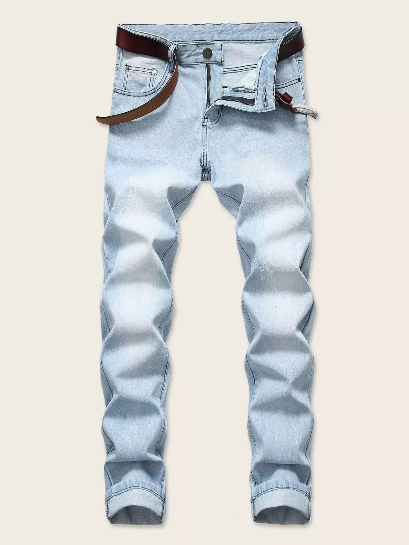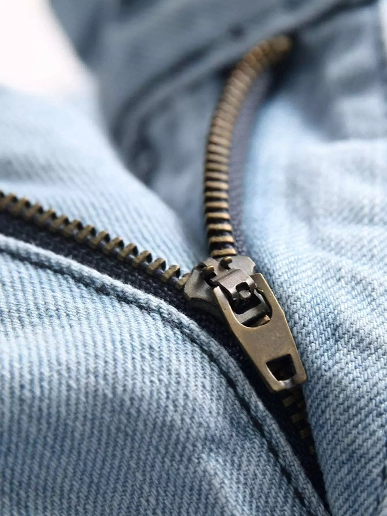 بنطلون جينز رجالي مغسول بسحاب بدون حزام
