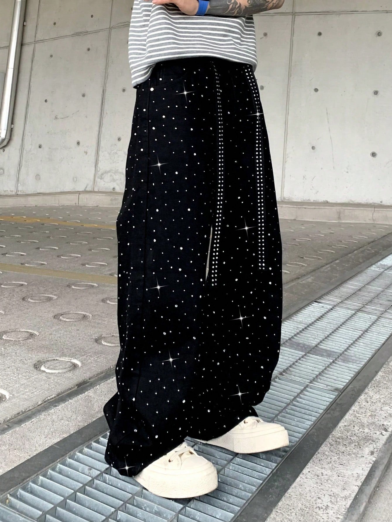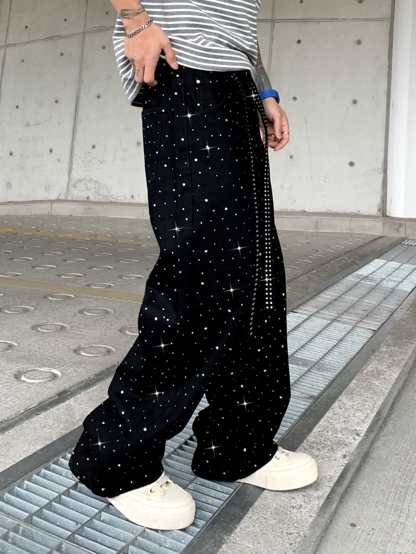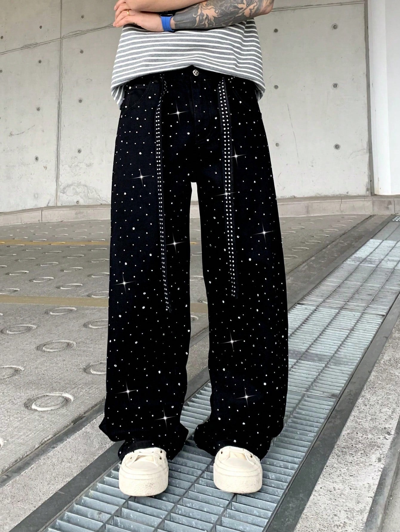بنطلون جينز لامع مزين بأحجار الراين من Leev، بتصميم أنيق مغسول، رائع كهدية في العطلات