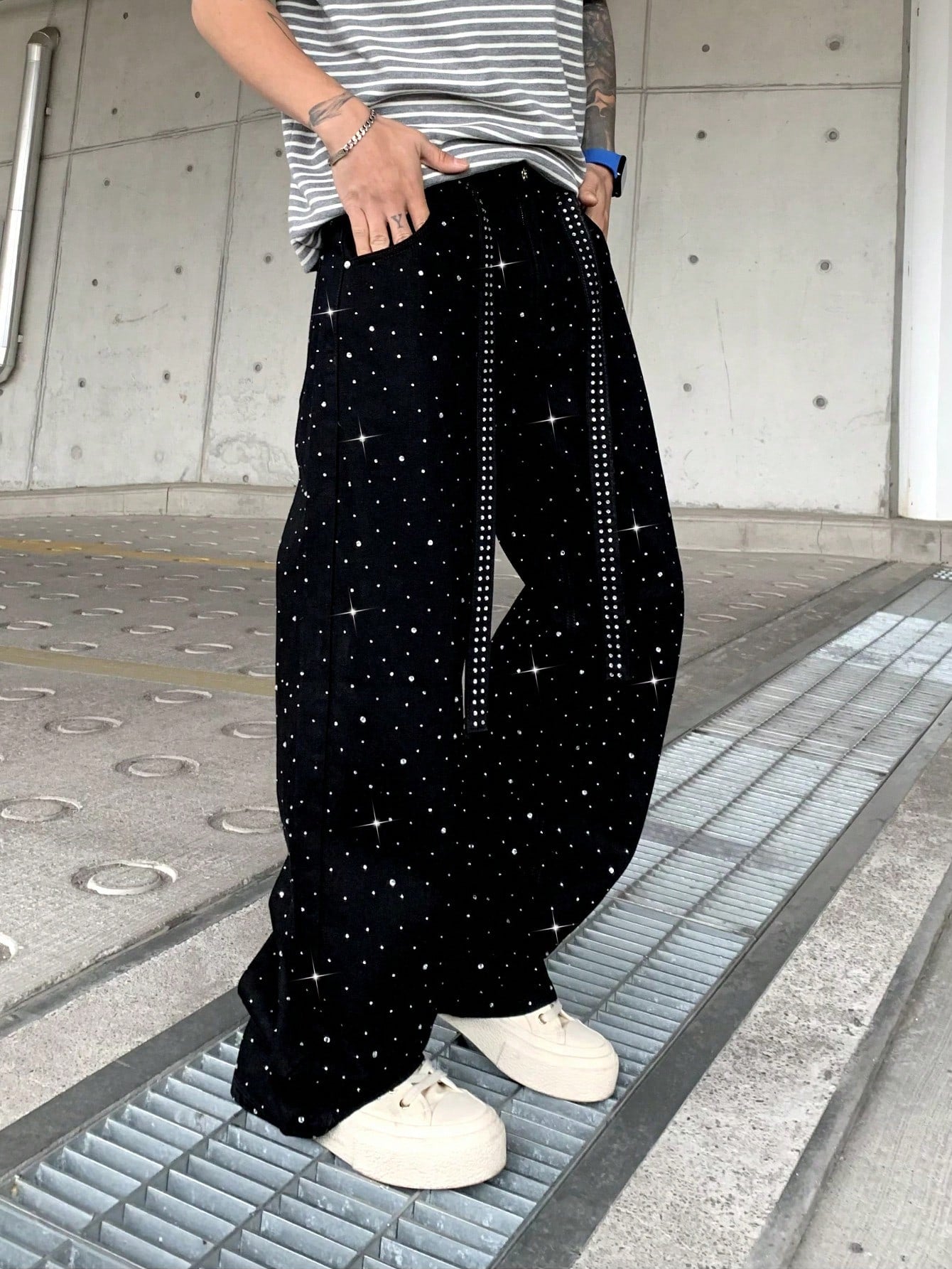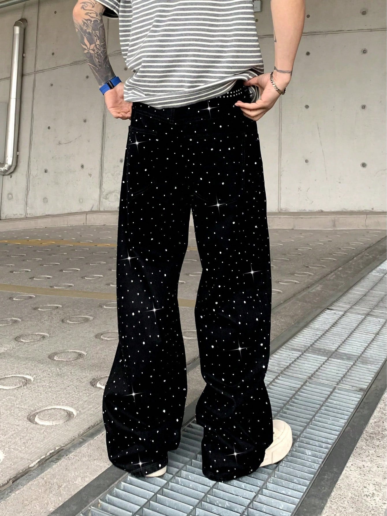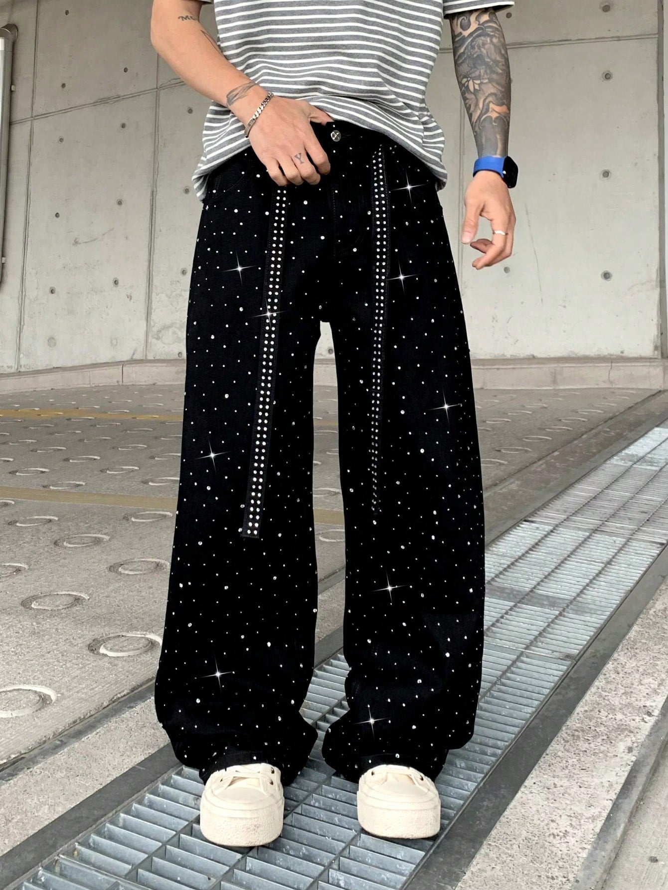 بنطلون جينز لامع مزين بأحجار الراين من Leev، بتصميم أنيق مغسول، رائع كهدية في العطلات