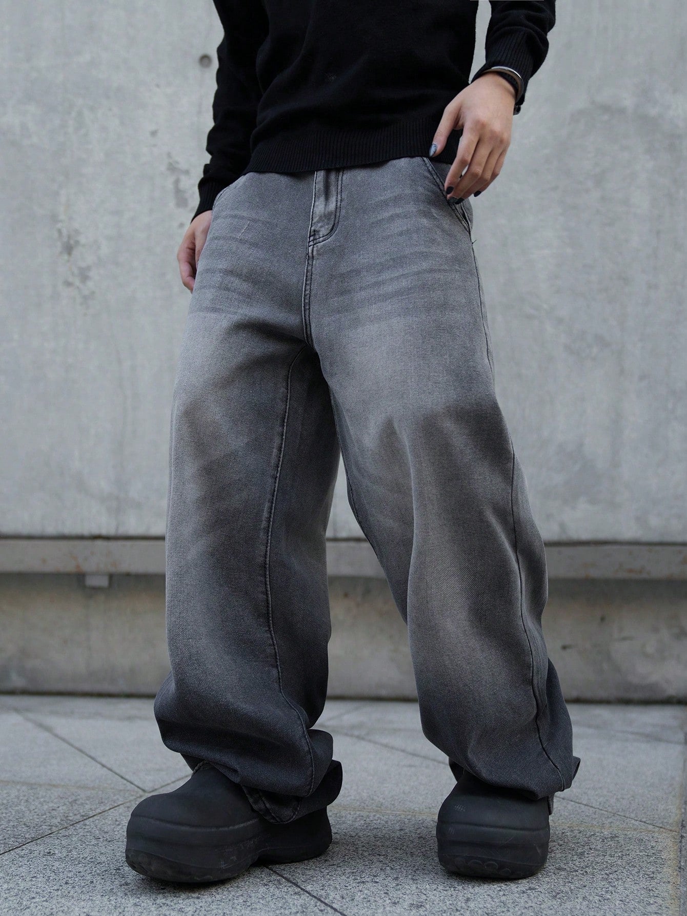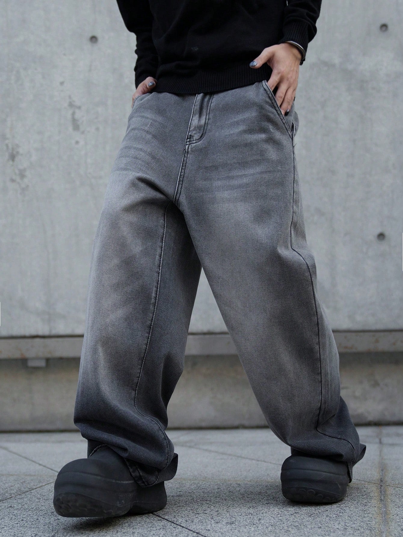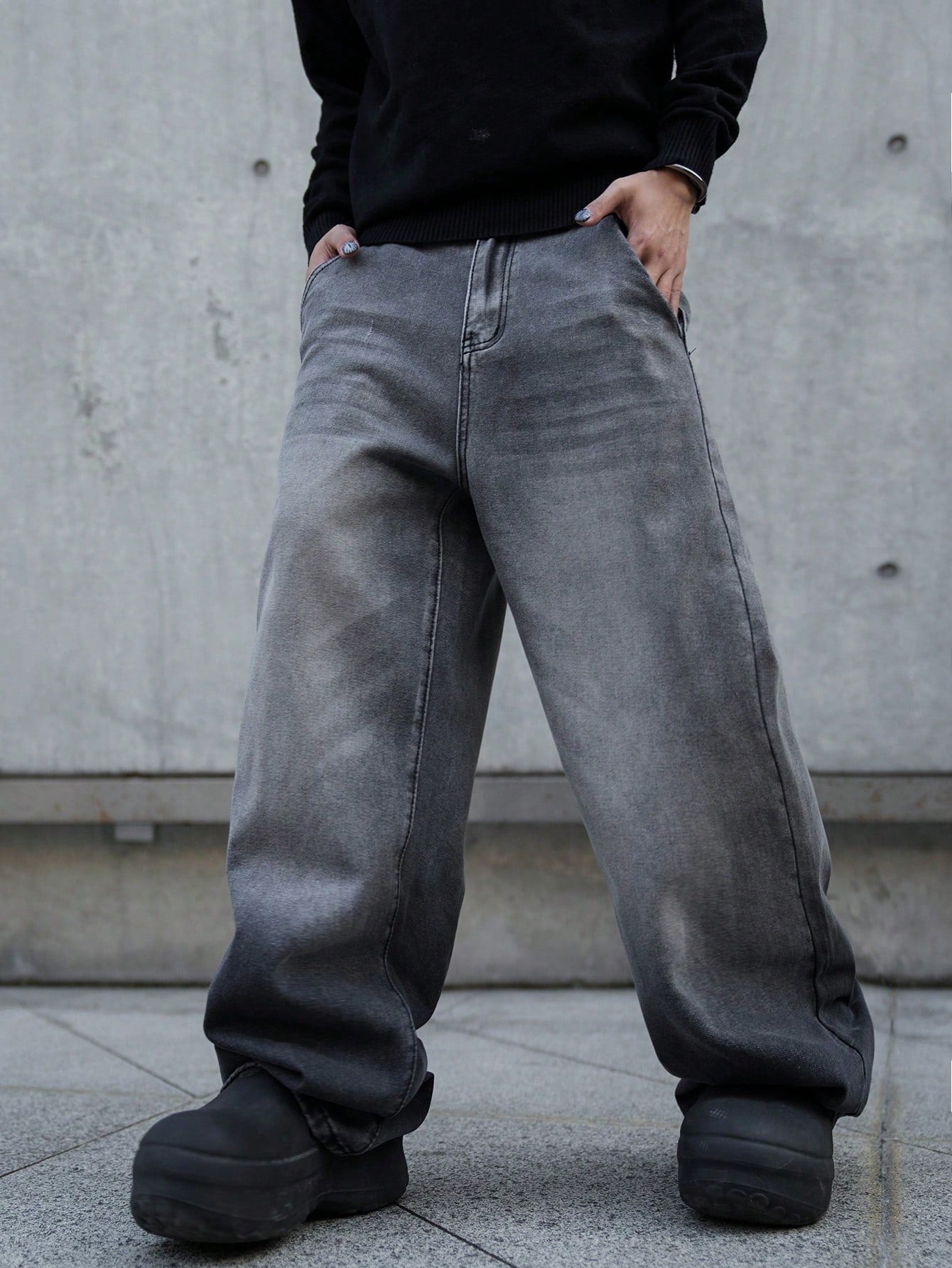 بنطلون جينز رجالي واسع الساقين بجيوب مائلة من مانفينيتي إي إم آر جي، متعدد الاستخدامات، بقصة كبيرة، مناسب للخروج، والتنزه، والذهاب إلى الجامعة.
