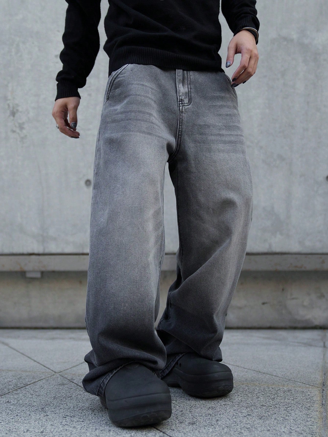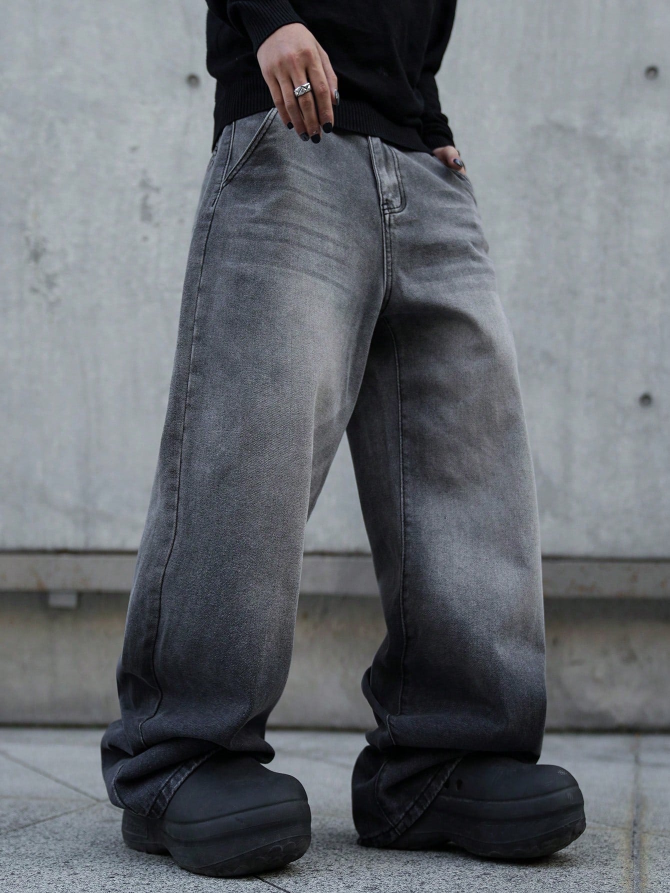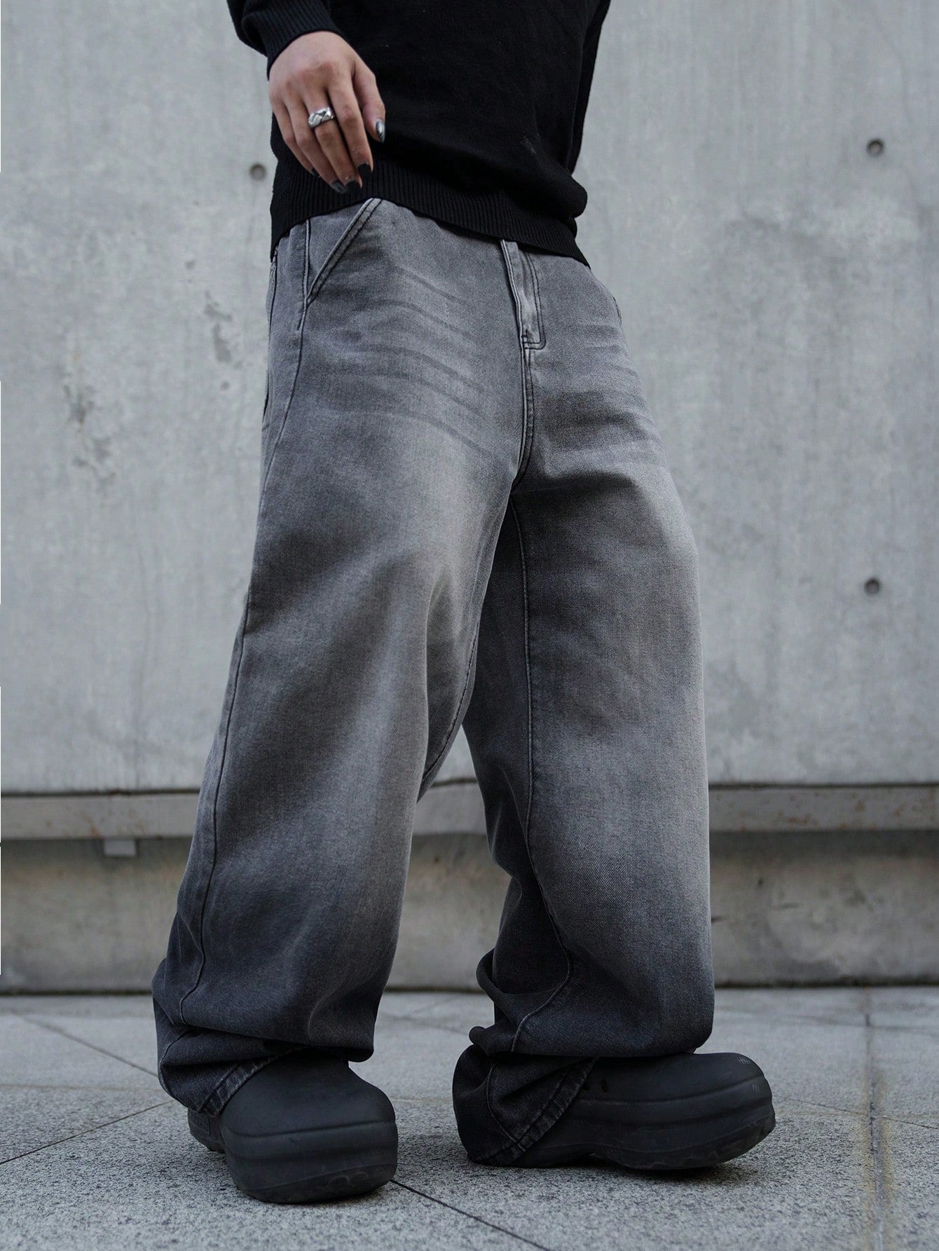 بنطلون جينز رجالي واسع الساقين بجيوب مائلة من مانفينيتي إي إم آر جي، متعدد الاستخدامات، بقصة كبيرة، مناسب للخروج، والتنزه، والذهاب إلى الجامعة.