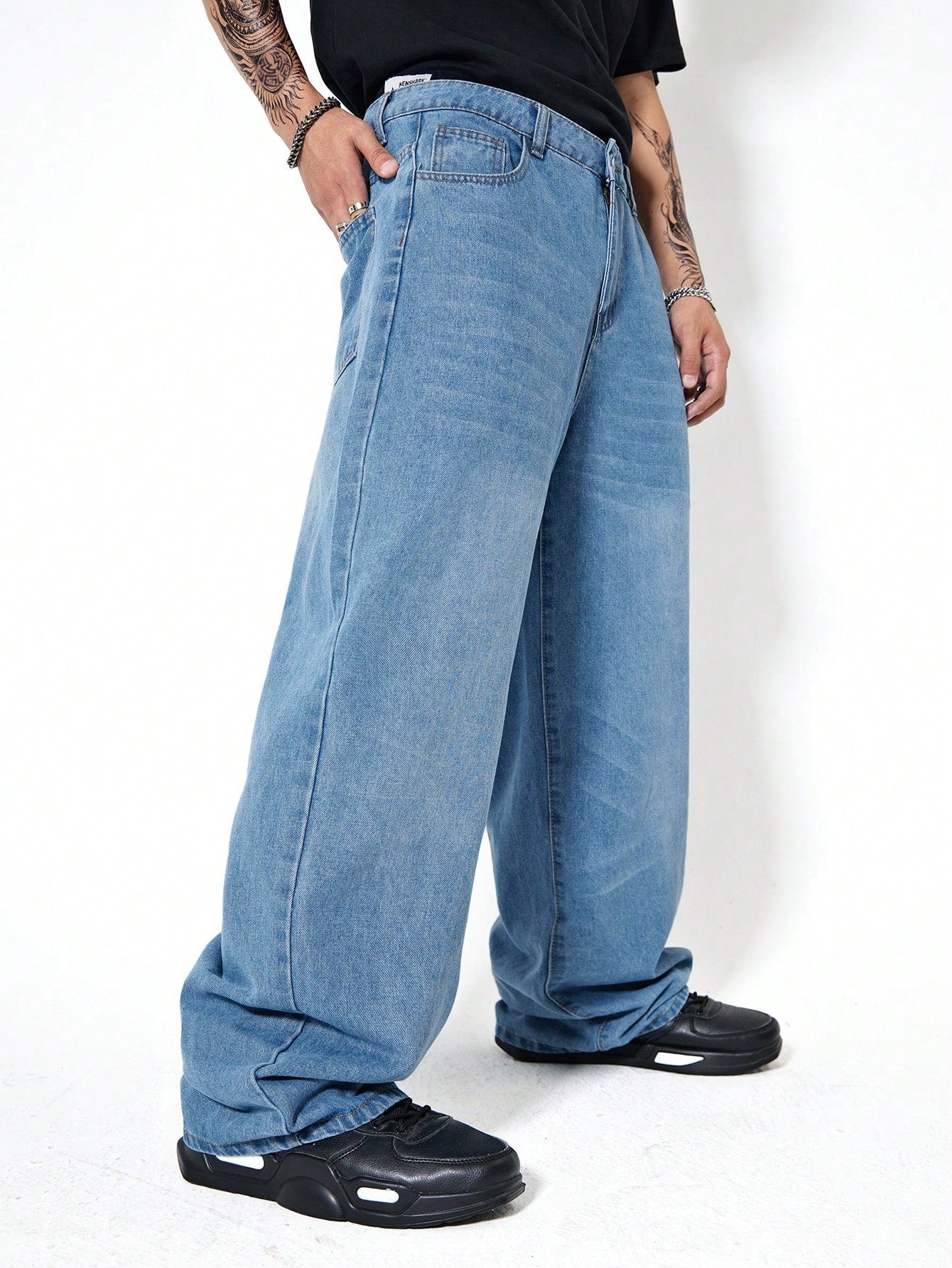 Manfinity Hypemode Men Slant Pocket Wide Leg Jeans