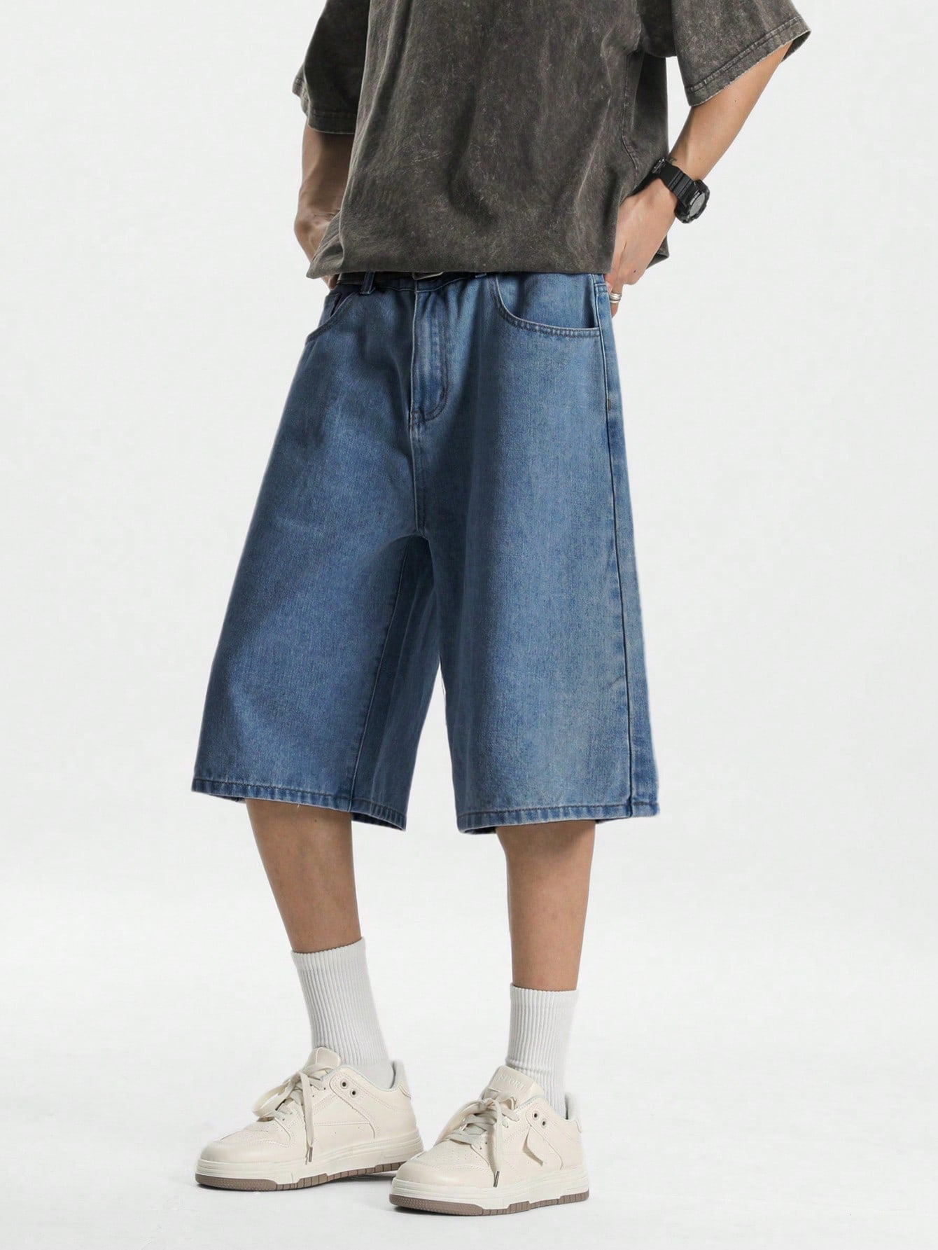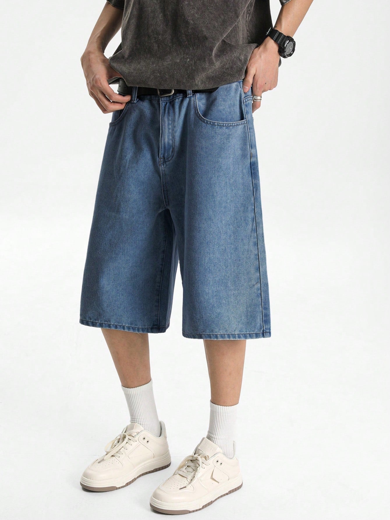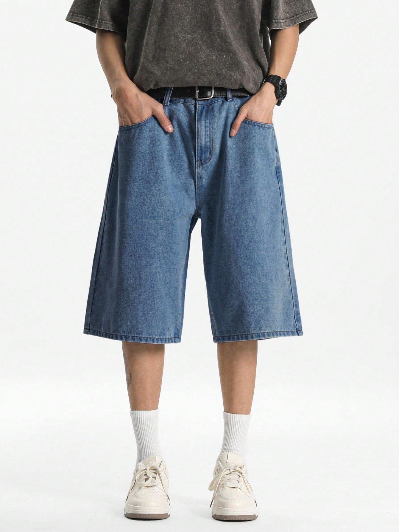 شورت جينز رجالي فضفاض بلون أزرق فاتح من مانفينيتي هايب مود