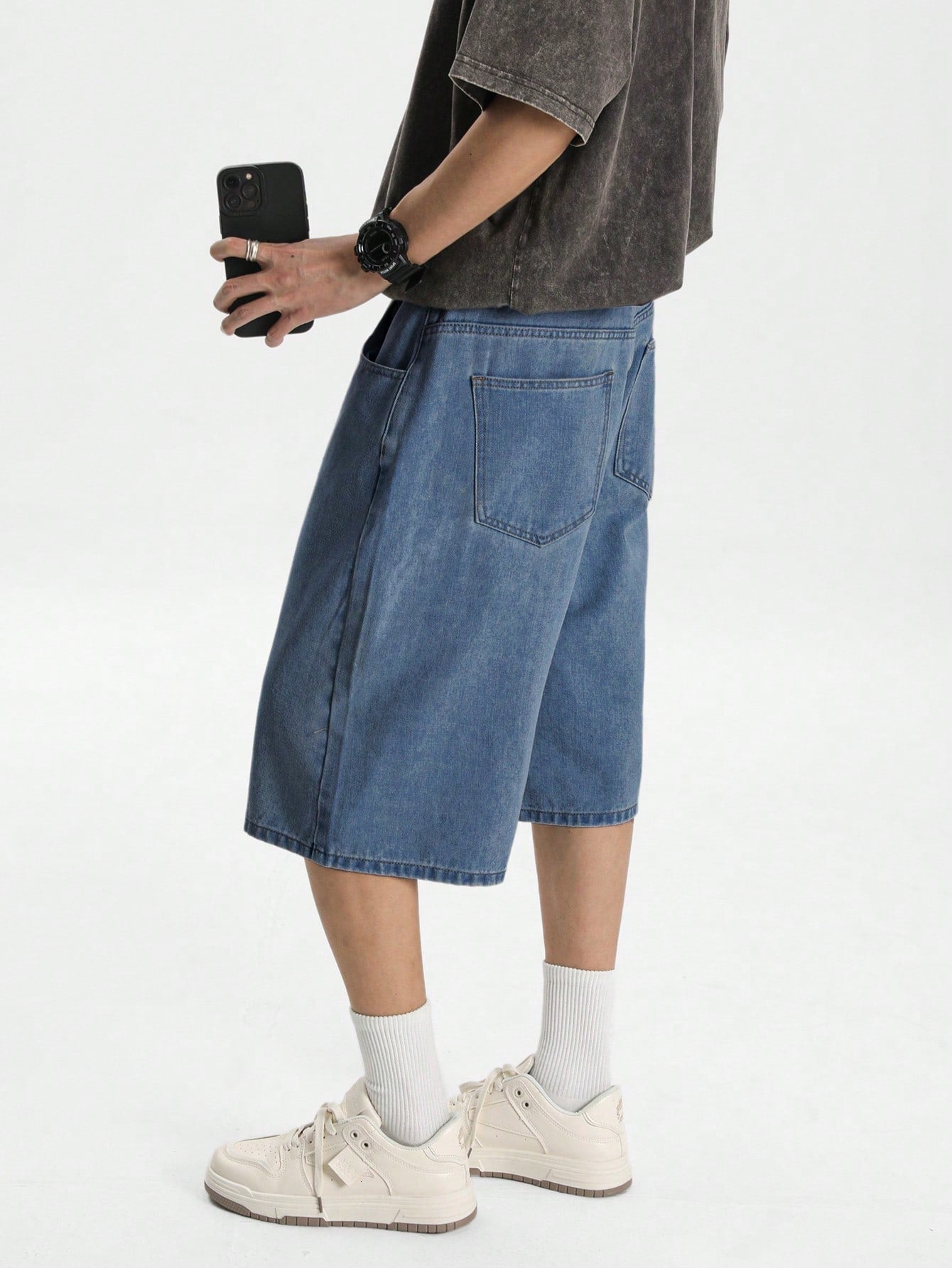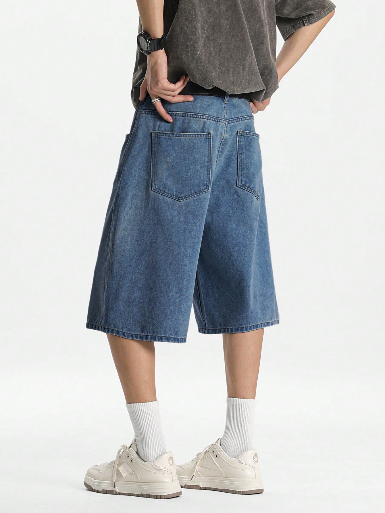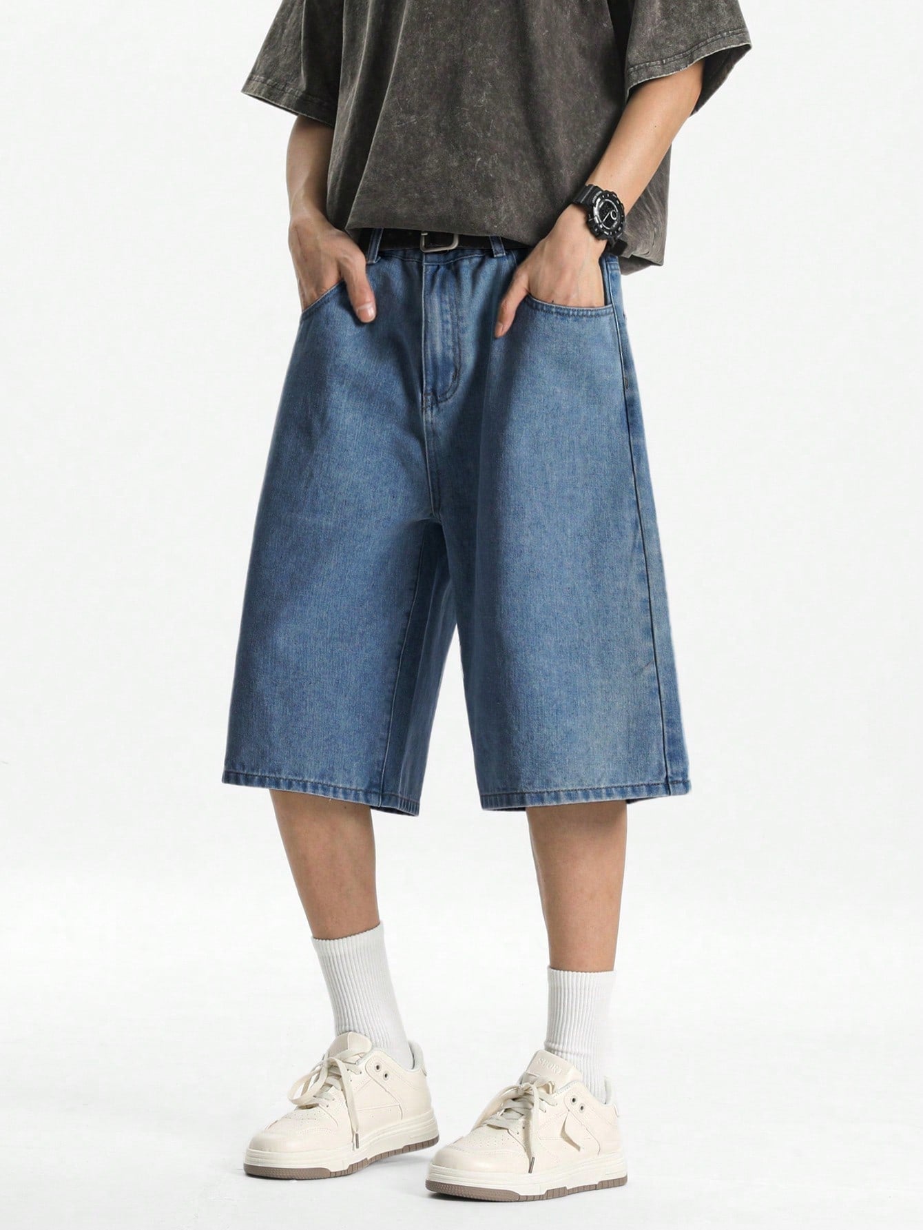 شورت جينز رجالي فضفاض بلون أزرق فاتح من مانفينيتي هايب مود