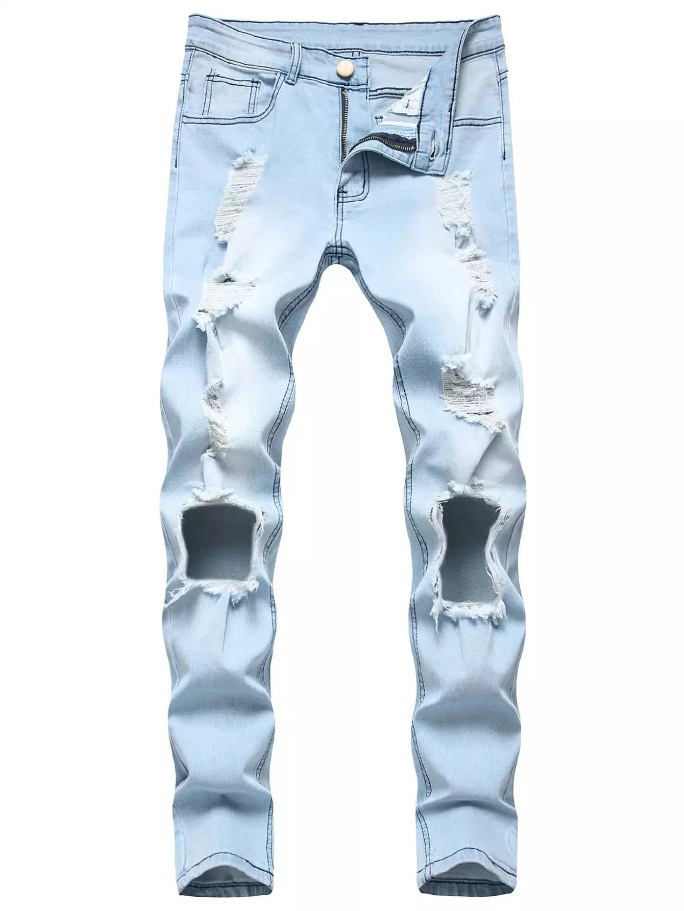 بنطلون جينز رجالي ممزق وضيق