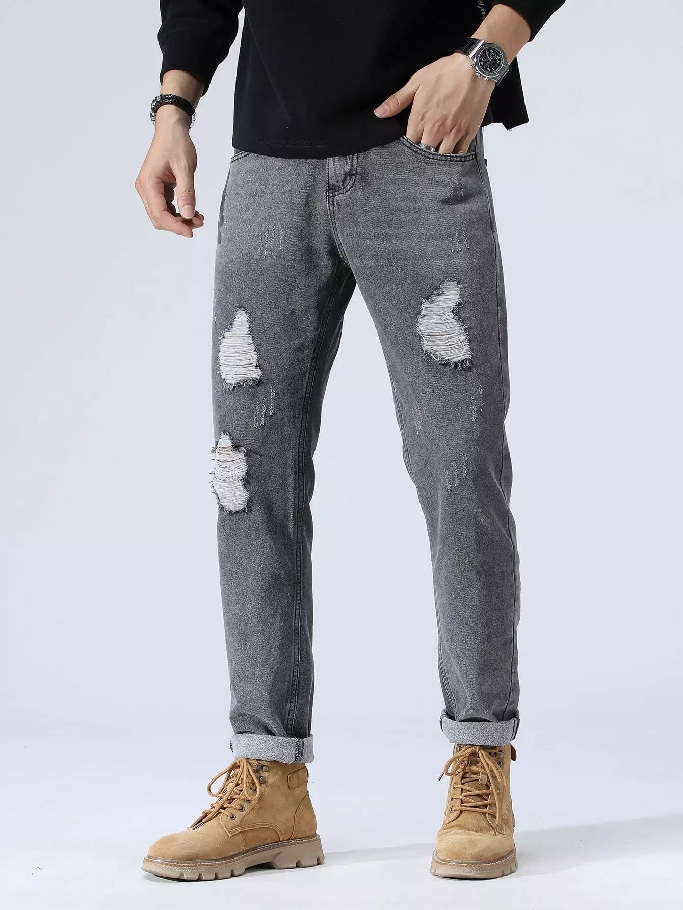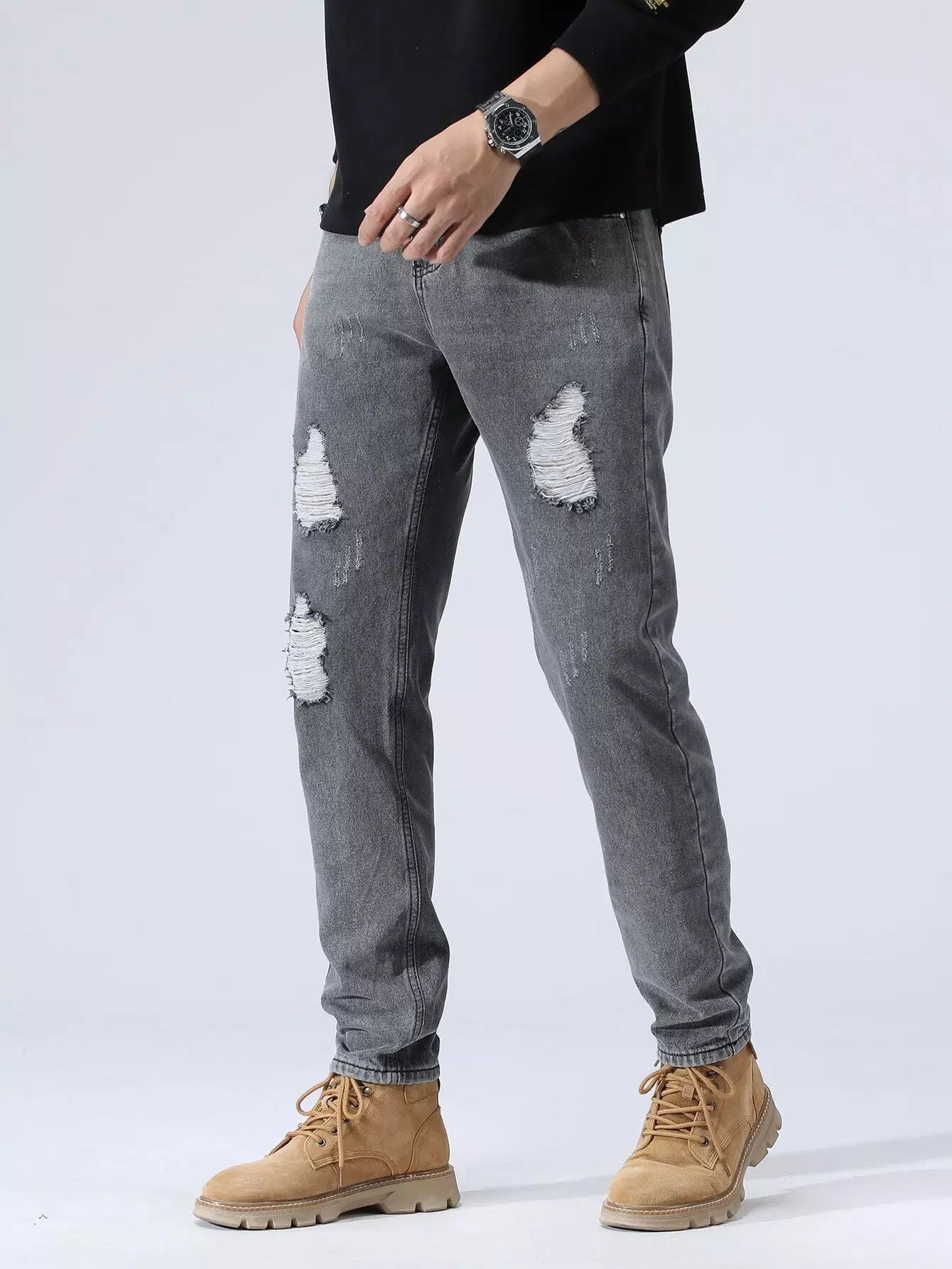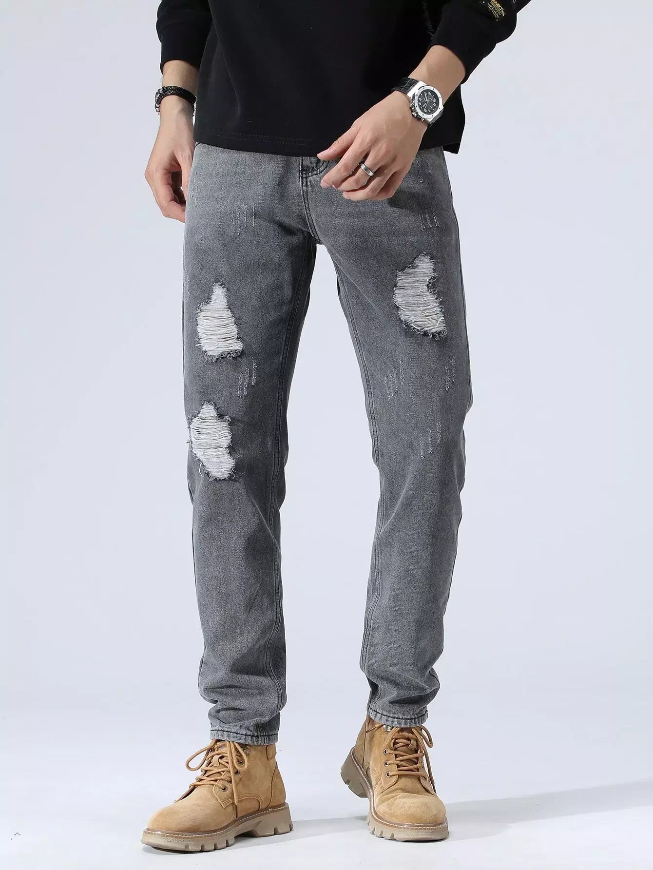 بنطلون جينز رجالي ممزق الجيب الجانبي