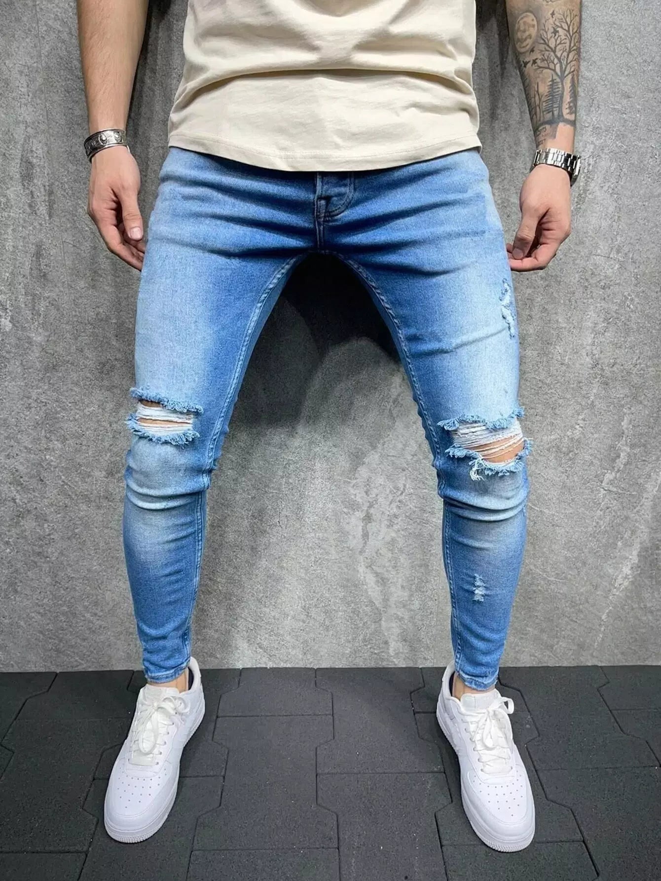 جينز جينز رجالي ممزق ومغسول ونحيف