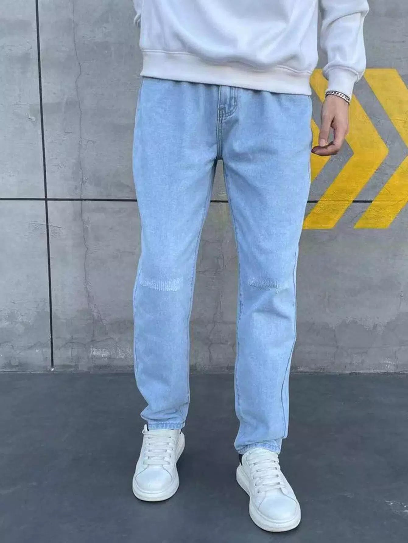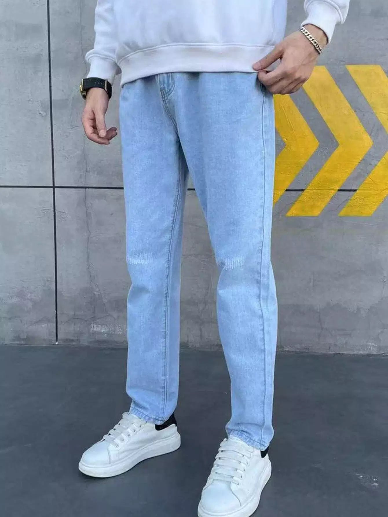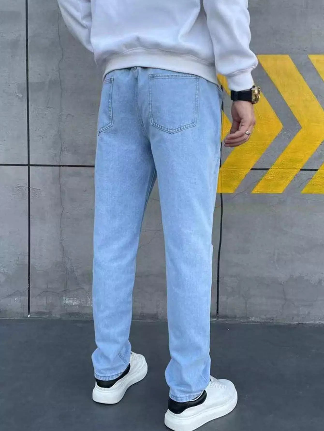 بنطلون جينز رجالي بجيب مائل بساق مستقيمة