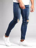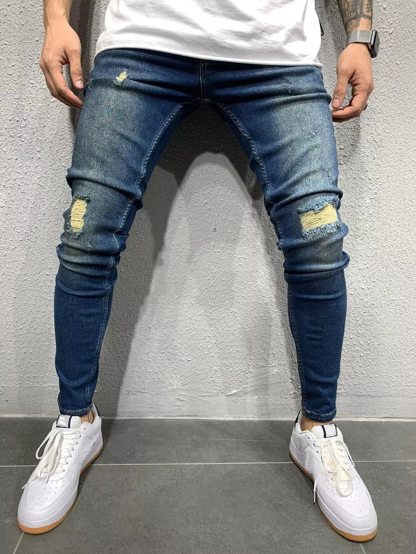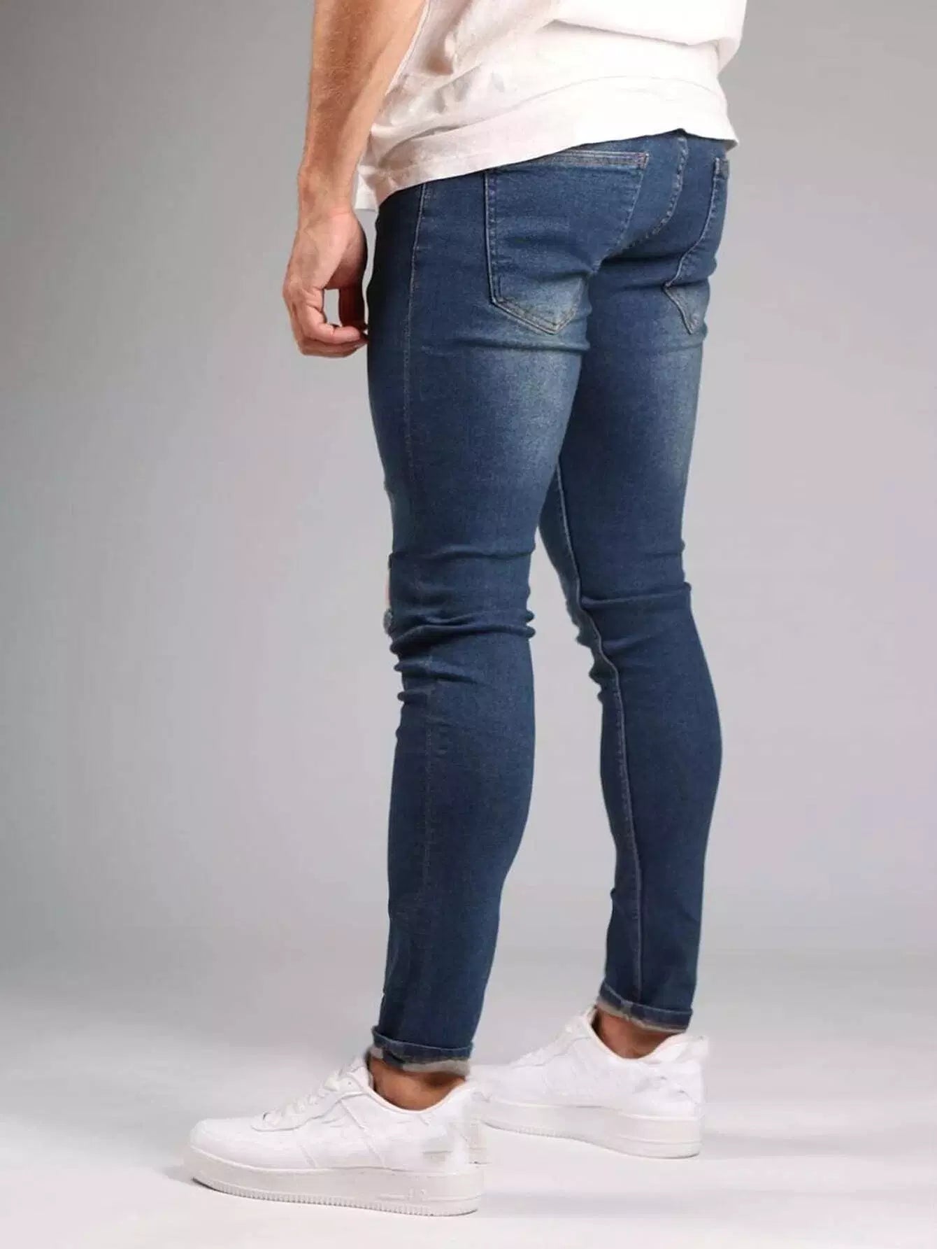 بنطلون جينز سكيني ممزق ومغسول للرجال
