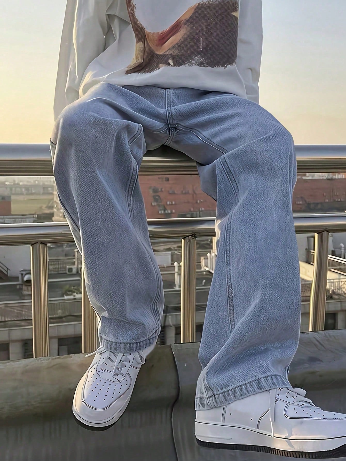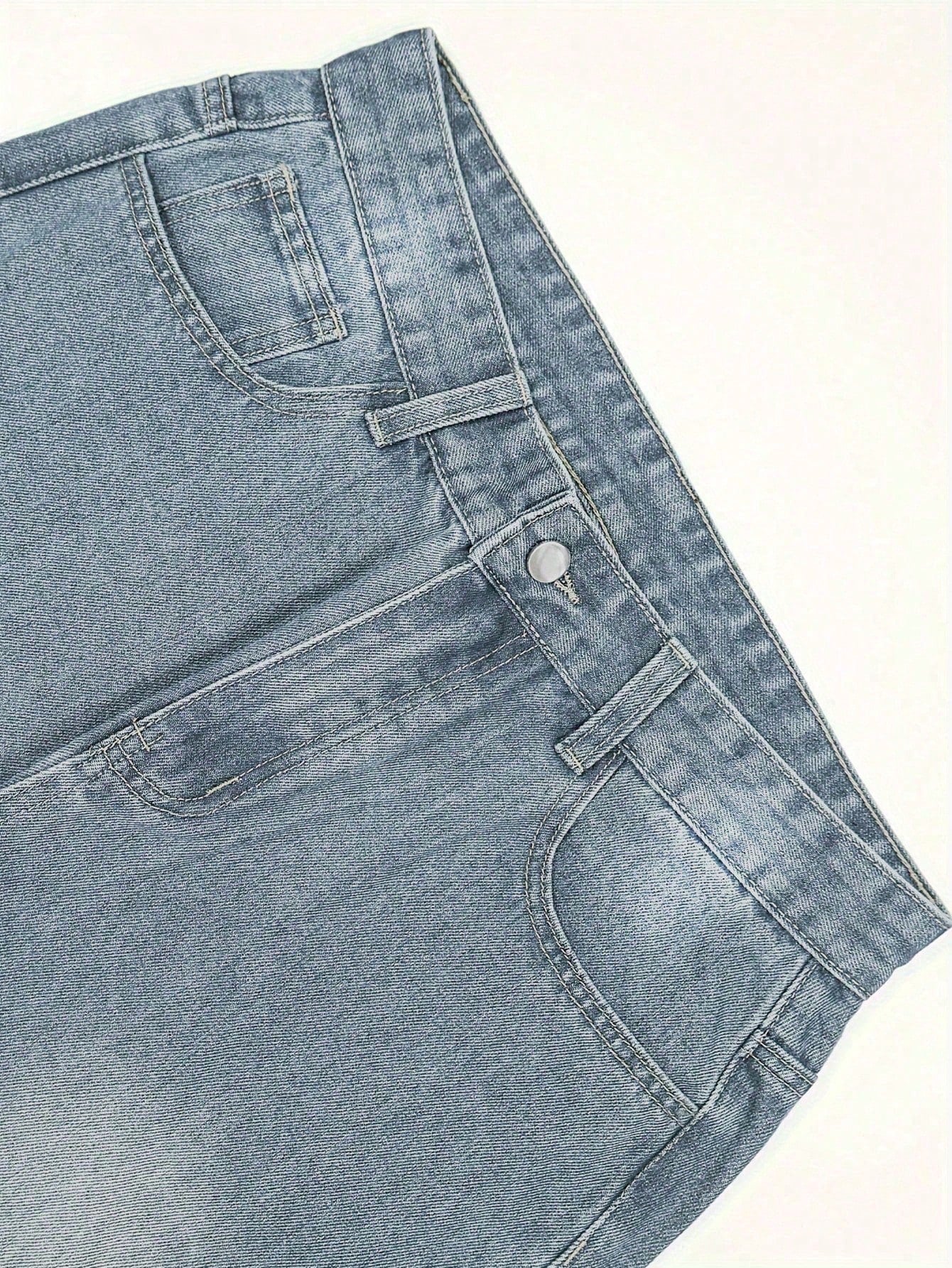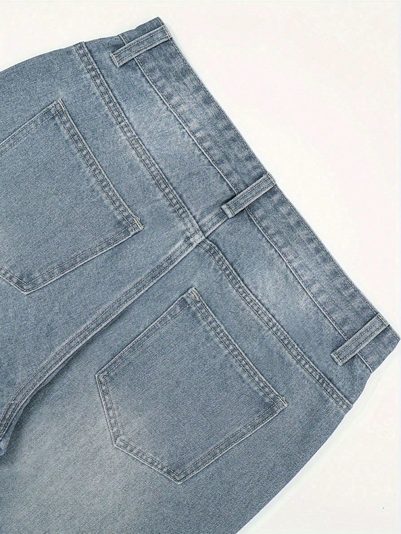بنطلون جينز قطني مغسول بقصة مستقيمة وجيوب مائلة