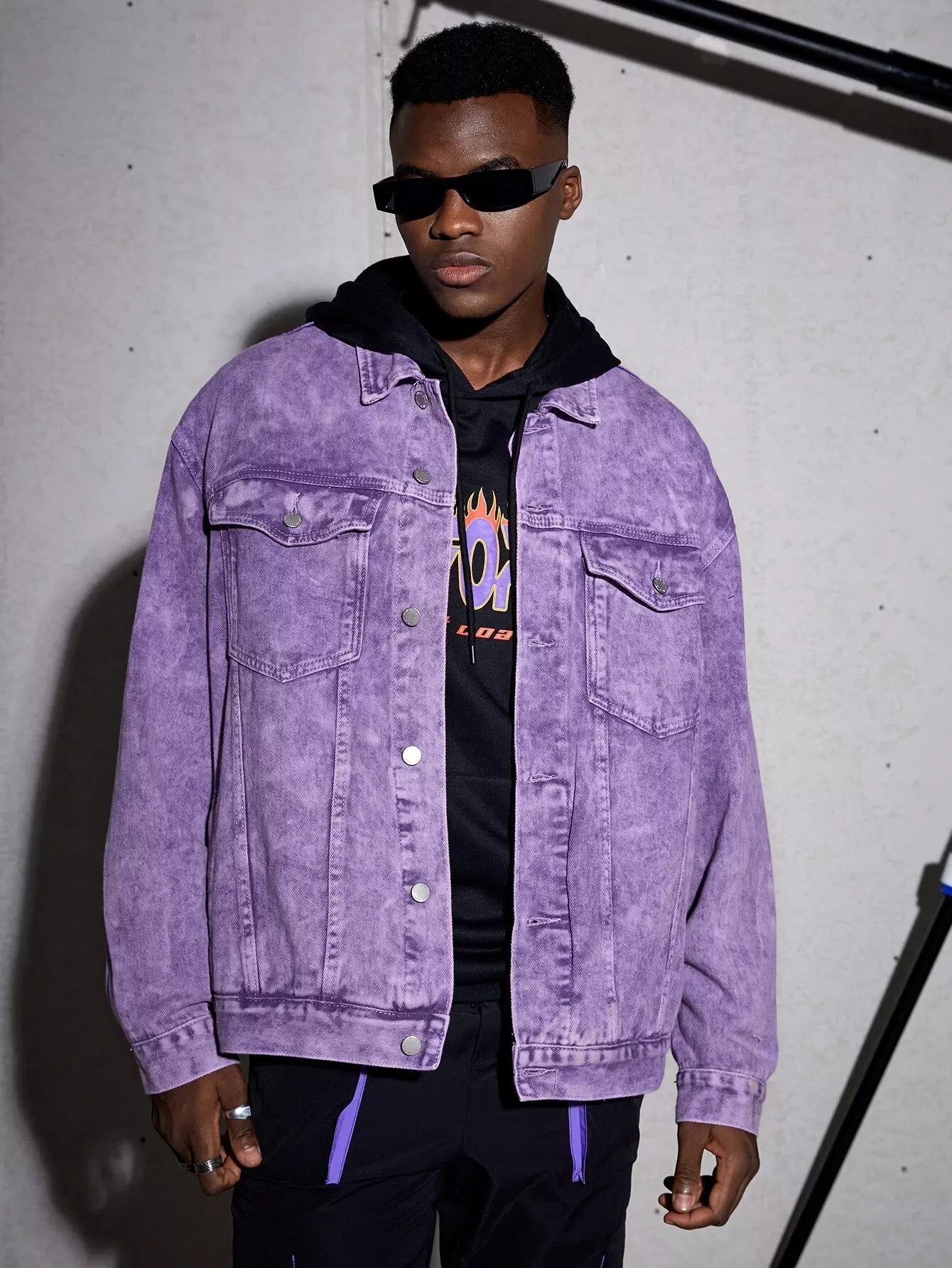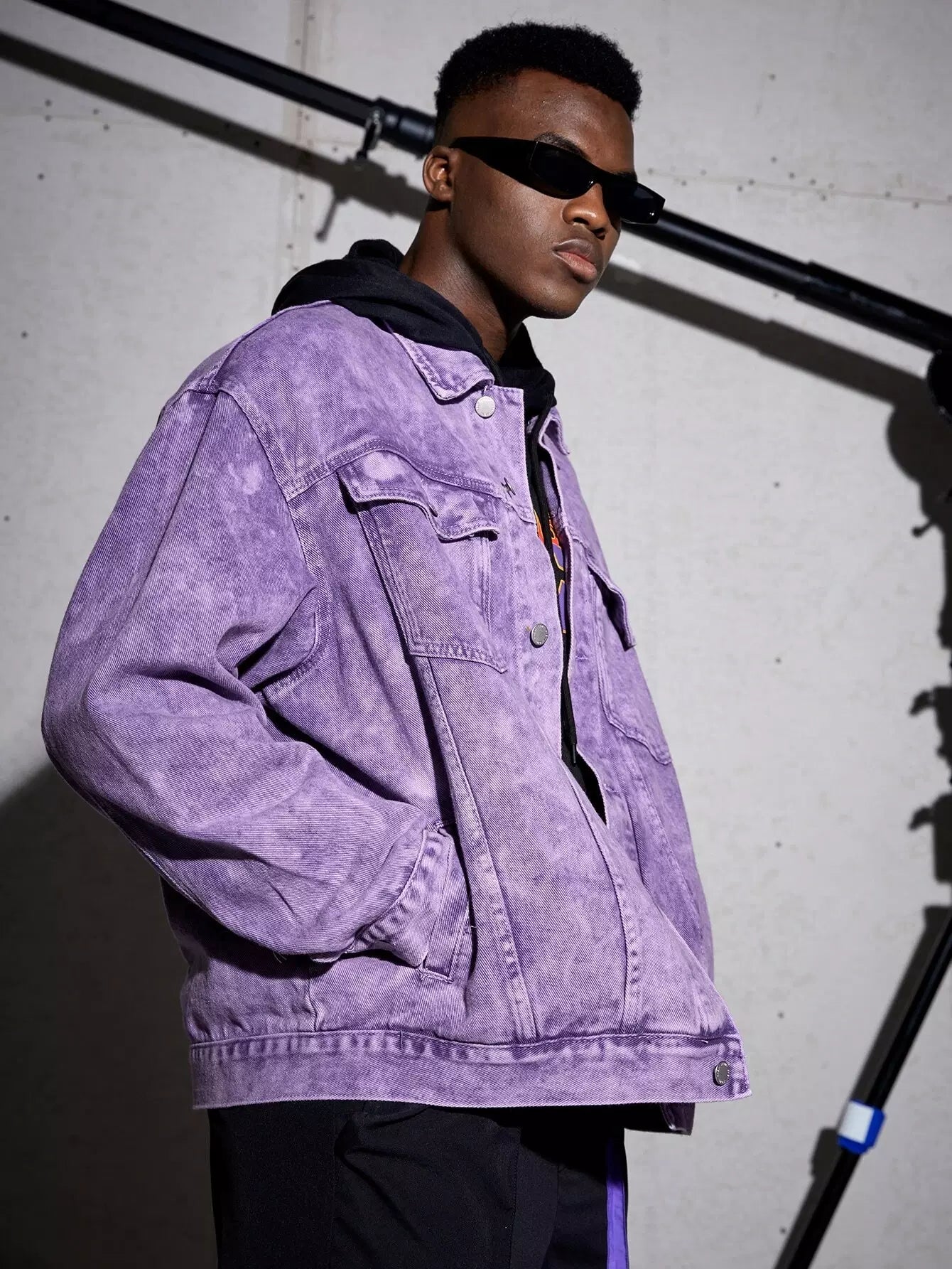 جاكيت دنيم رجالي بغطاء جينز بغطاء جيب بغطاء رأس بدون قلنسوة