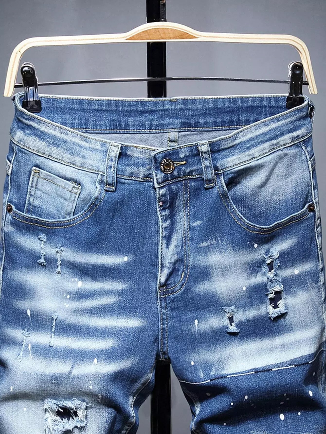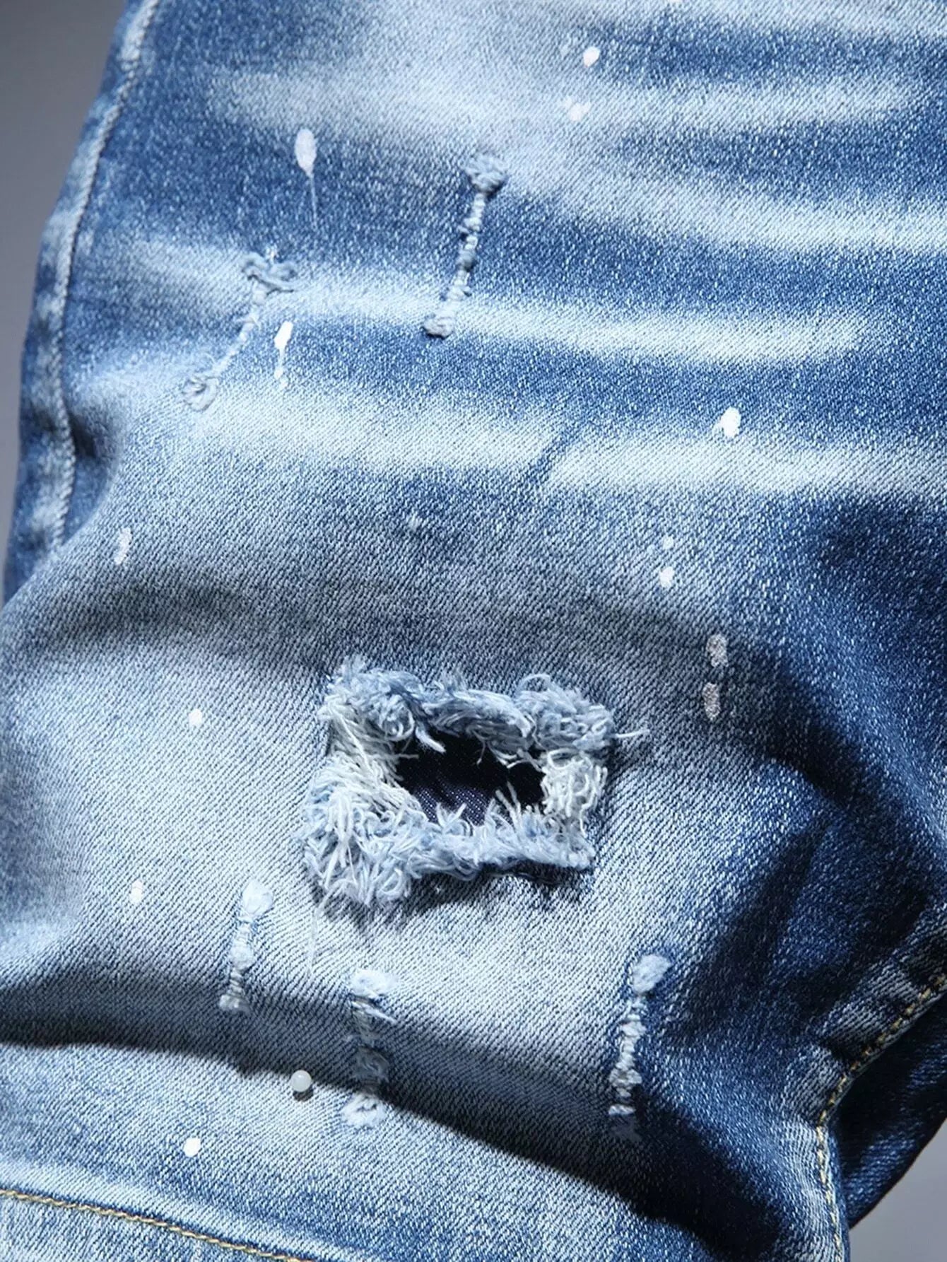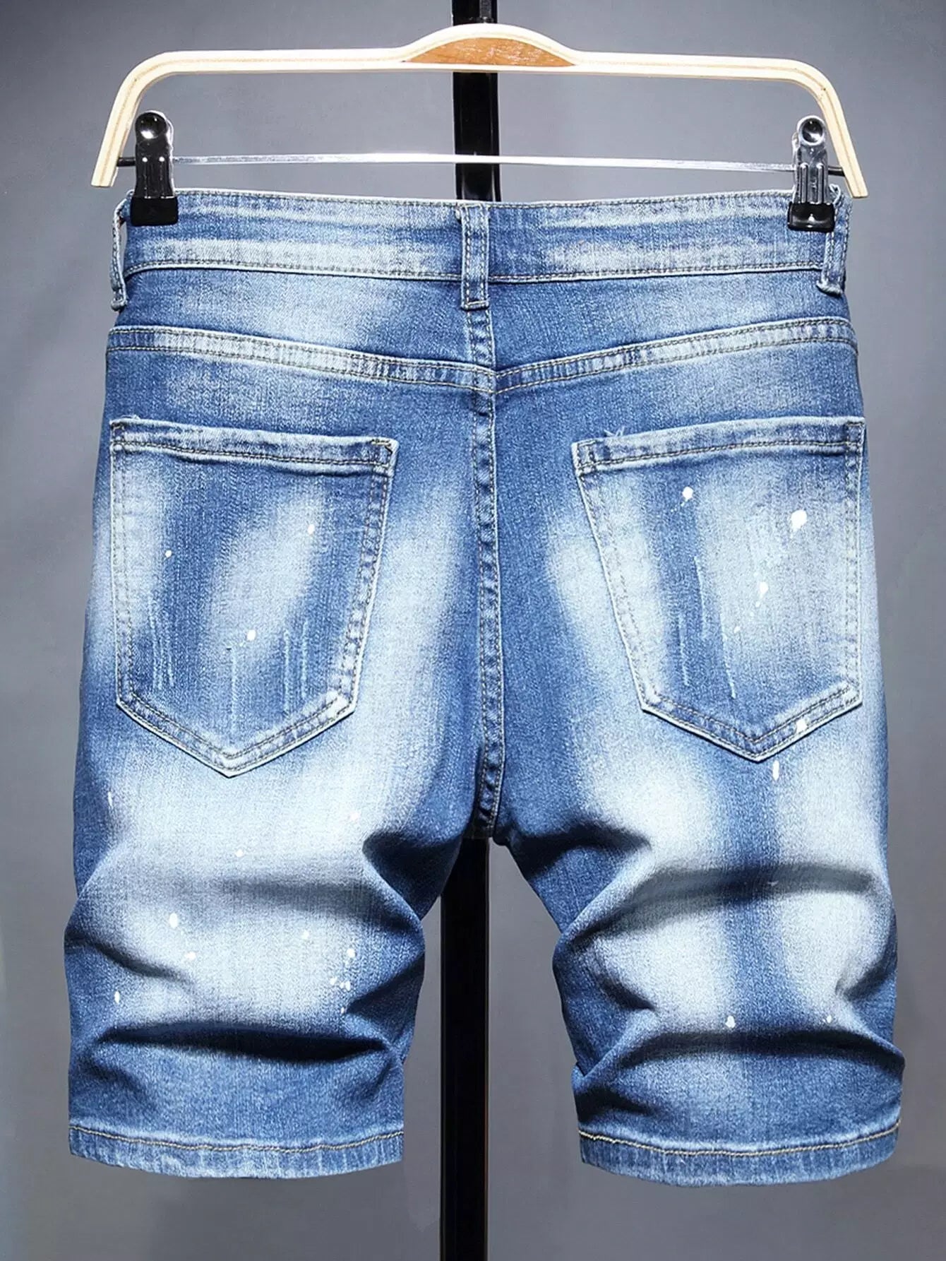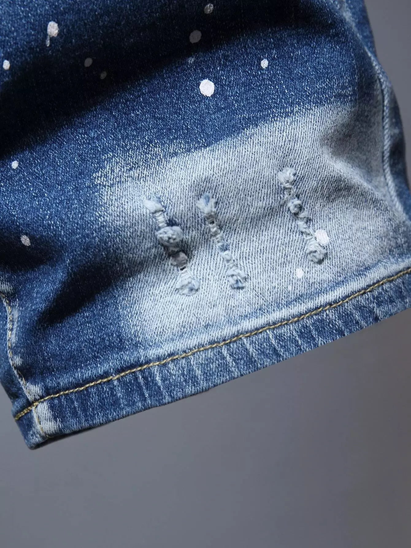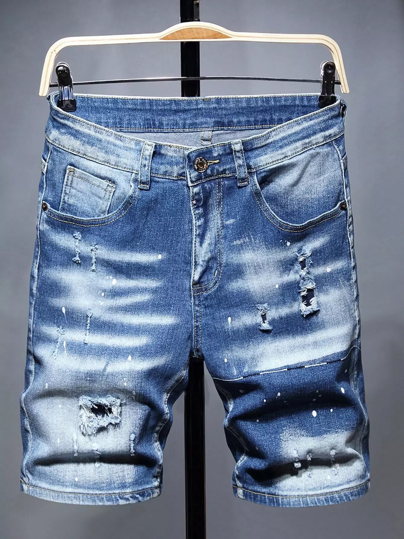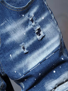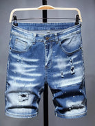 شورت جينز دنيم رجالي ممزق ومطلي بطلاء ممزق ومخدوش بخدوش القطط