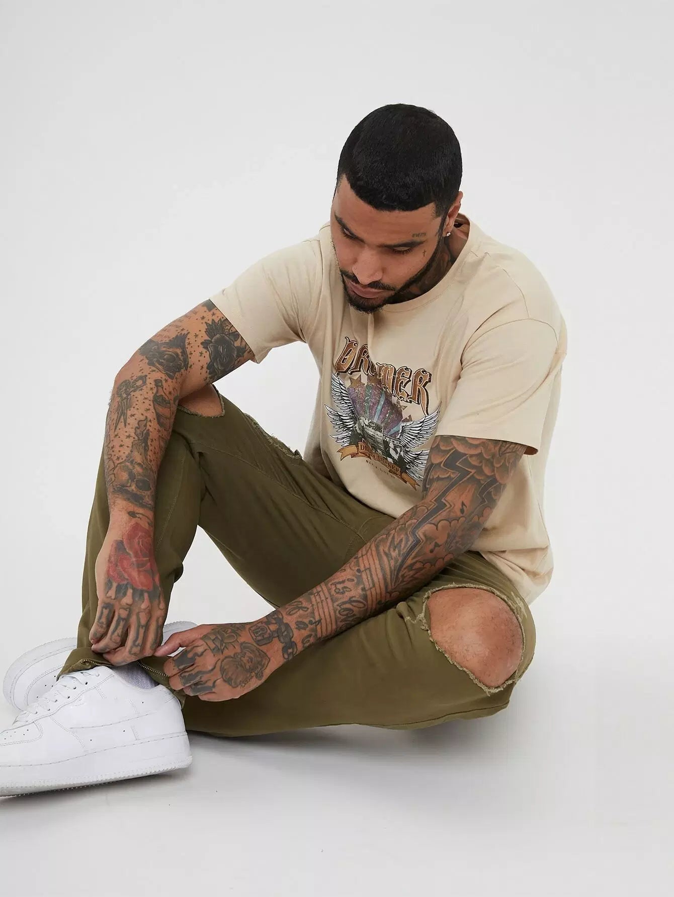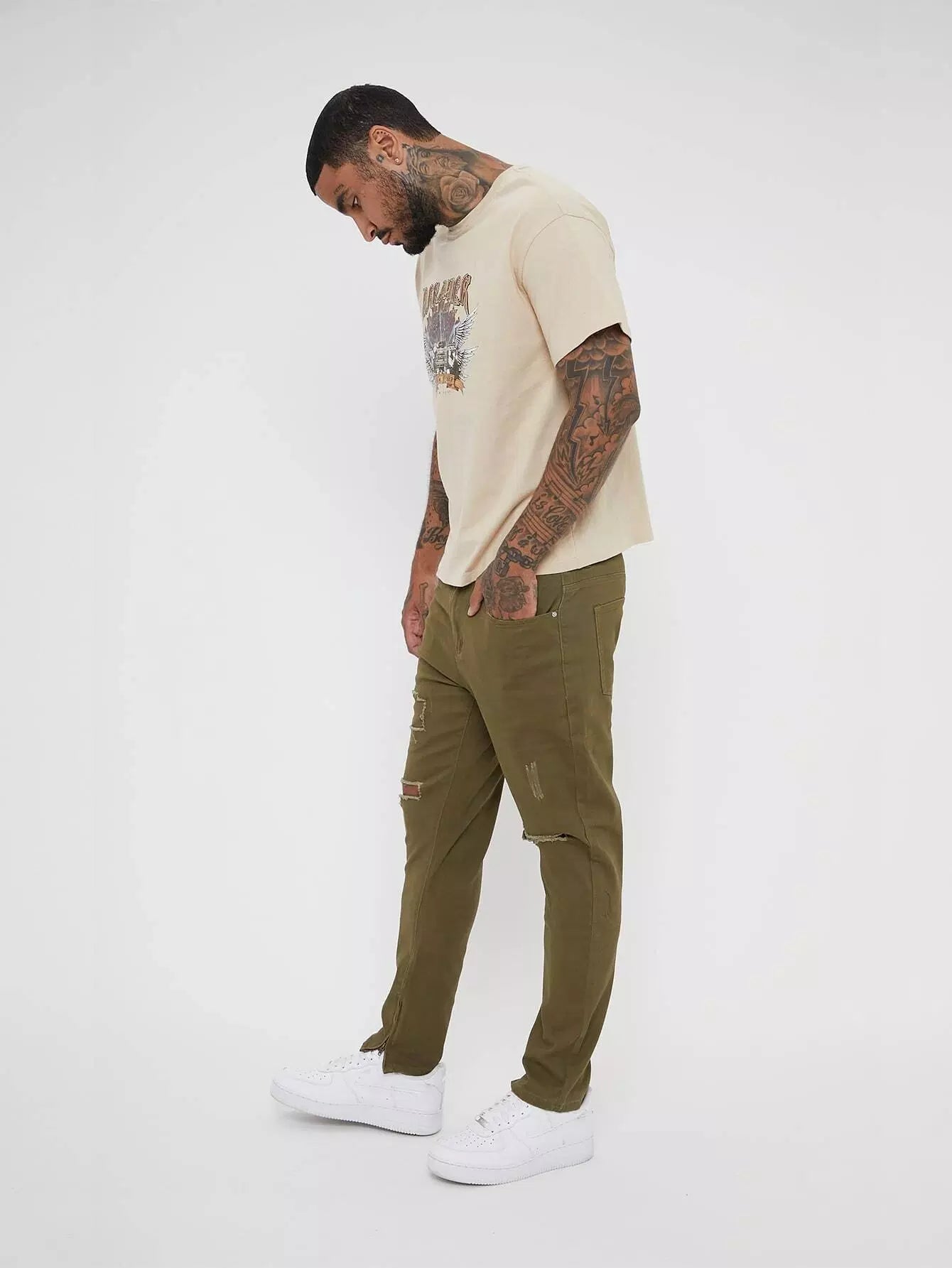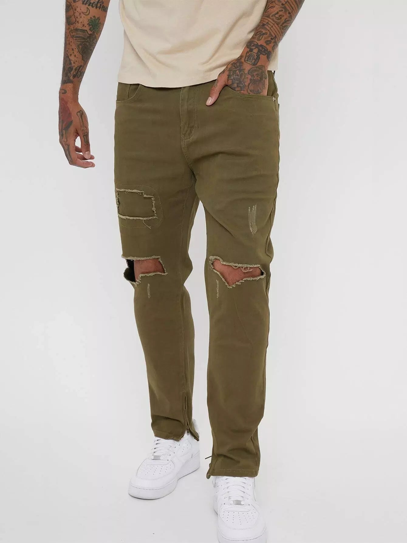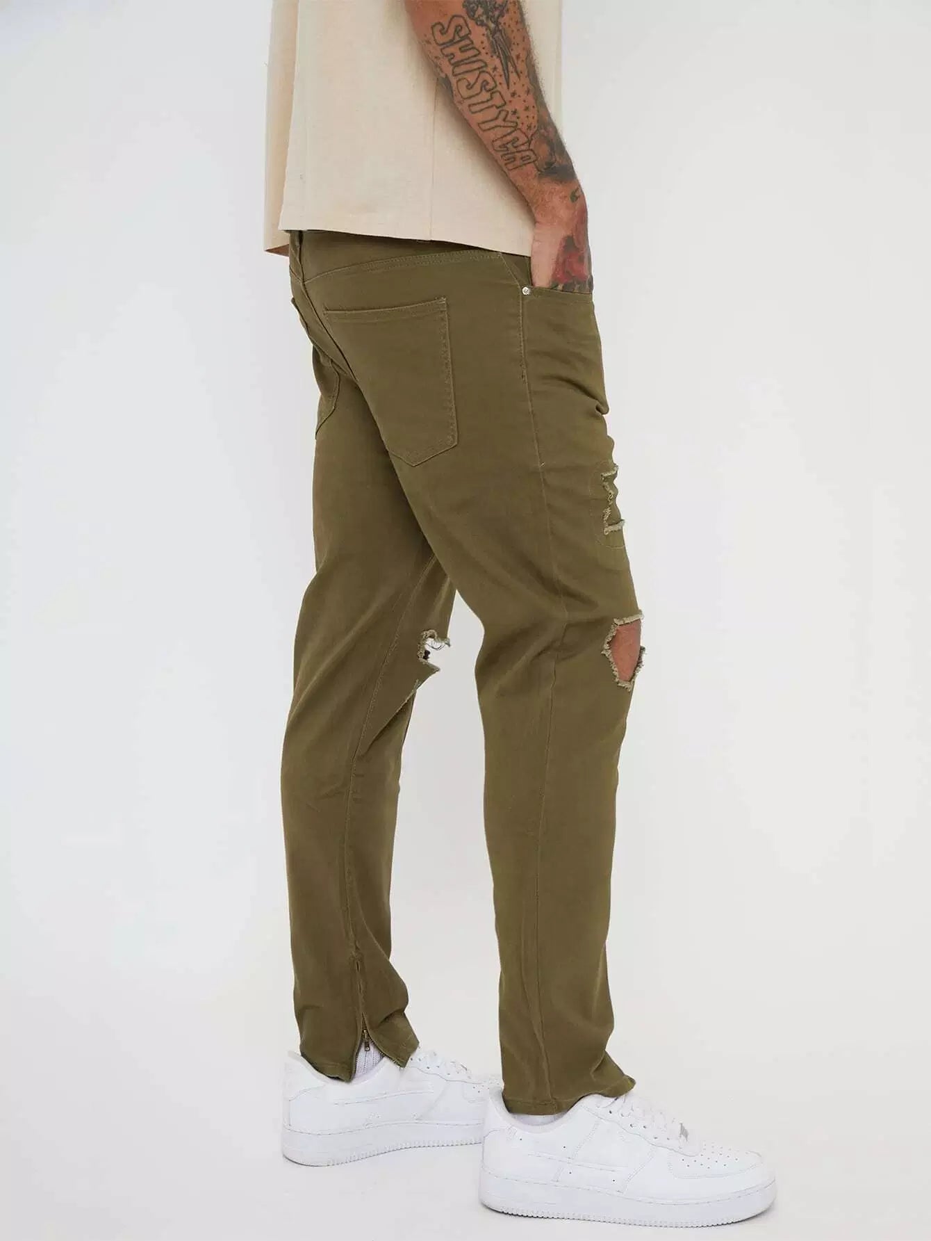 بنطلون جينز رجالي ممزق بسحاب