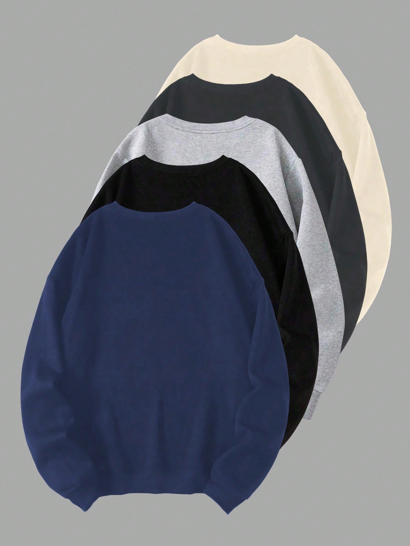 men 5pcs/Set Men's Loose Fit Crewneck Sweatshirts Casual Pullover Tops