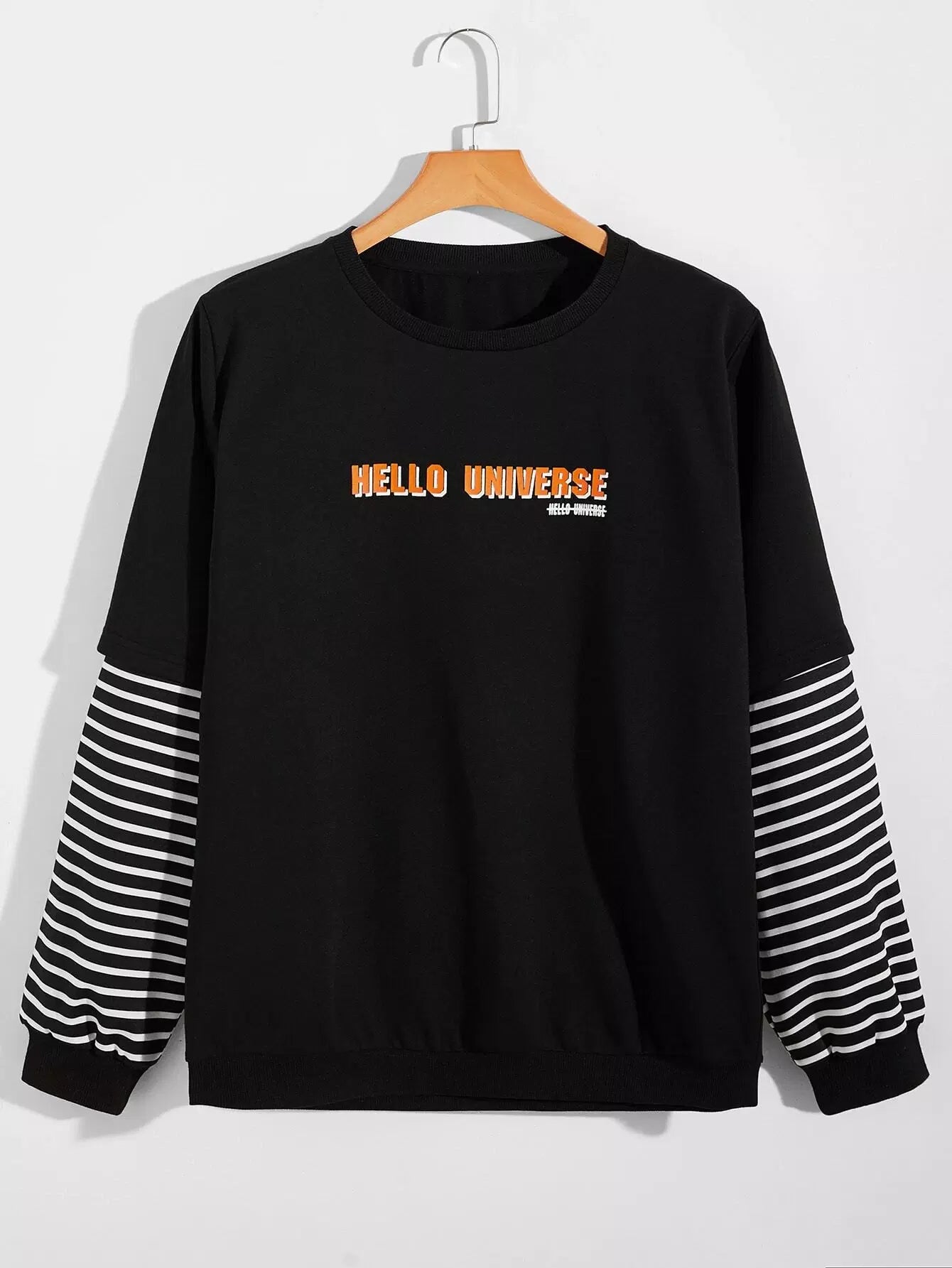 سويت شيرت رجالي 2 في 1 مخطط ورسومات حروف للرجال