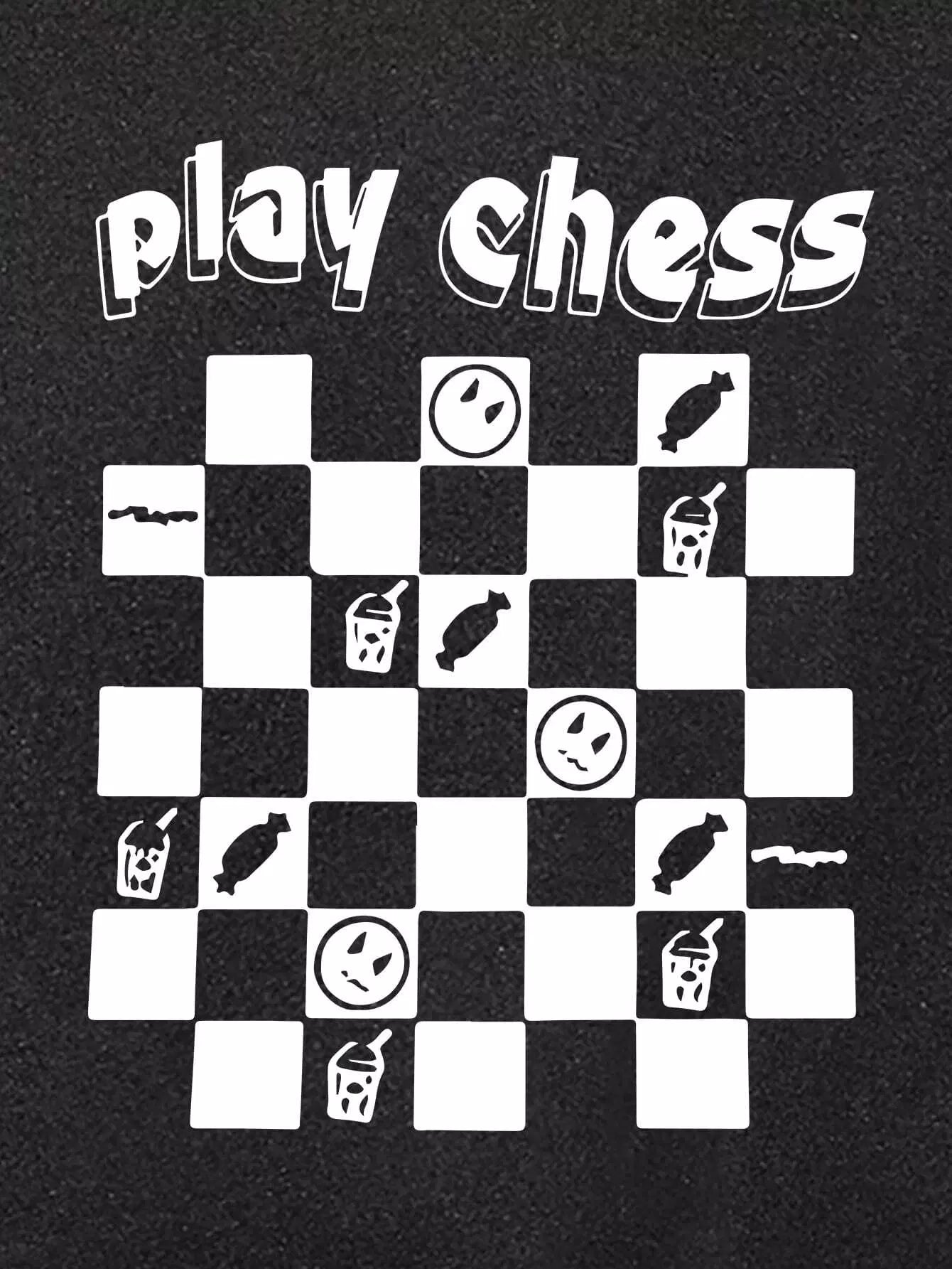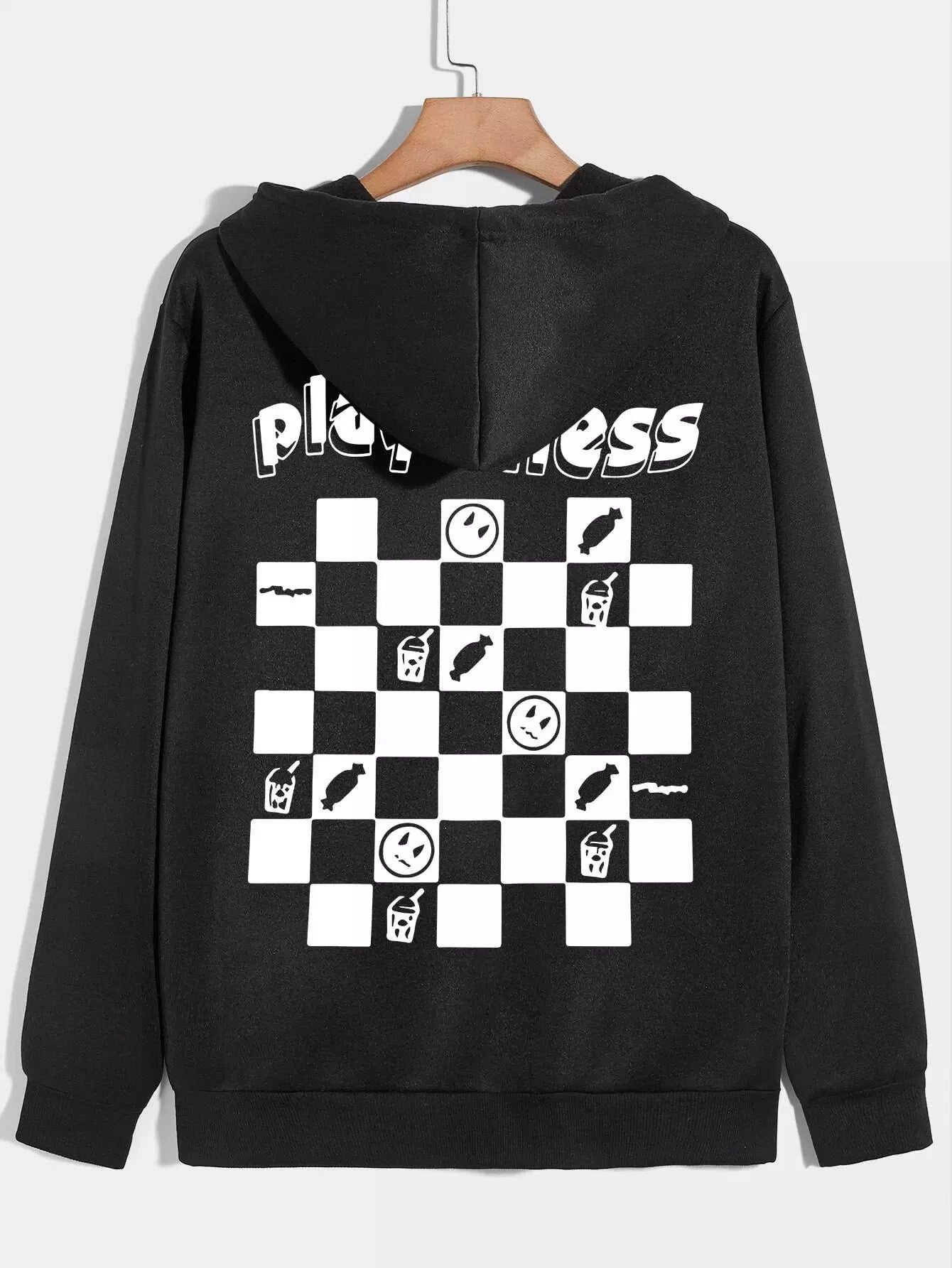 هودي رجالي بغطاء رأس وسحّاب ورسومات رقعة شطرنج وحروف مطبوعة حراريًا
