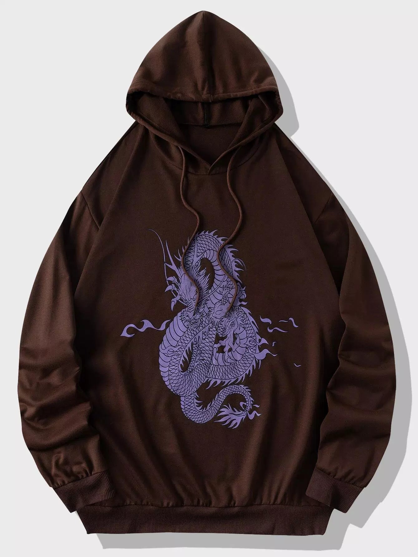 هودي بطبعة تنين صيني مطبوع عليه رباط بقلنسوة صيني للرجال