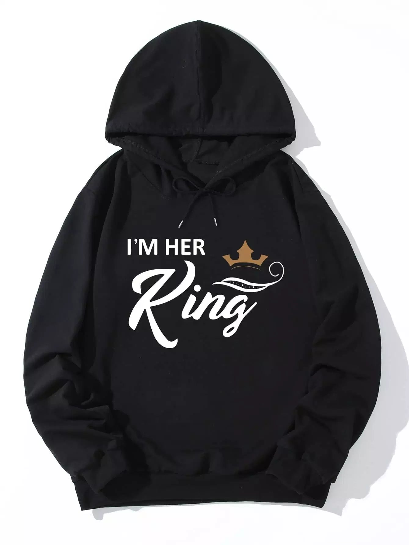 هودي بطبعة تاج وشعار للرجال بقلنسوة برباط رباط مطبوع عليه شعار