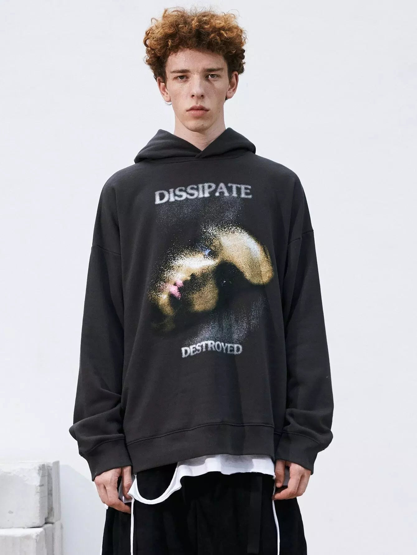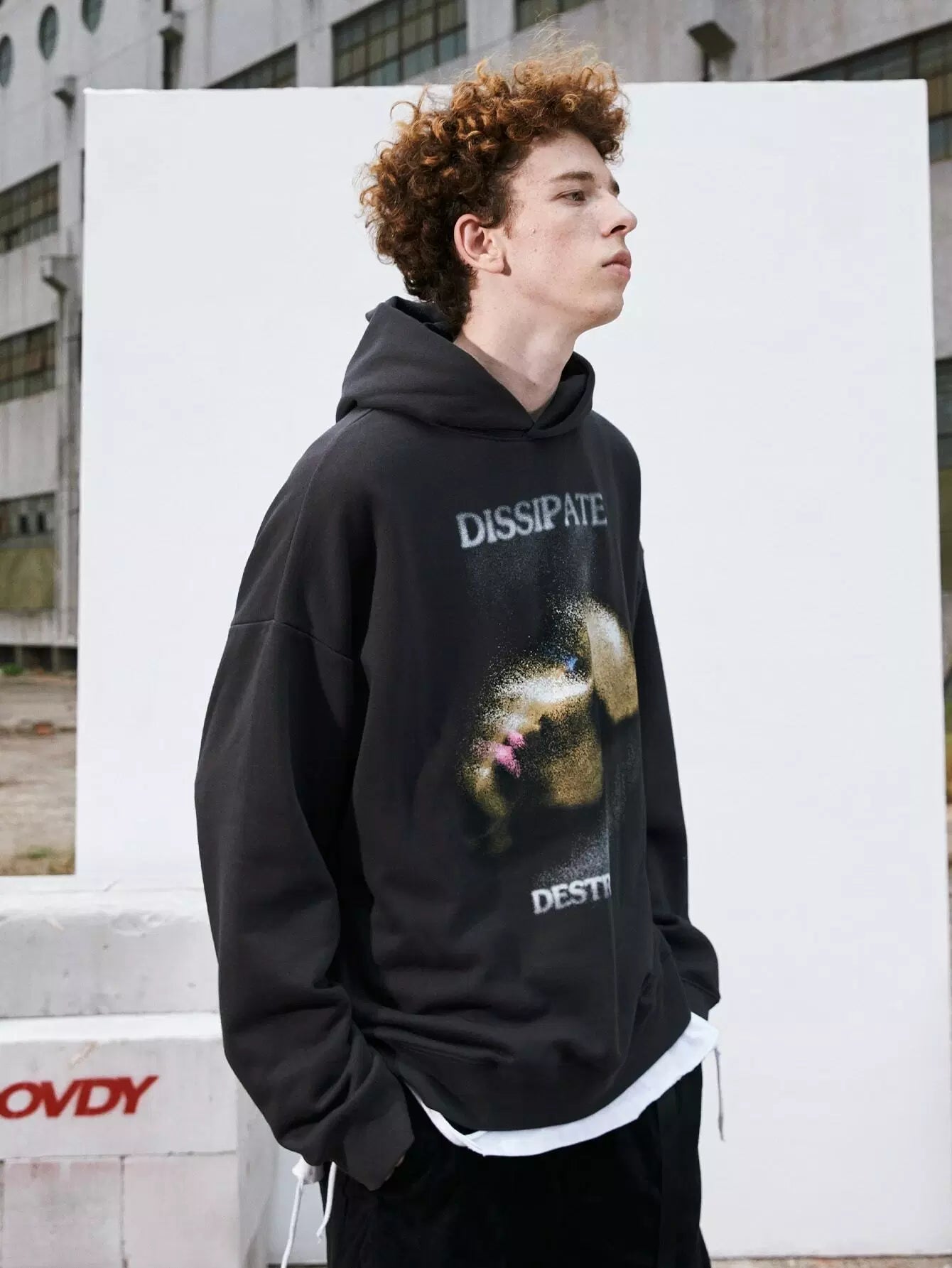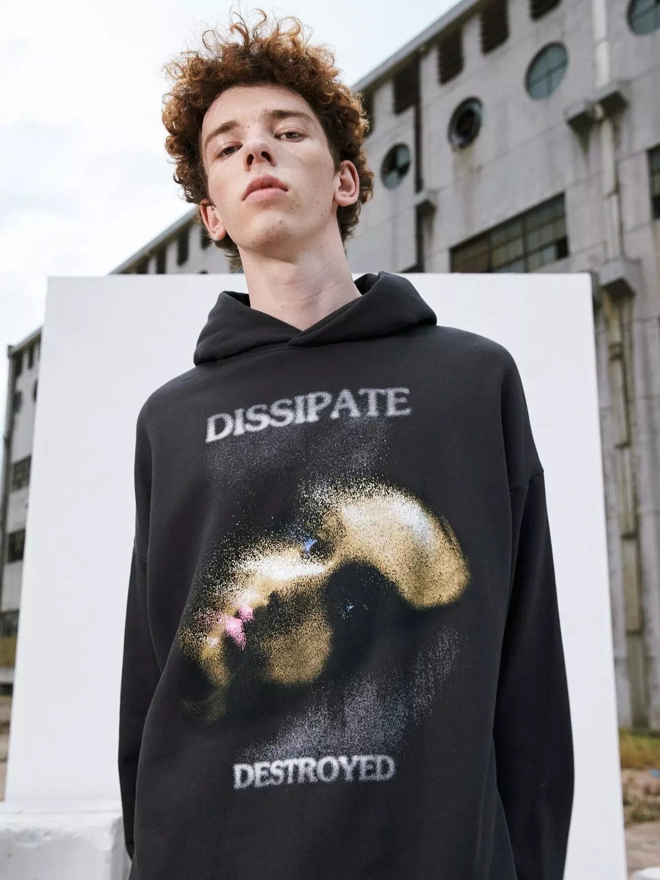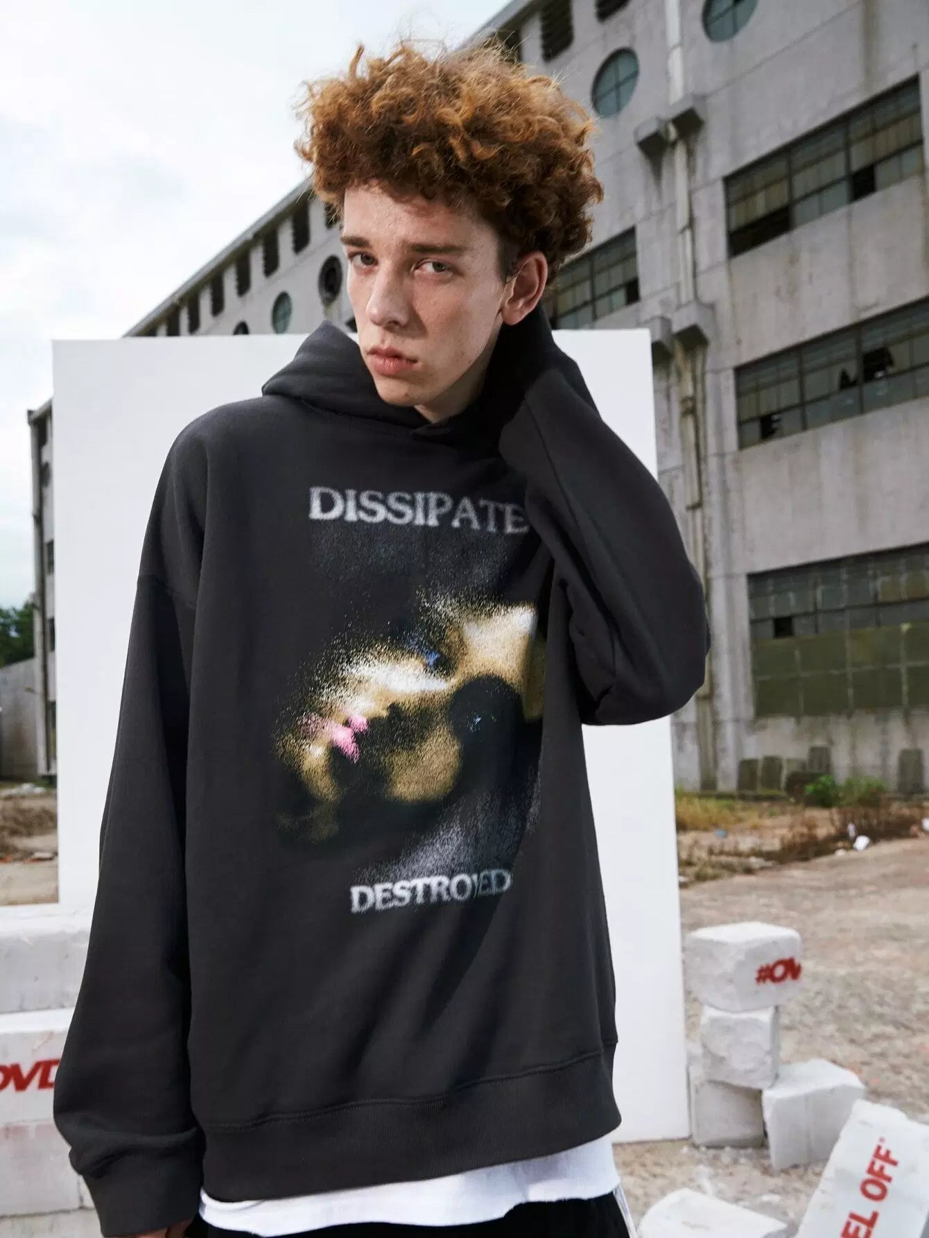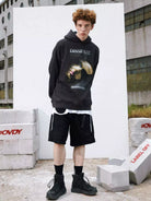 سويت شيرت رجالي بتصميم على شكل وحرف جرافيك بقلنسوة