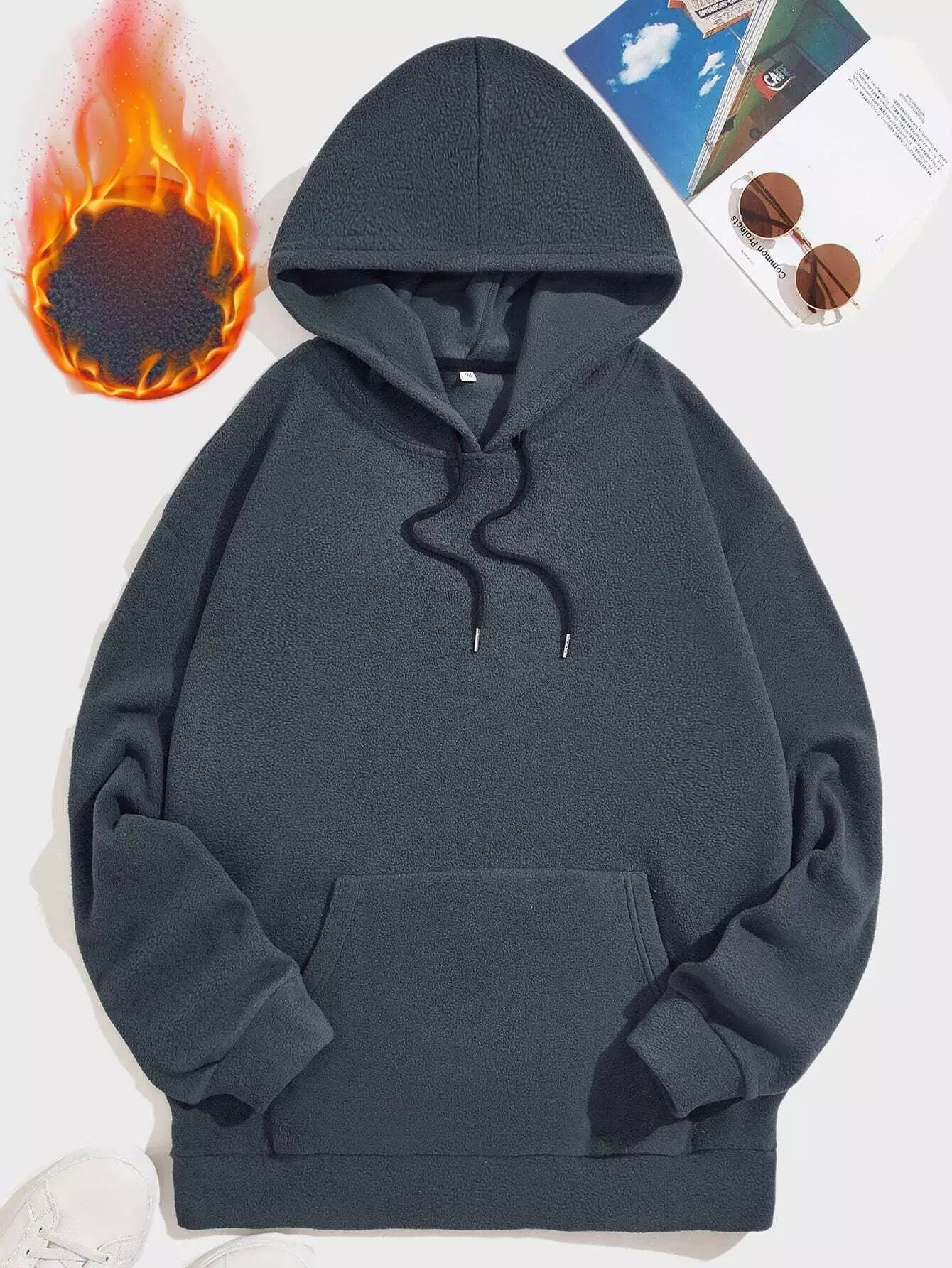 كنزة بقلنسوة سادة بجيب كنغر للرجال