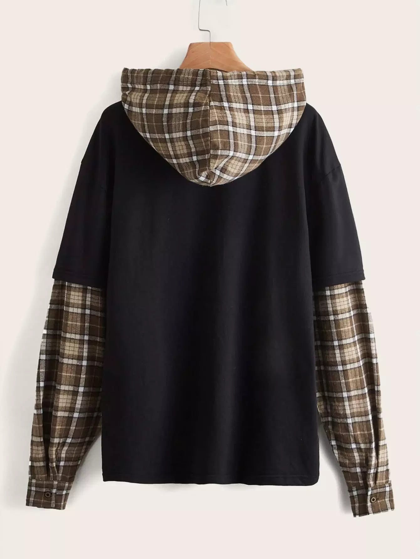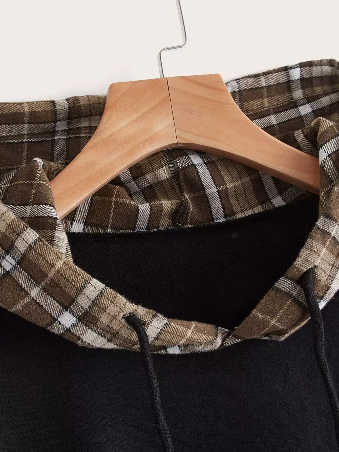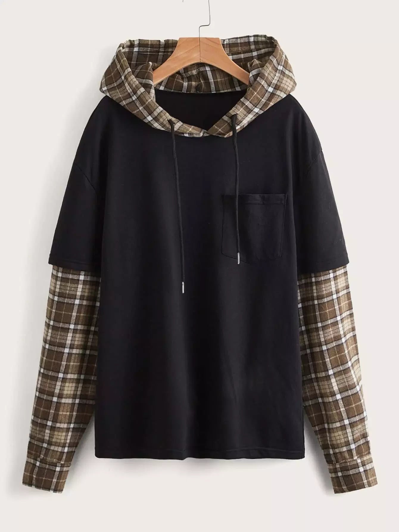 هودي رجالي بغطاء رأس وجيب أمامي منقوش وسلك سحب