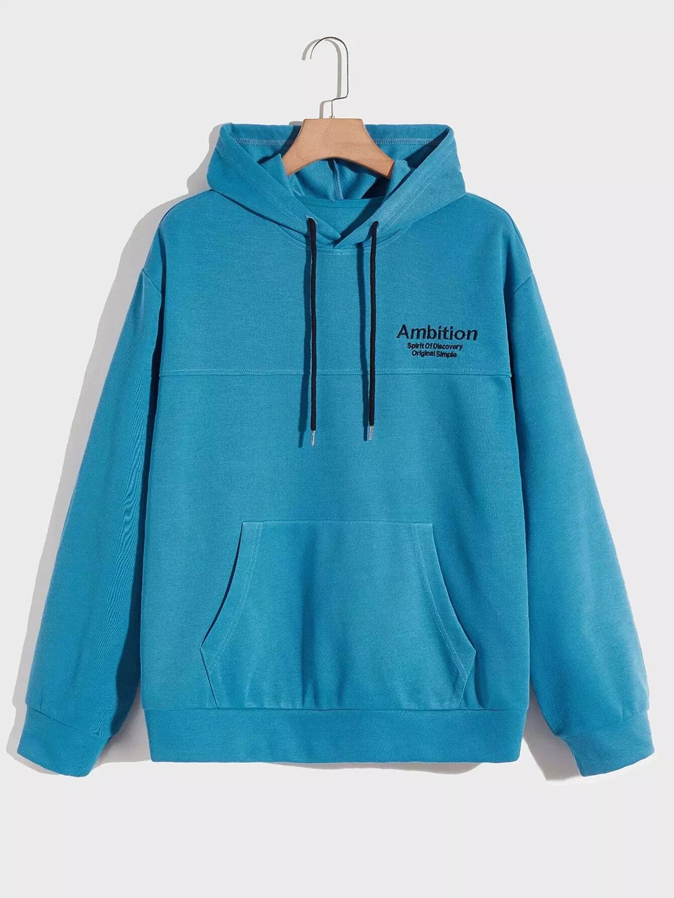 هودي بغطاء للرأس مطرز بشعار رجالي بجيب كنغر برباط
