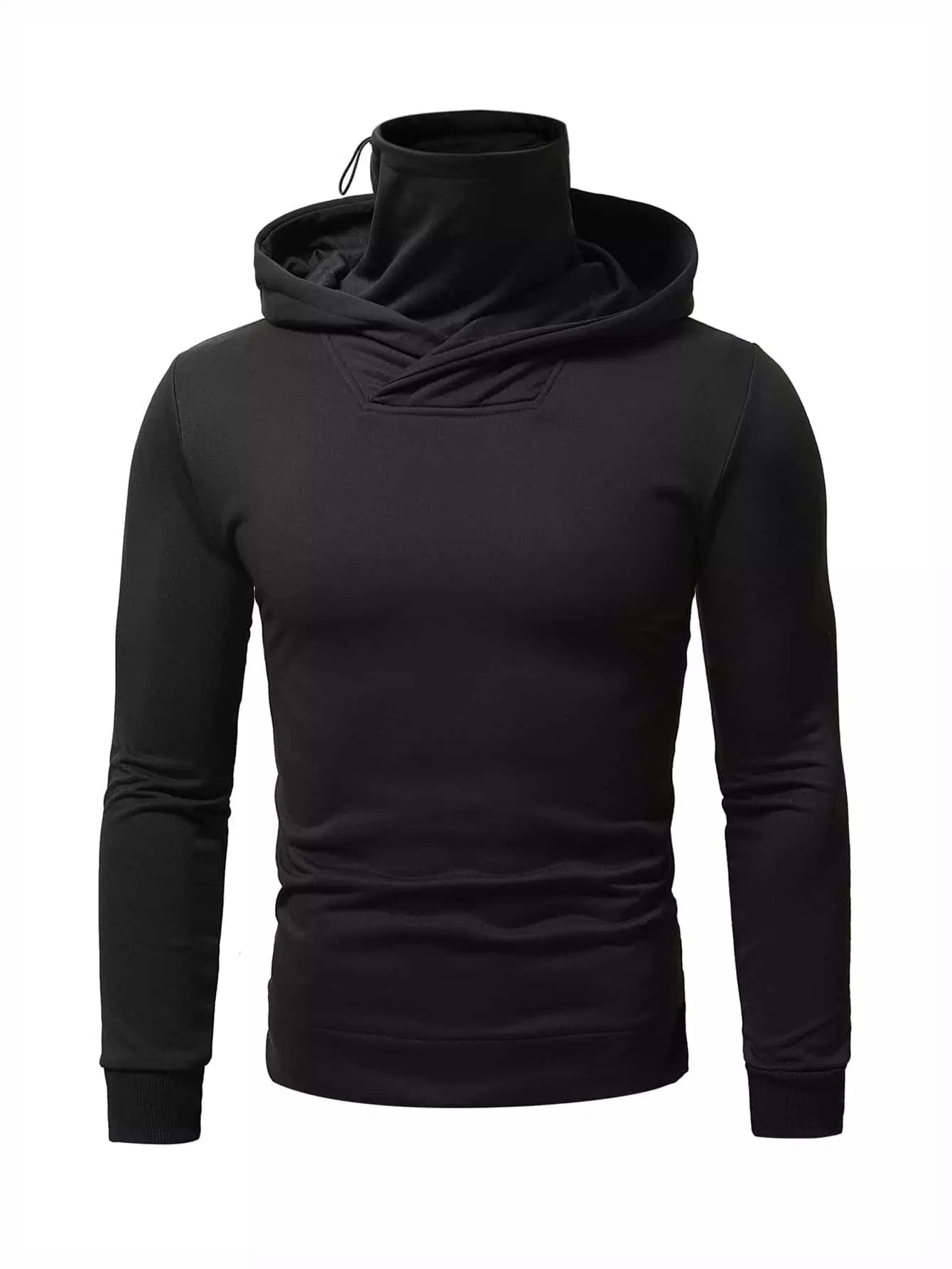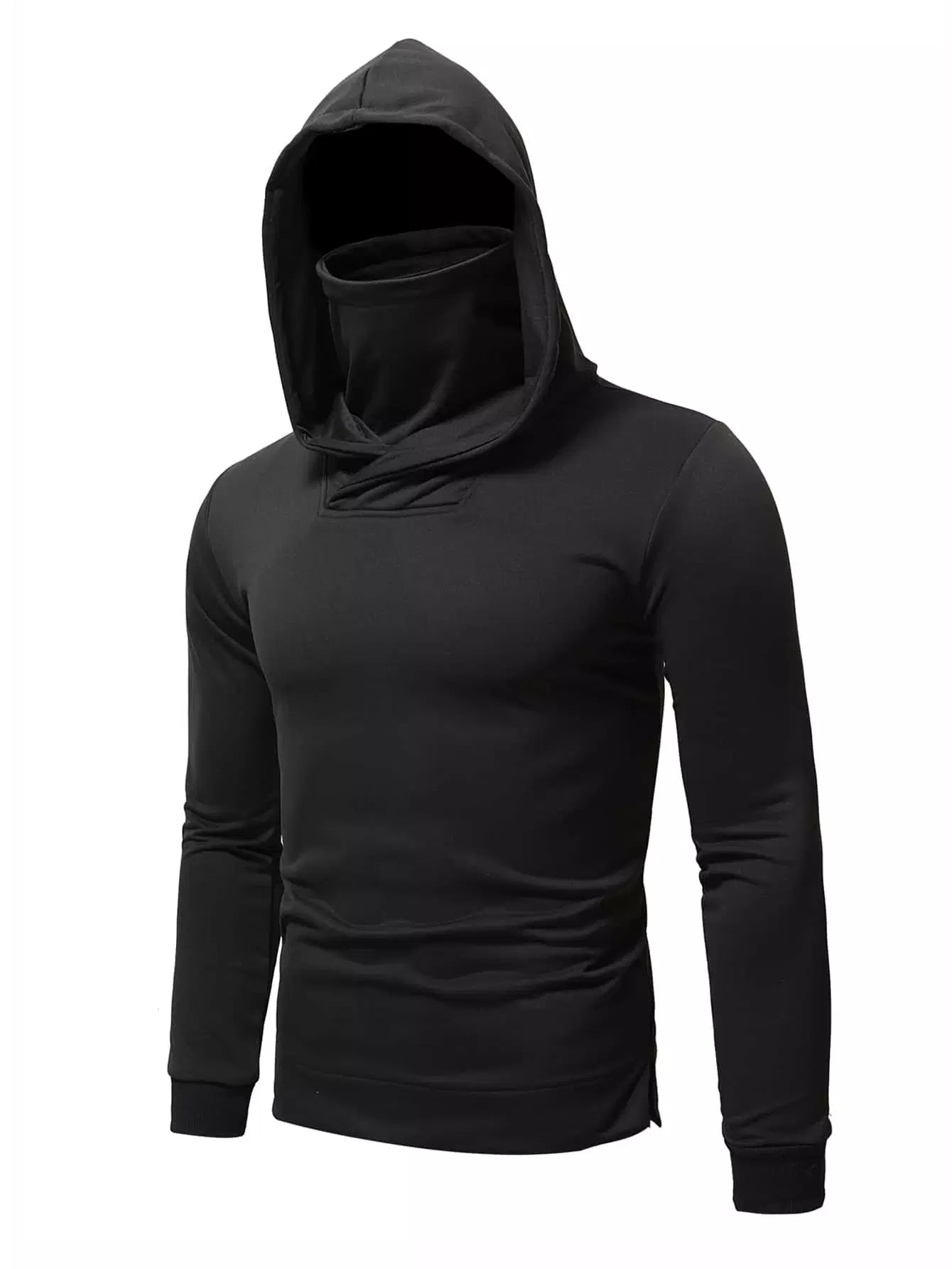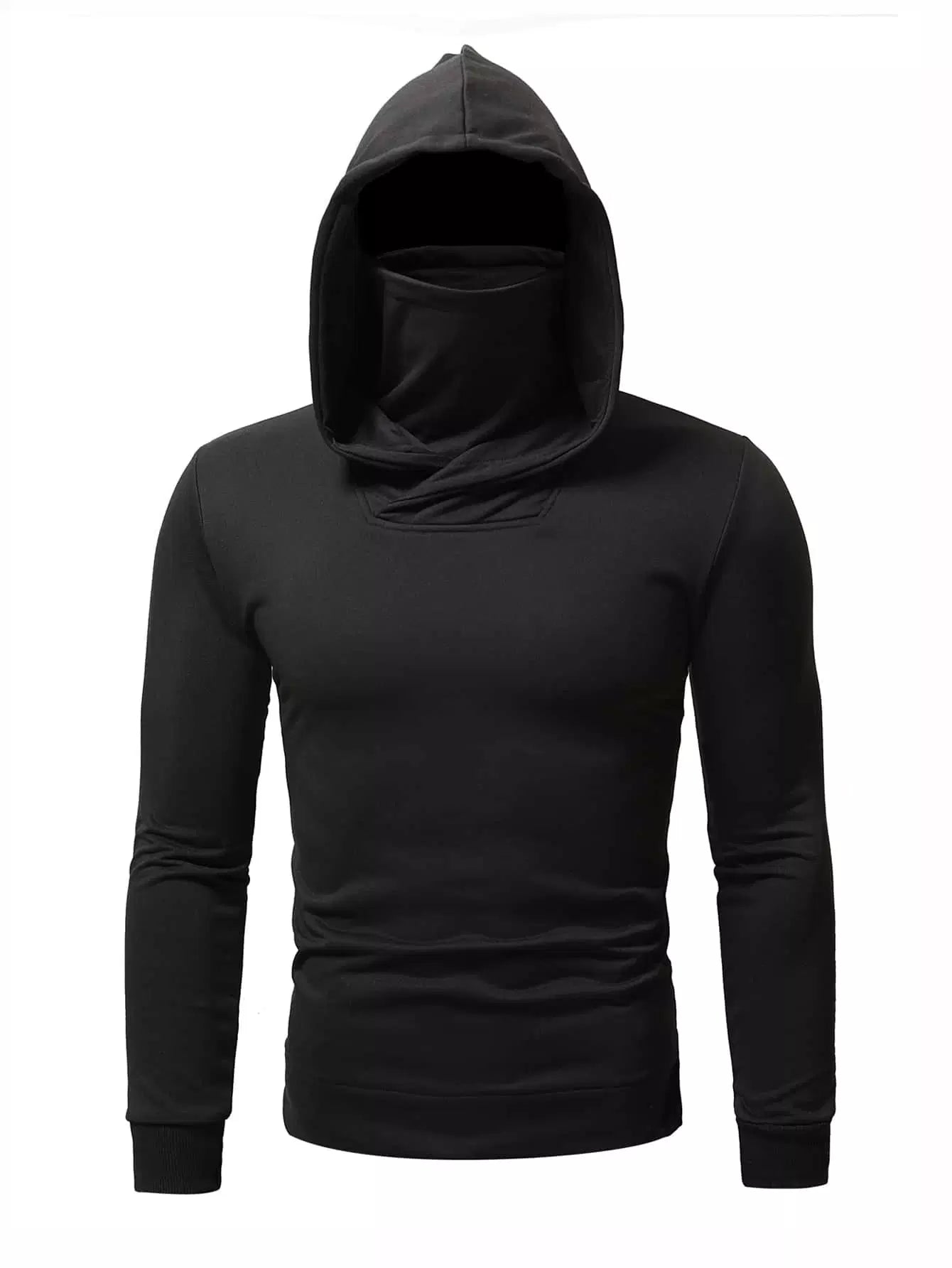 هودي رجالي سادة بياقة مدورة على شكل قناع للوجه