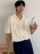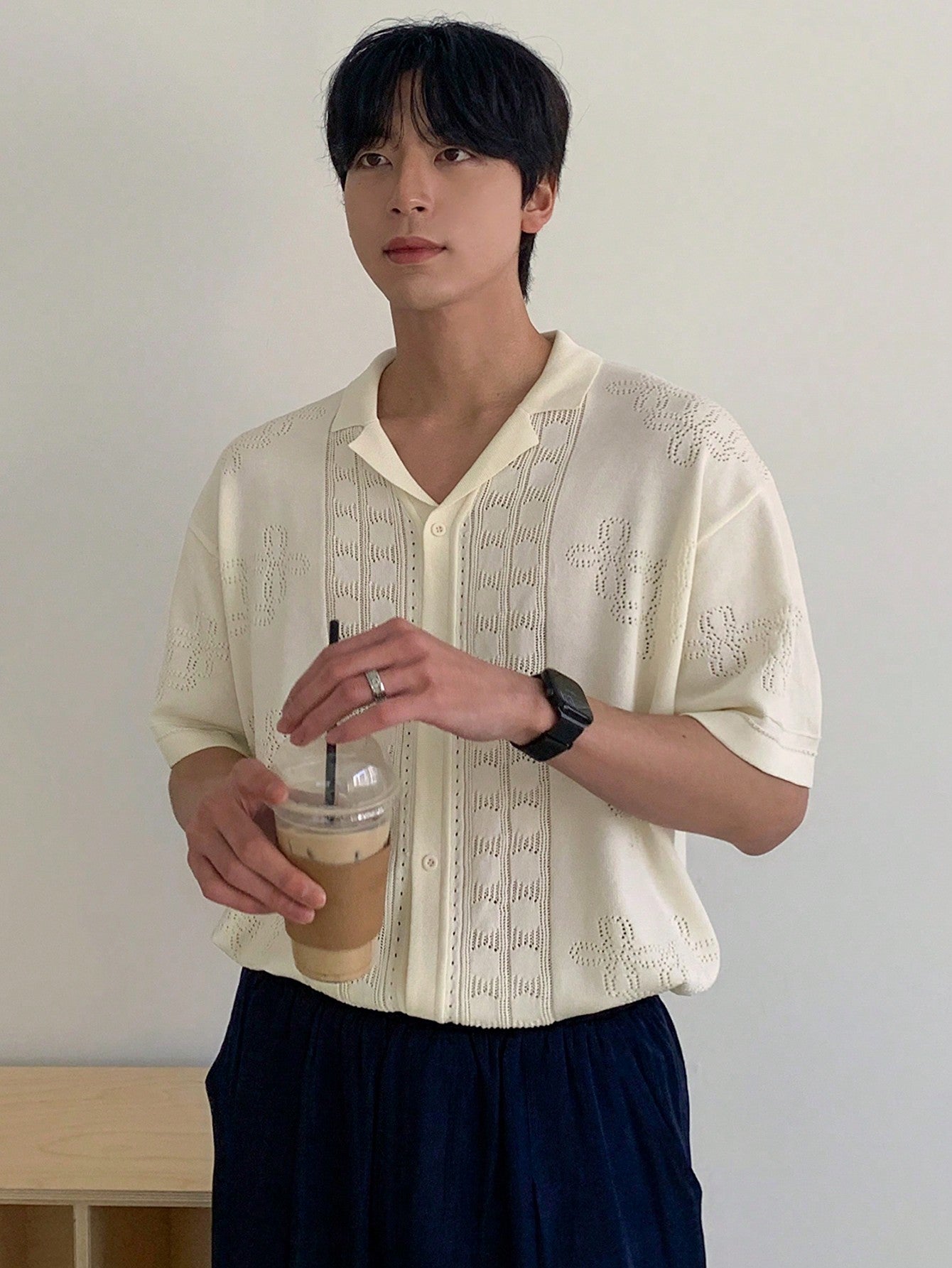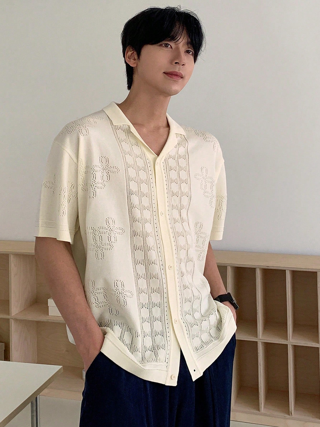 men DAZY Men's Summer Jacquard Pattern Design Casual Open Front Knit Cardigan