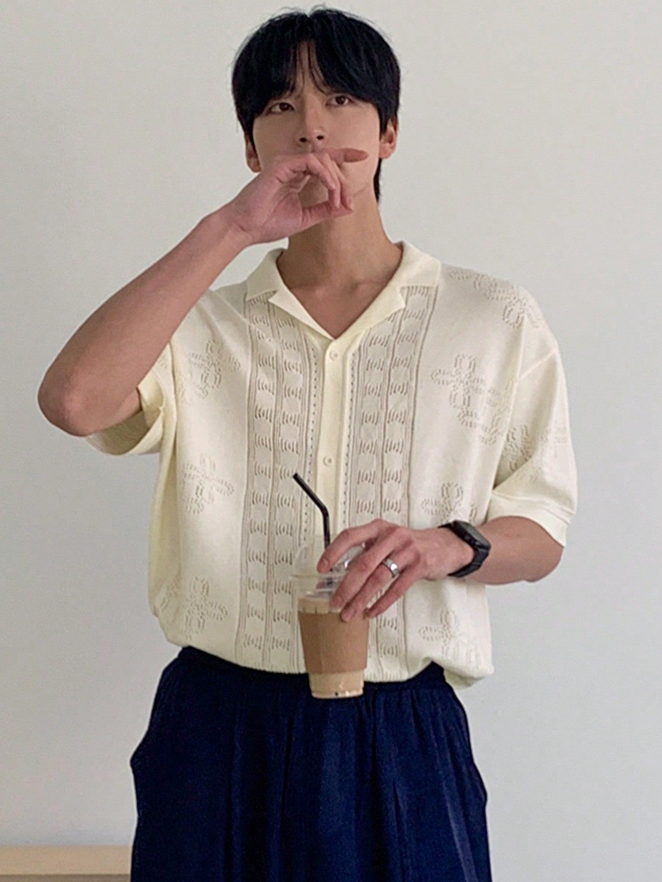 كارديجان رجالي صيفي من DAZY بتصميم جاكار كاجوال مفتوح من الأمام