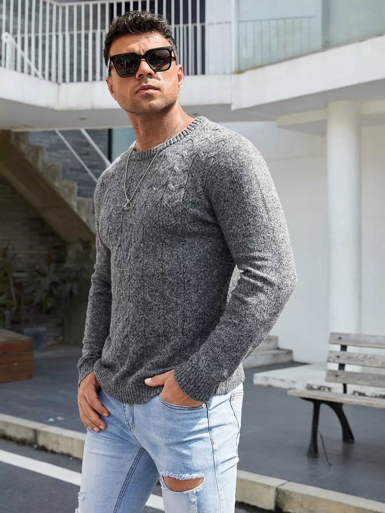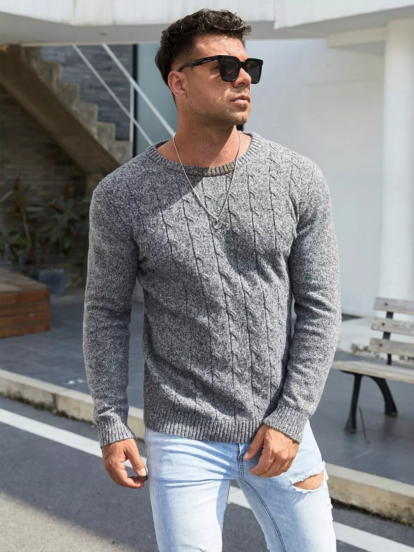 سترة رجالية محبوكة بكابل محبوكة