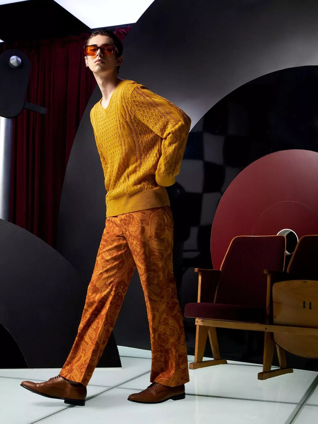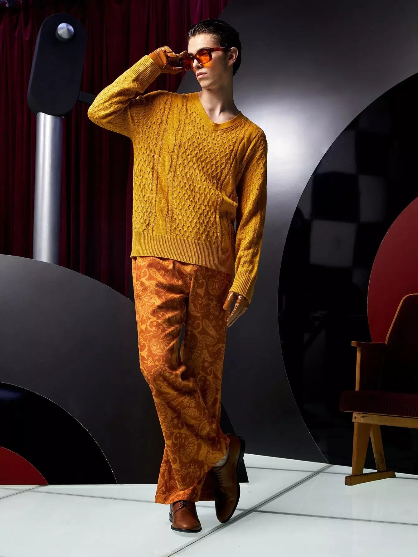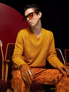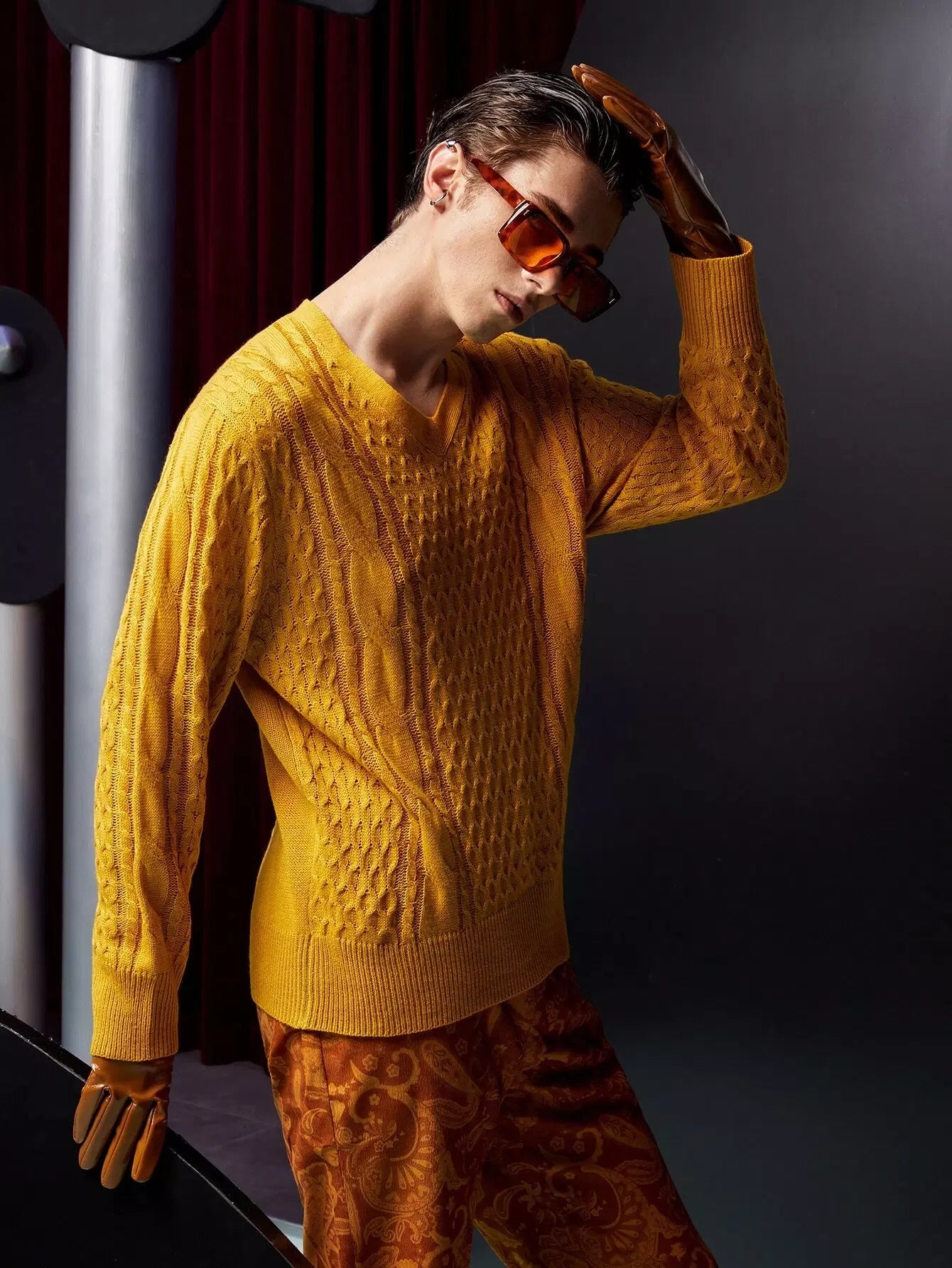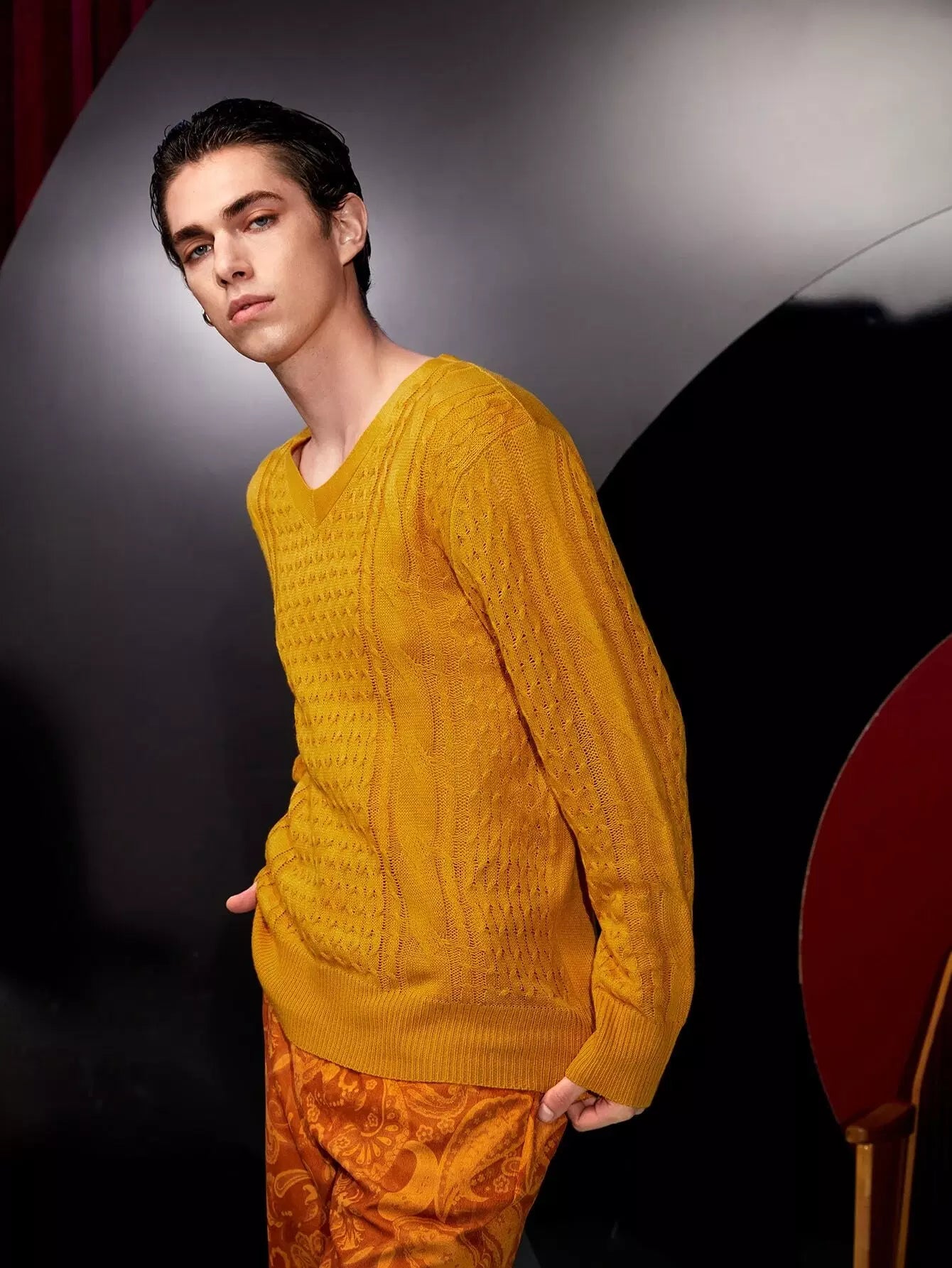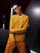 سترة رجالية برقبة على شكل كابل متماسكة على شكل V