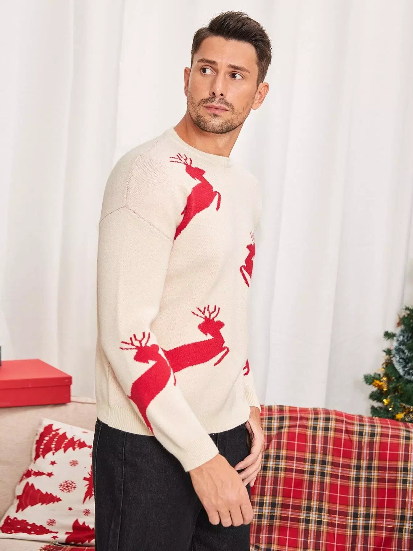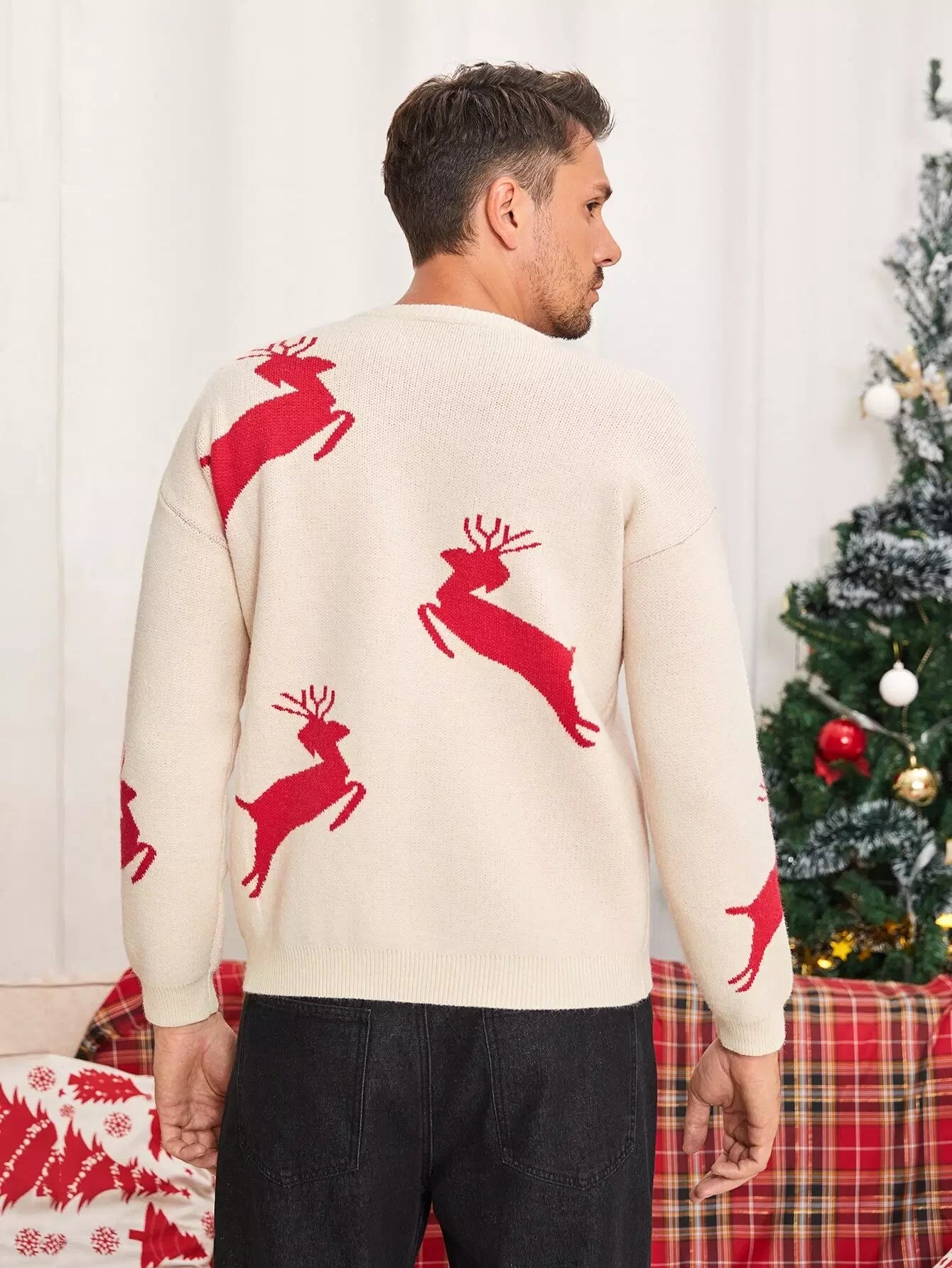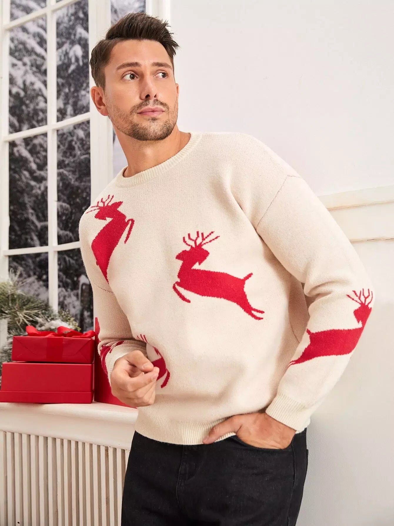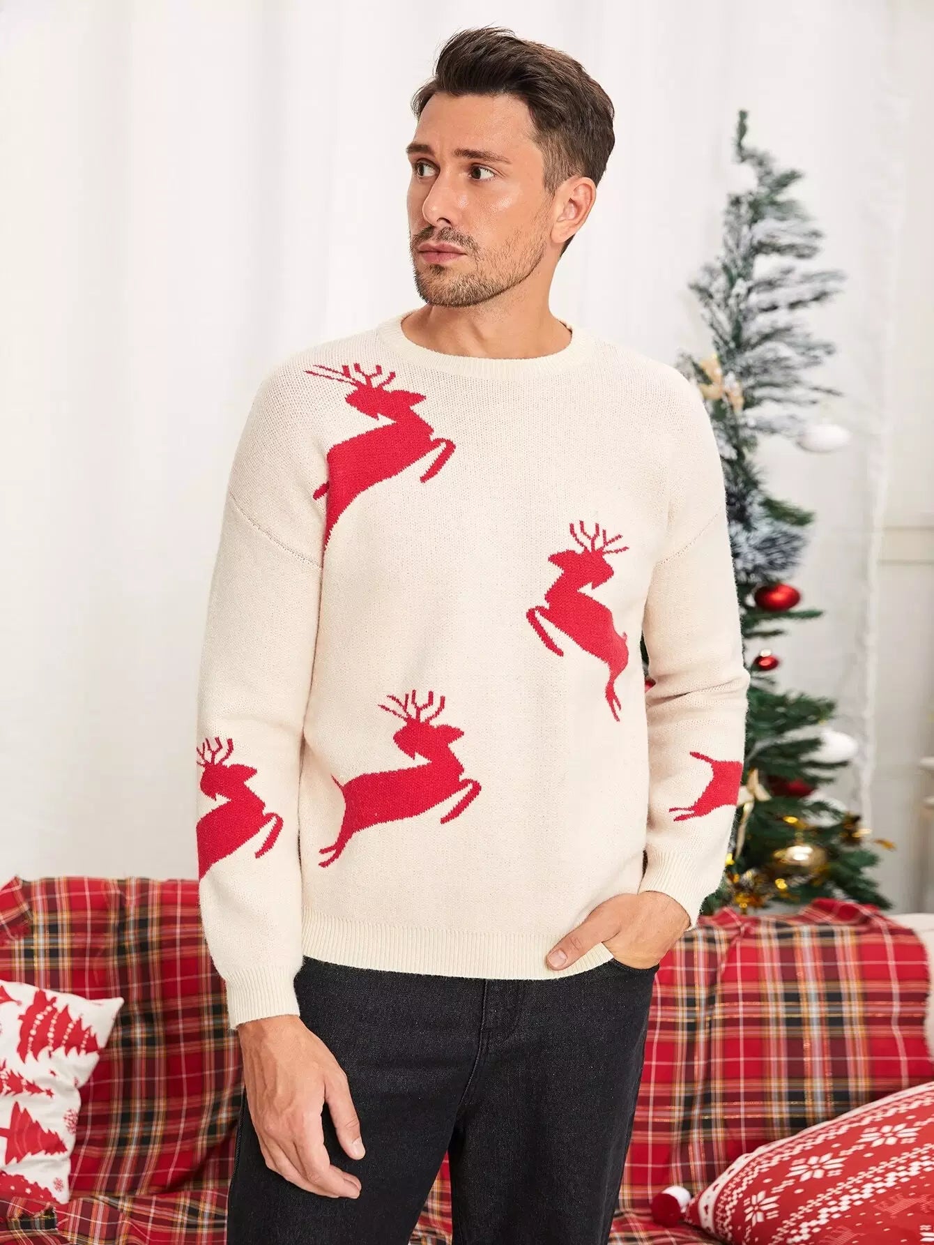سترة رجالية منسدلة الكتف بنقشة غزال عيد الميلاد للرجال